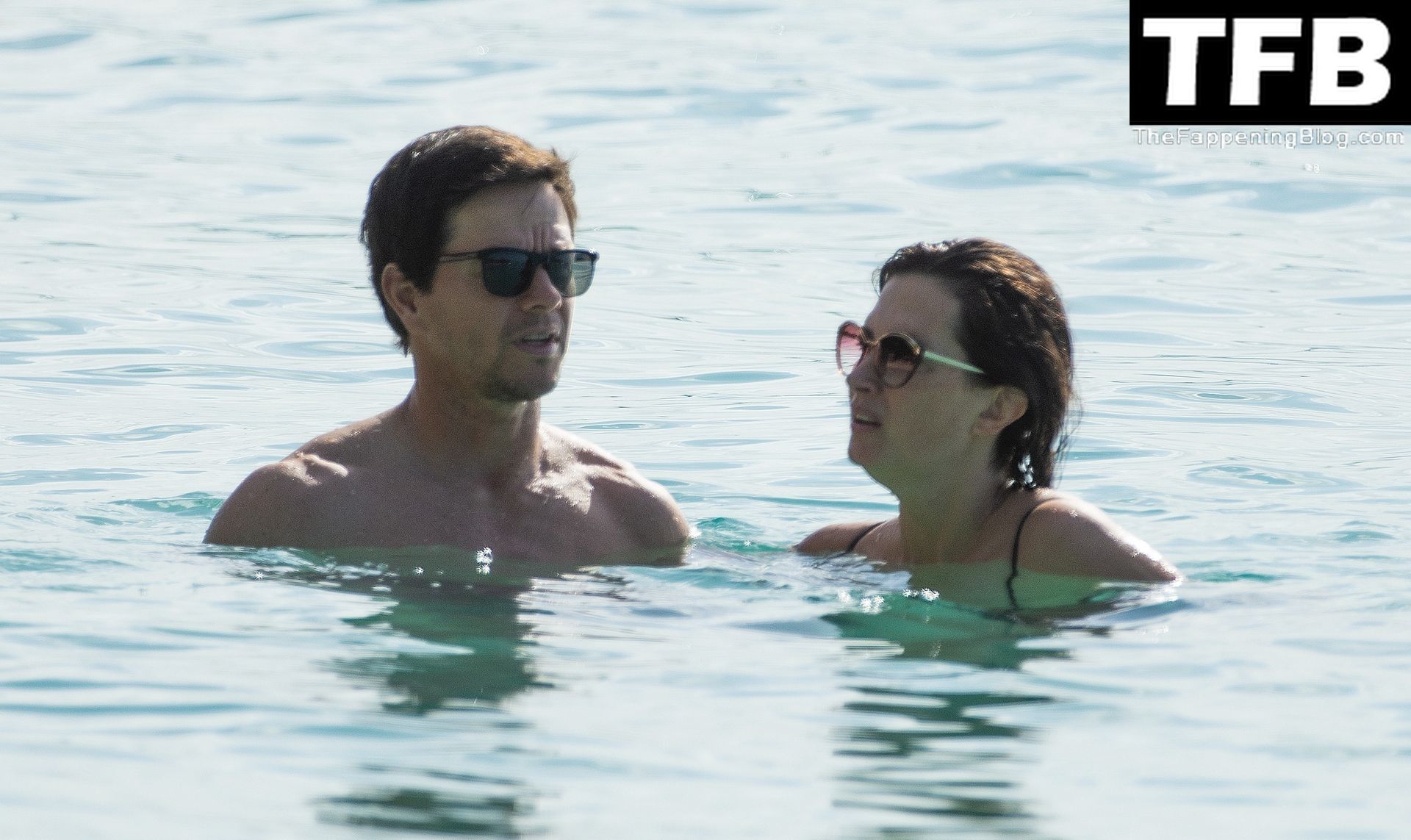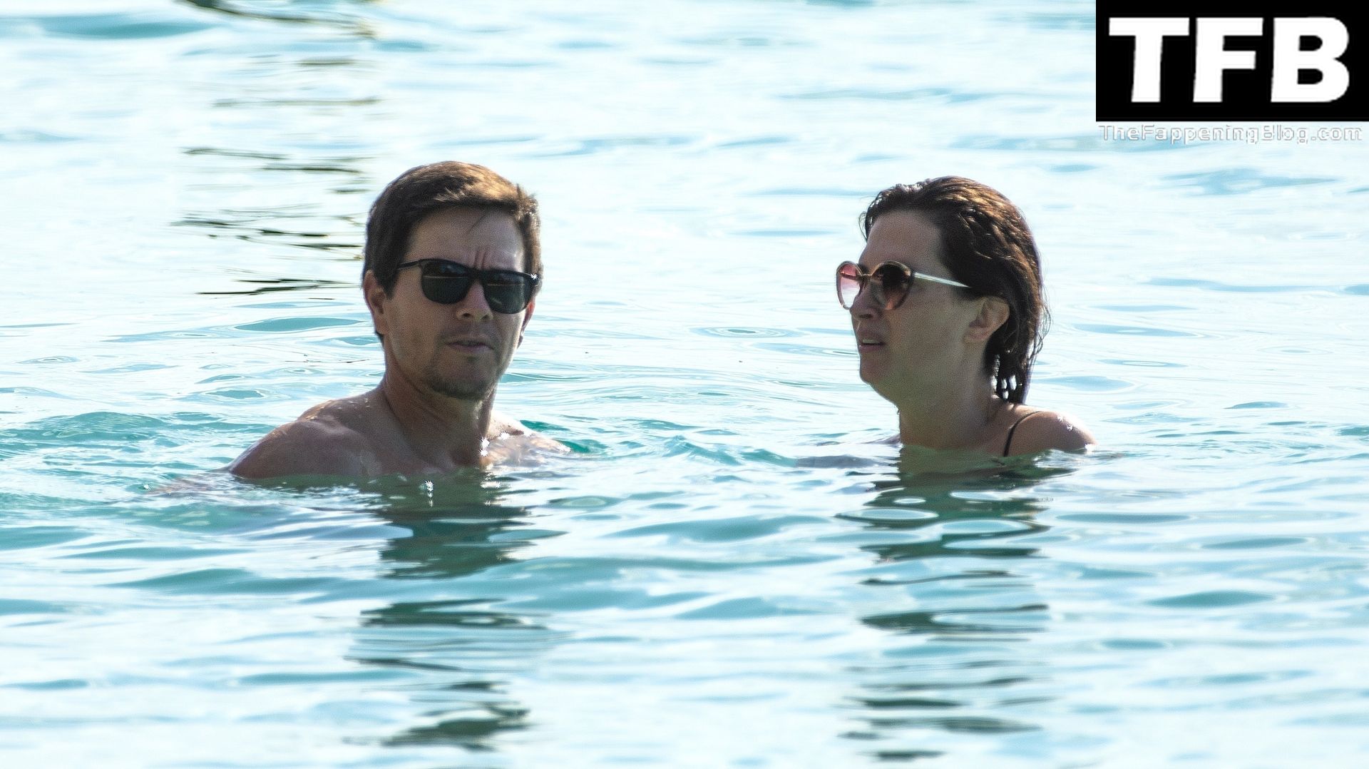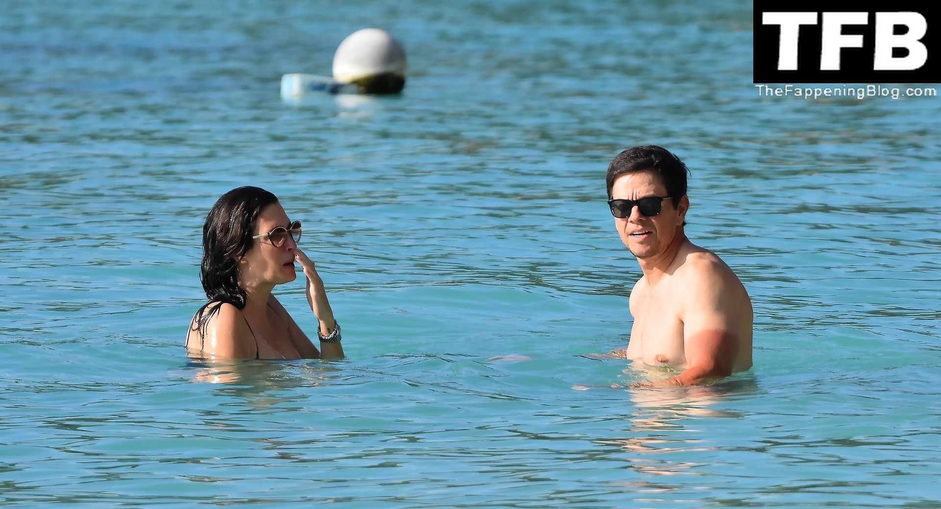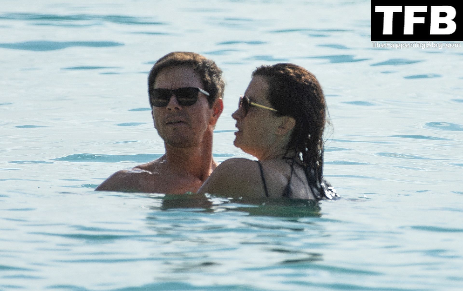 L’acteur américain Mark Wahlberg et sa femme Rhea Durham affichent leur amour et leur affection en se baignant dans la mer lors de vacances en famille sur la magnifique île des Caraïbes de la Barbade, sur la plage de l’hôtel Sandy Lane, le 22/12/2022.