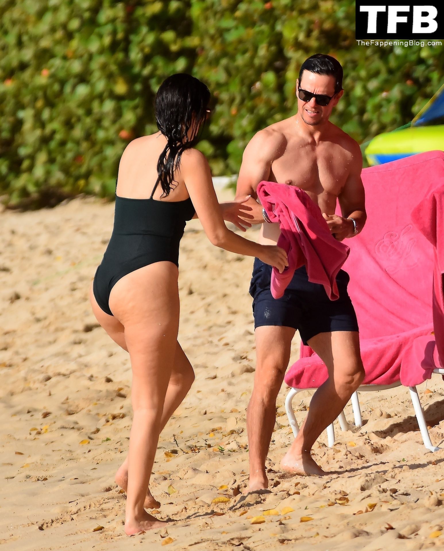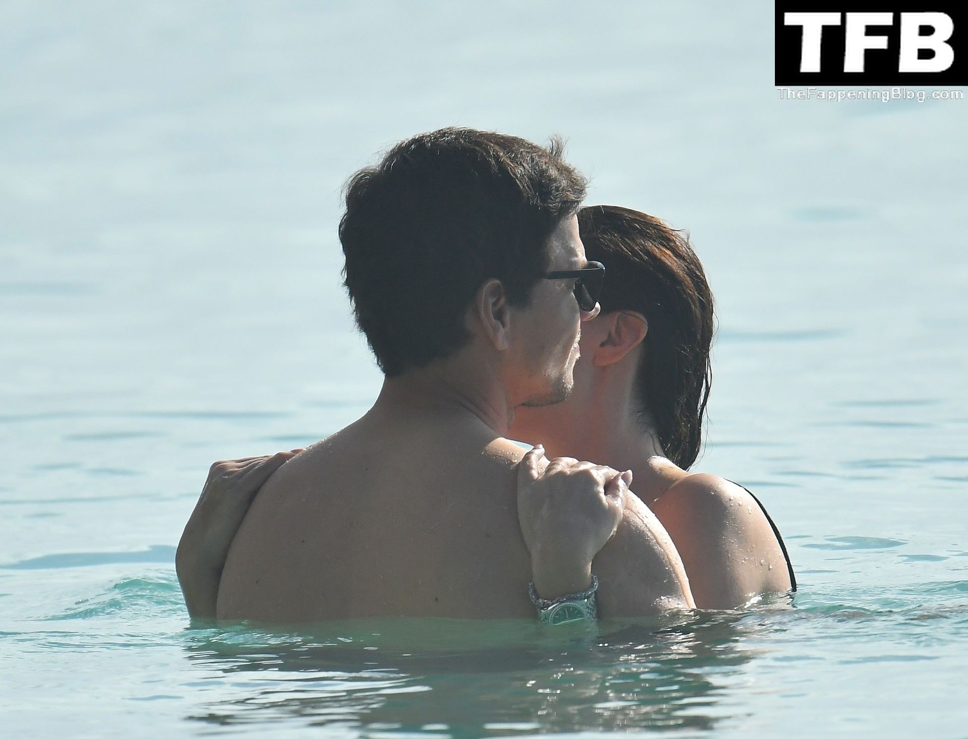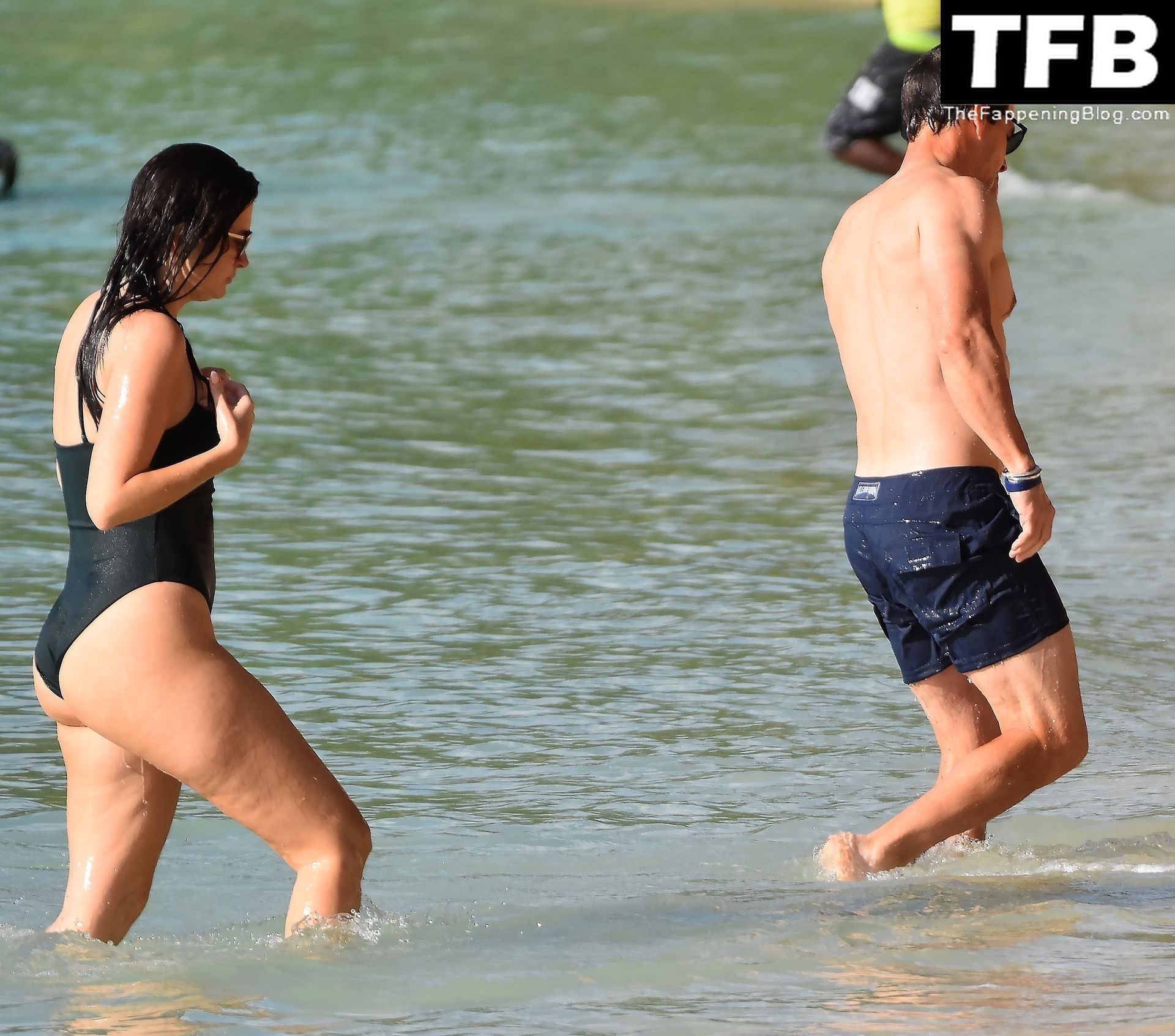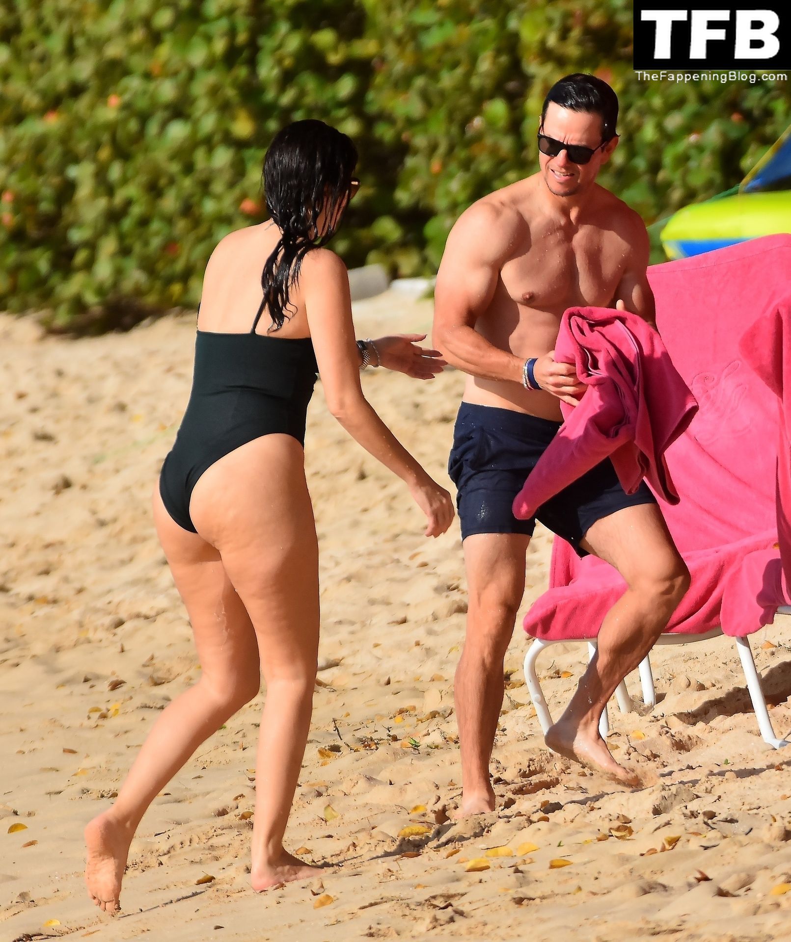 L’acteur américain Mark Wahlberg et sa femme Rhea Durham affichent leur amour et leur affection en se baignant dans la mer lors de vacances en famille sur la magnifique île des Caraïbes de la Barbade, sur la plage de l’hôtel Sandy Lane, le 22/12/2022.