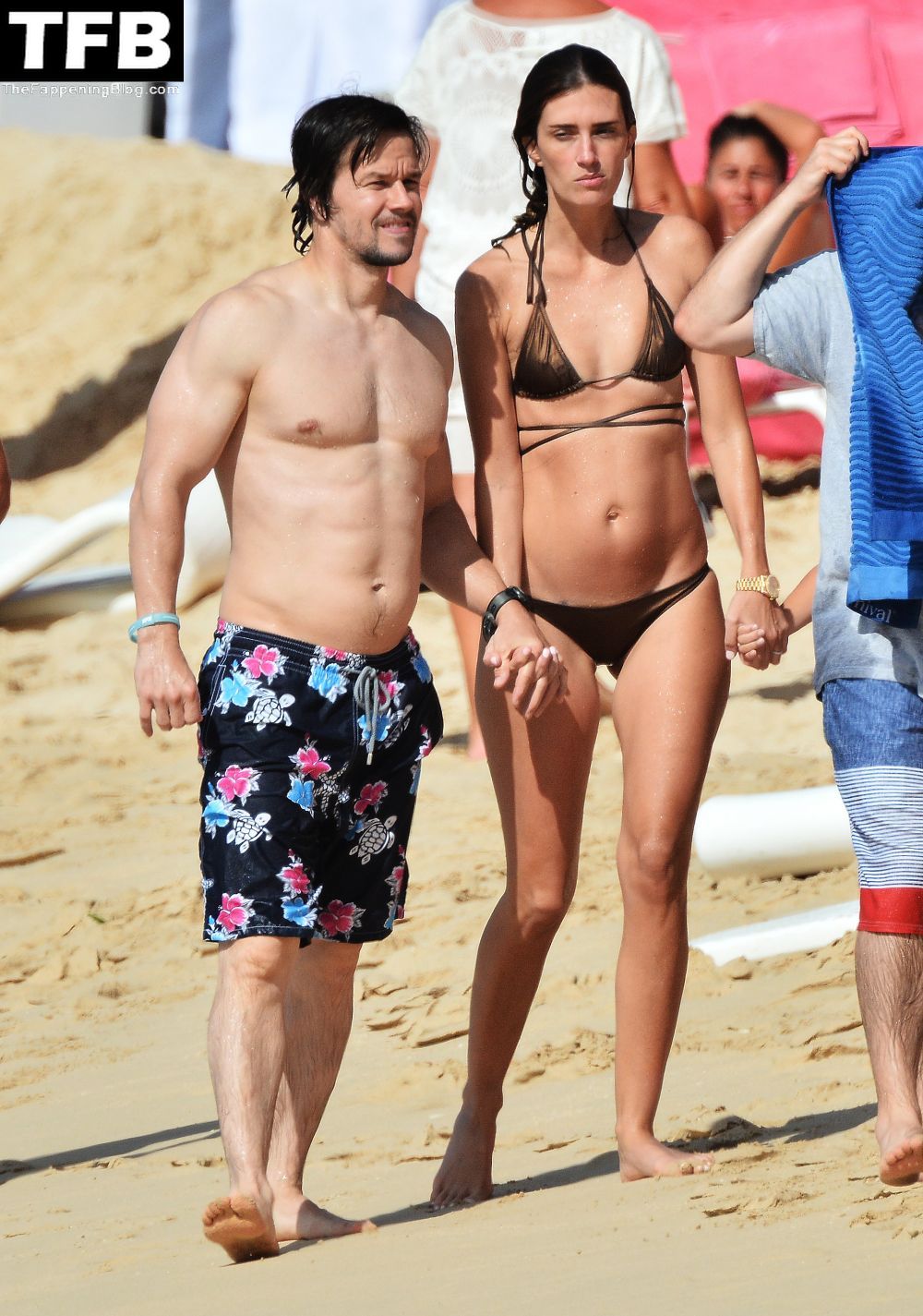 Model Rhea Durham montre ses seins nus pendant ses vacances avec son mari sur la plage à la Barbade (2015).