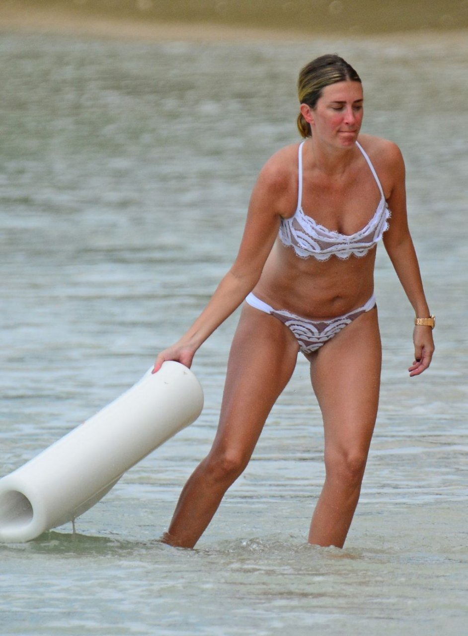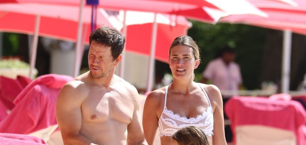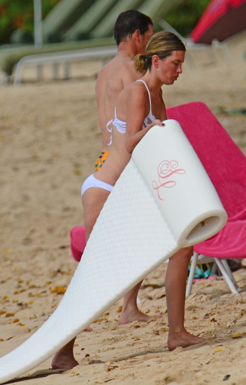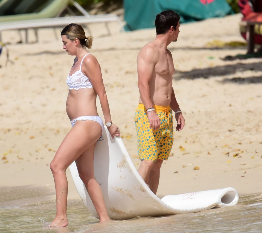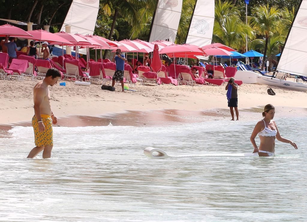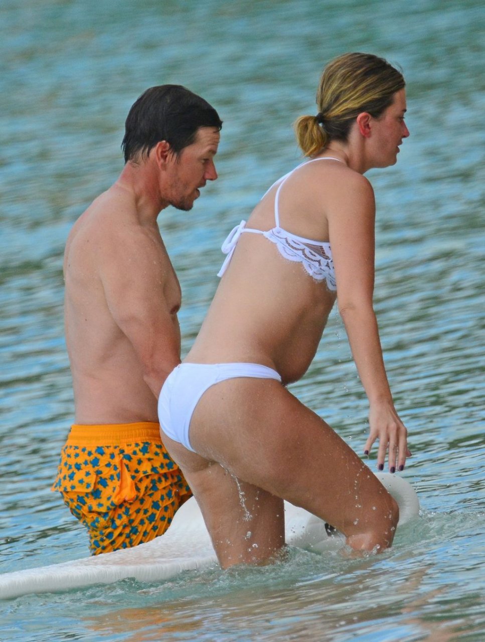 Mark Wahlberg et son épouse Rhea Durham partagent un moment romantique en nageant pendant leurs vacances à la Barbade, 01/03/2019. Rhea a été vue en bikini blanc sur la plage.