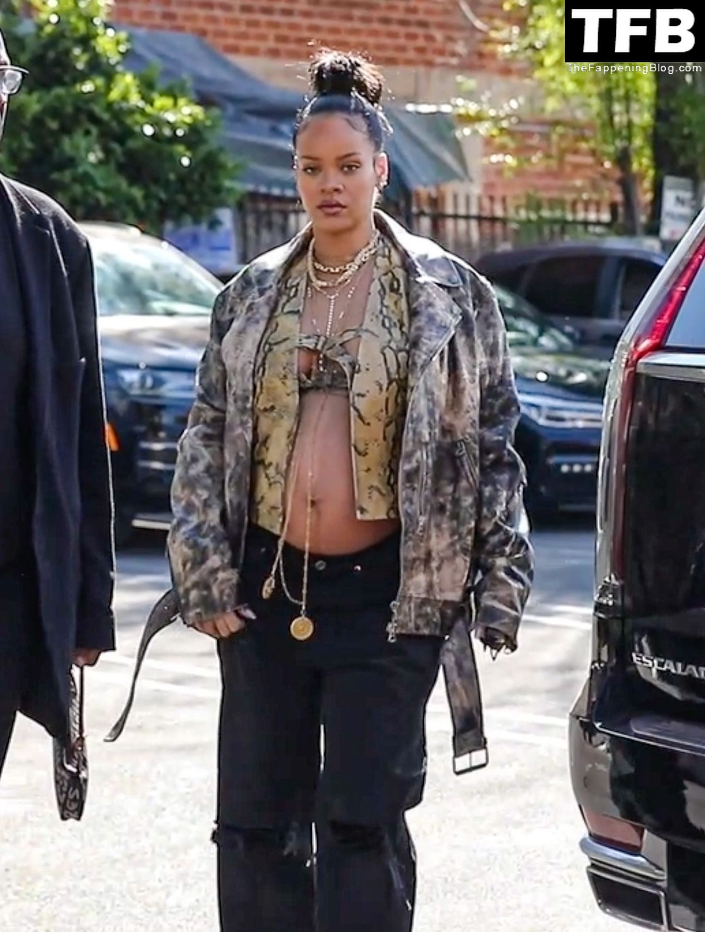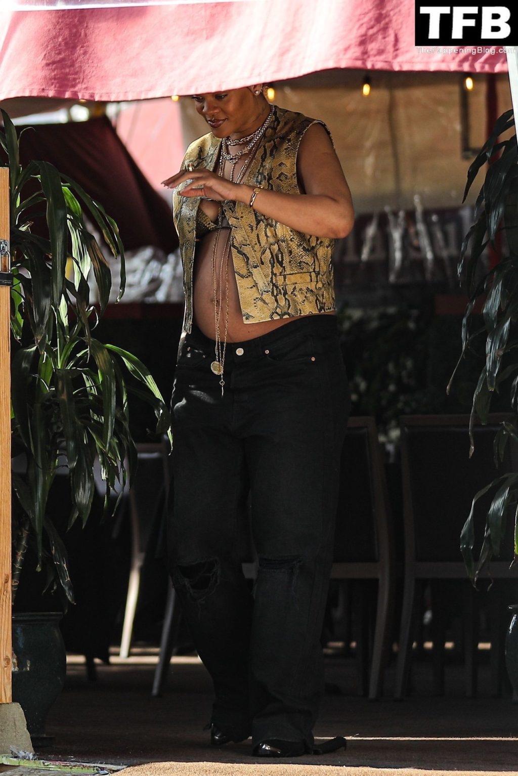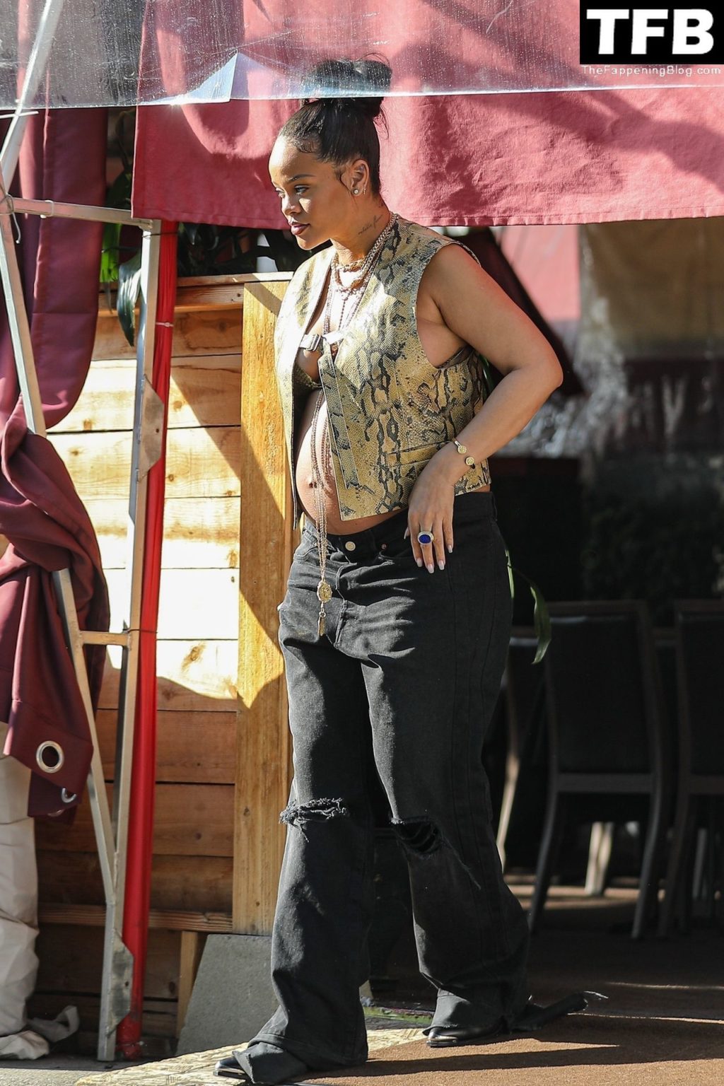 Rihanna Montre Ses Seins Sexy & Son Ventre de Grossesse Lors d’un Déjeuner à Beverly Hills (83 Photos)