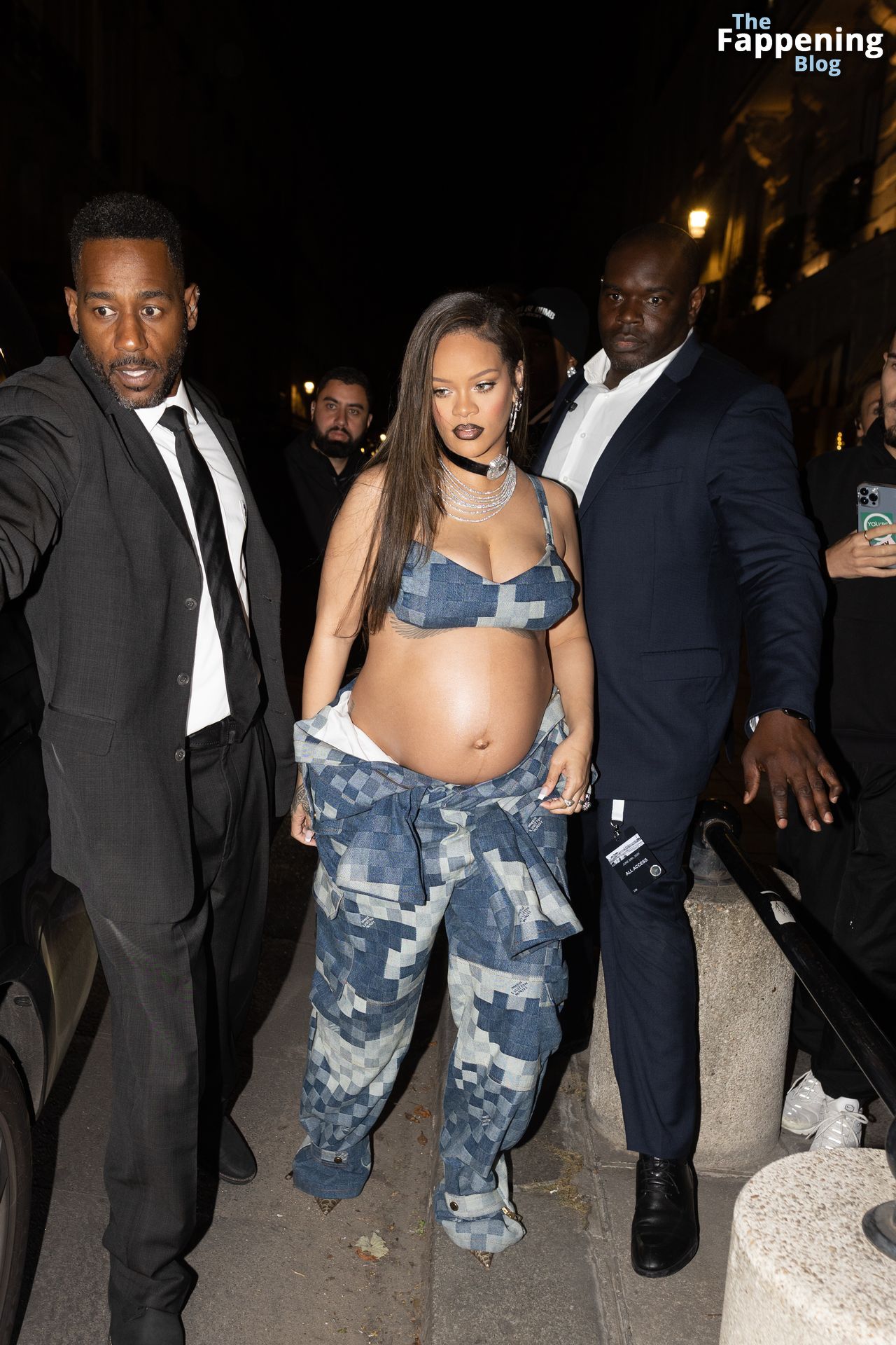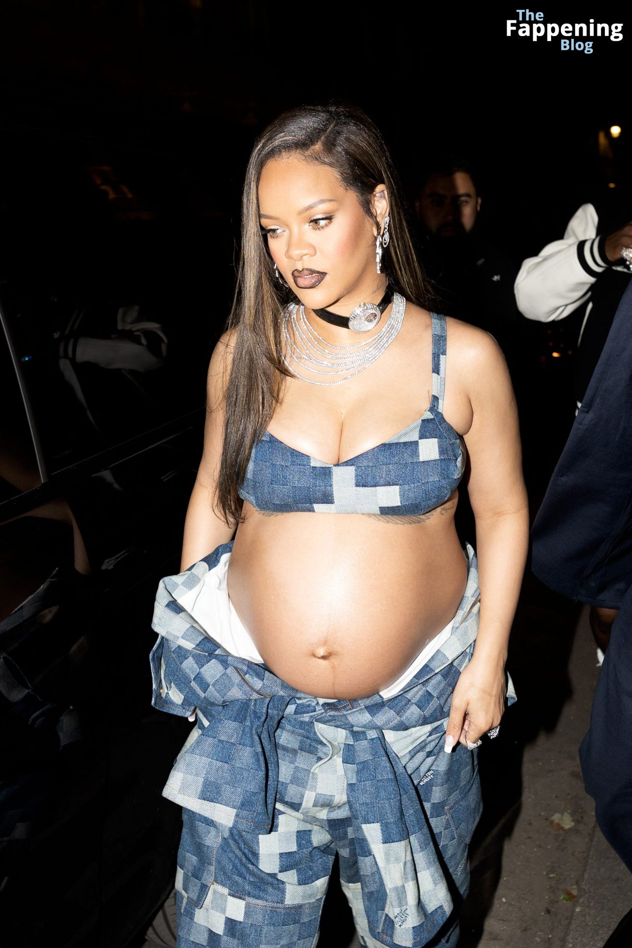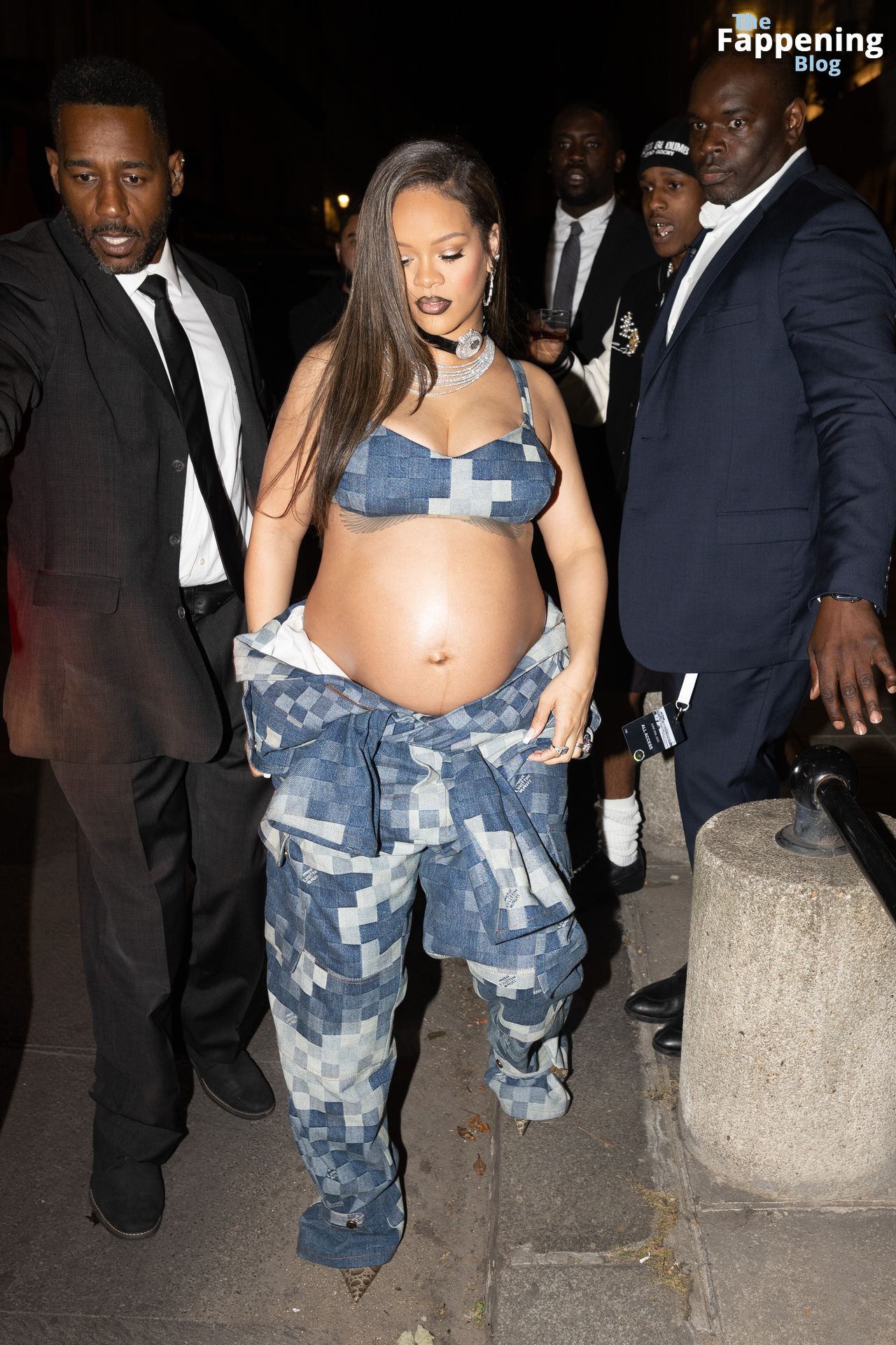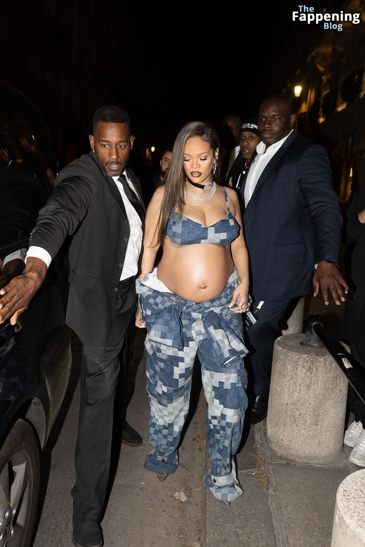 Rihanna et ASAP Rocky sortent de leur hôtel parisien chic, élégants pour la after party Louis Vuitton, vêtus de la tête aux pieds en Louis Vuitton. La star du Fappening embrasse sa sensualité et rayonne de cette aura maternelle lors des événements ! Préparez-vous à admirer sa poitrine généreuse et ce magnifique corps de femme enceinte.