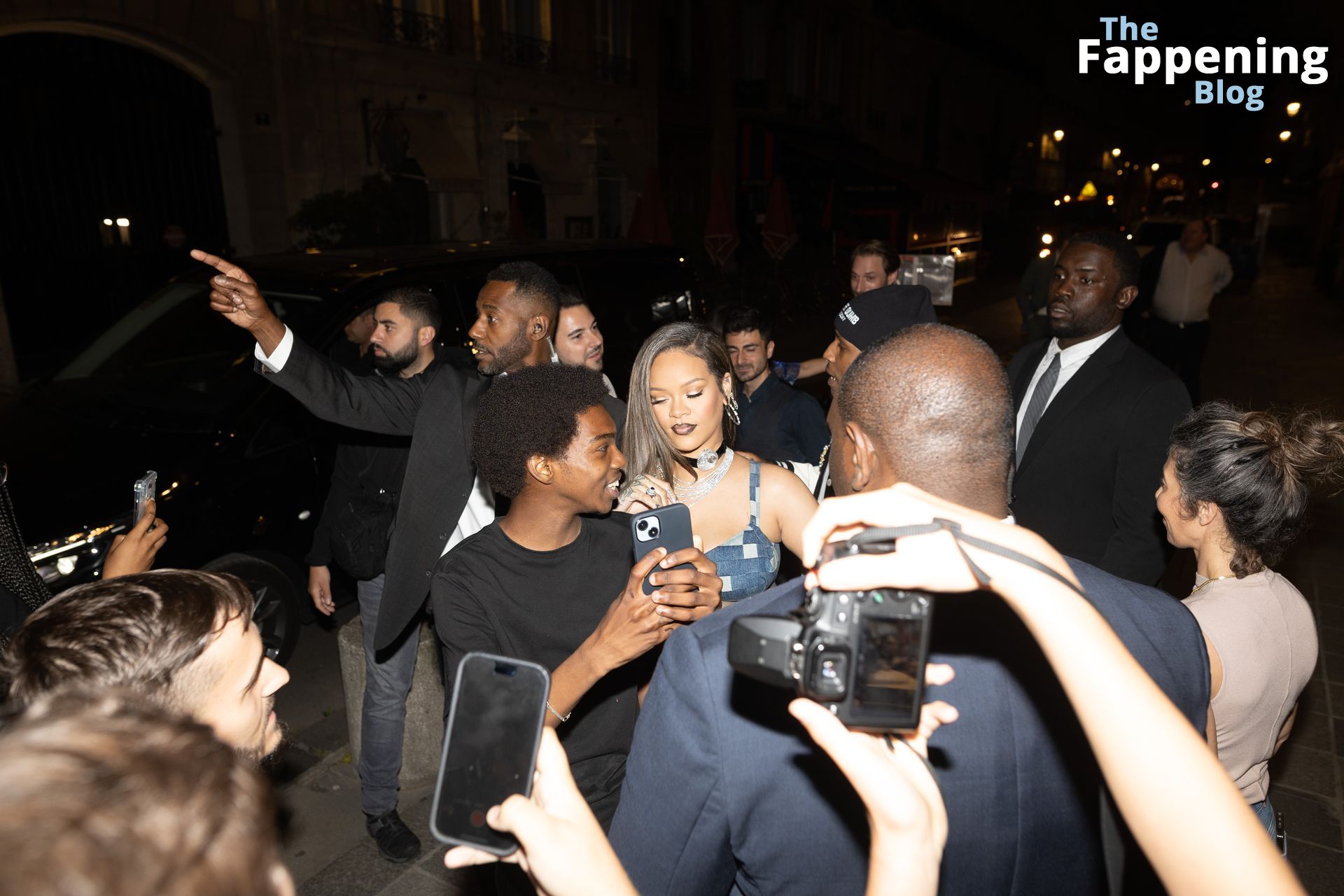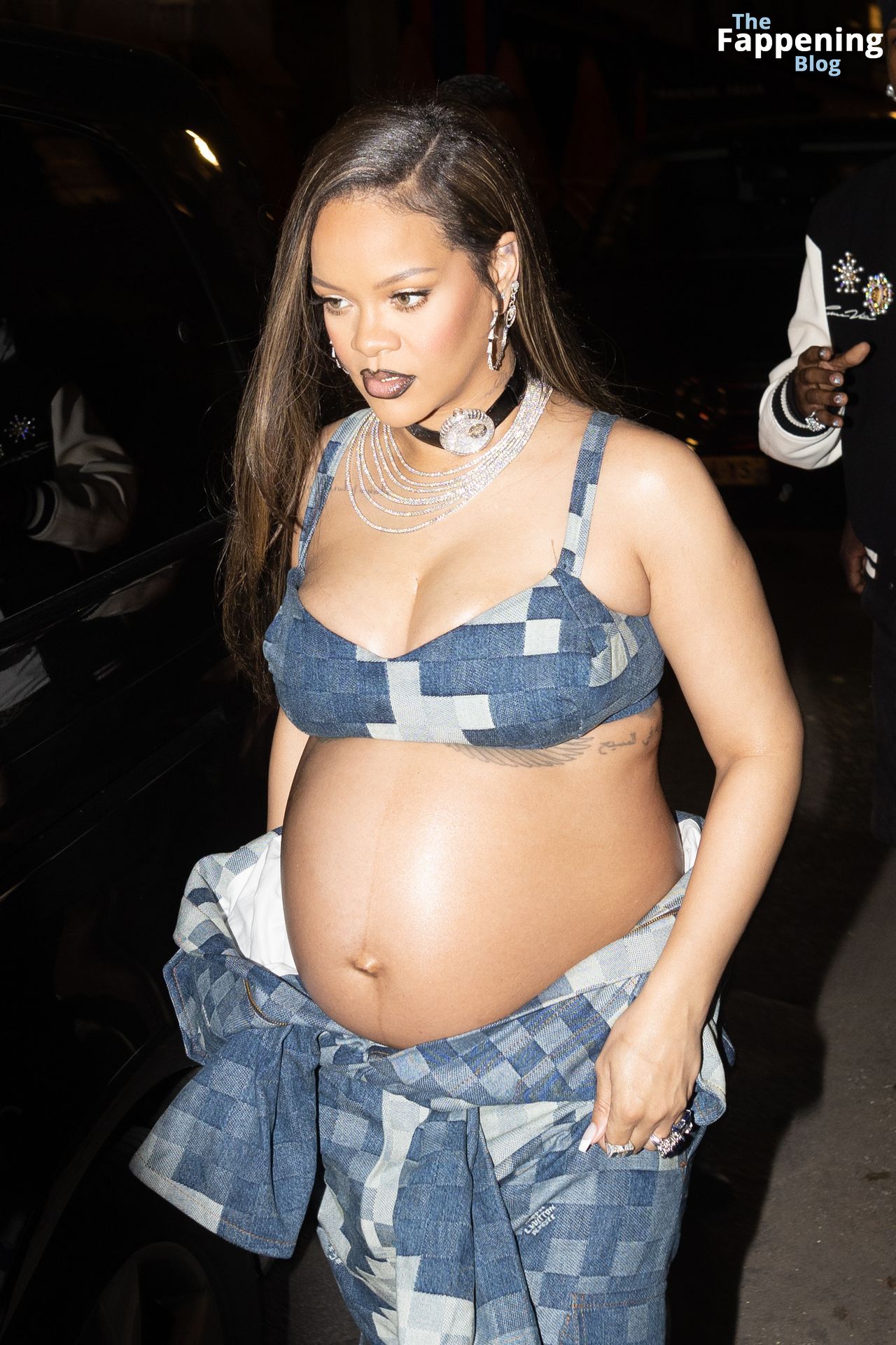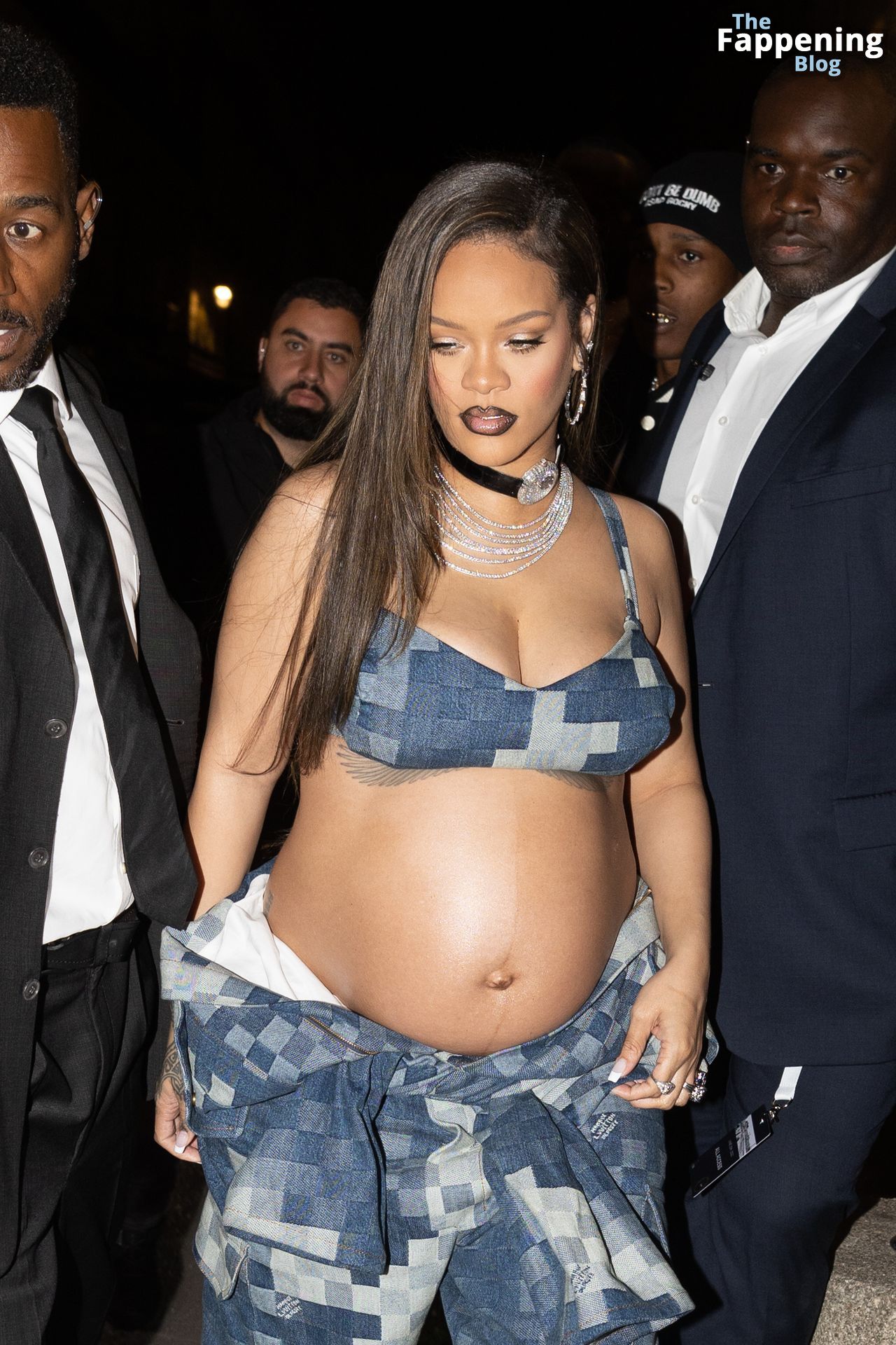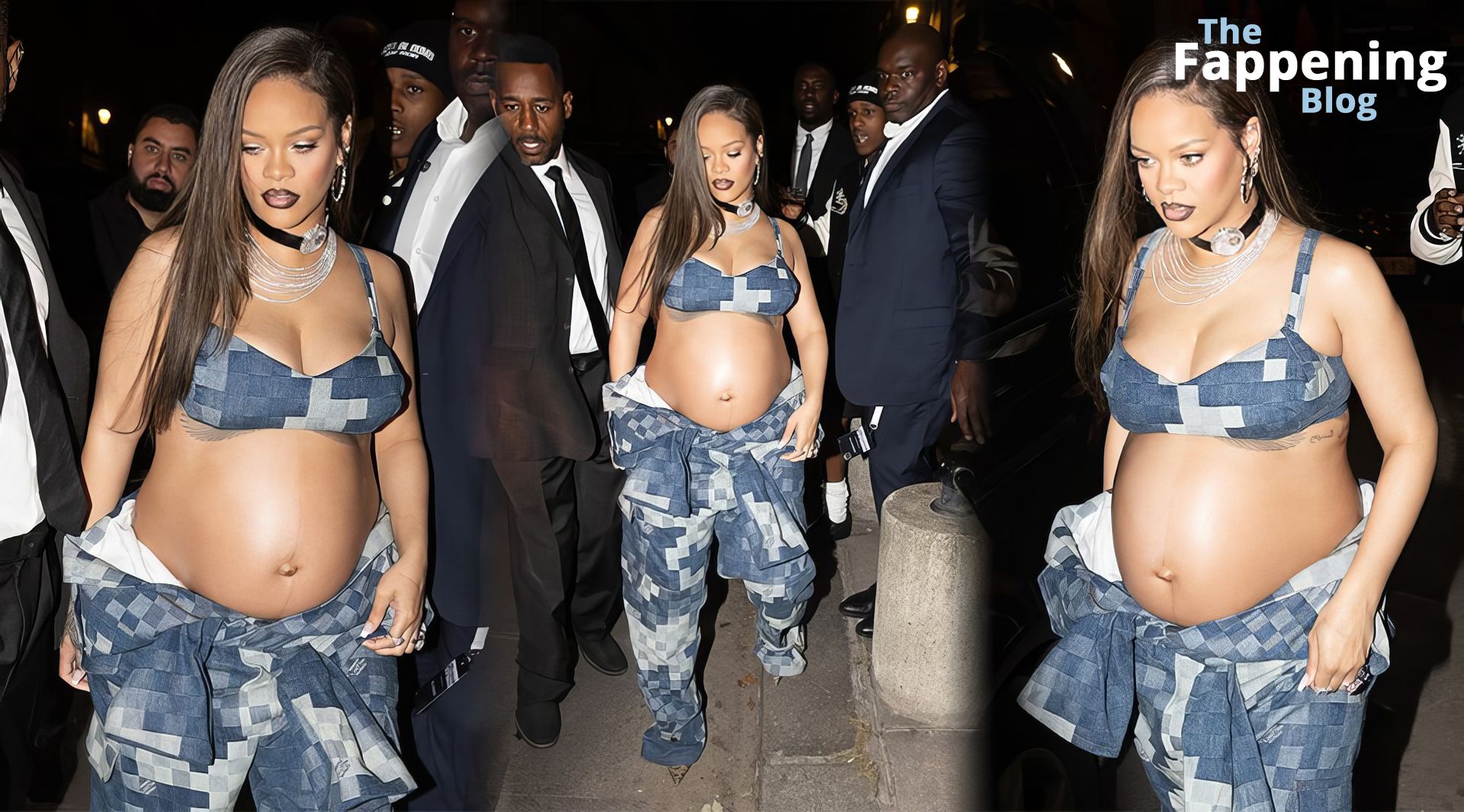 Rihanna et ASAP Rocky sortent de leur hôtel parisien chic, élégants pour la after party Louis Vuitton, vêtus de la tête aux pieds en Louis Vuitton. La star du Fappening embrasse sa sensualité et rayonne de cette aura maternelle lors des événements ! Préparez-vous à admirer sa poitrine généreuse et ce magnifique corps de femme enceinte.