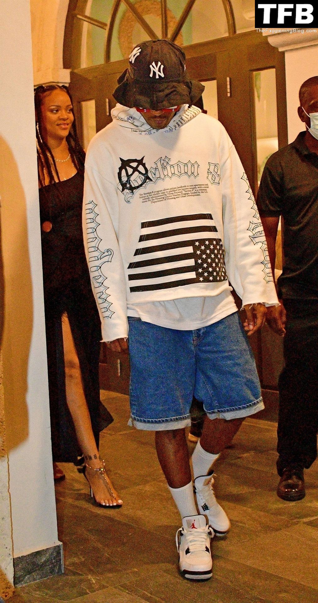 La superstar barbadienne Rihanna et son petit ami ASAP Rocky ont été photographiés en train de quitter une fête de célébration du Nouvel An à la Barbade, le 31/12/2021.