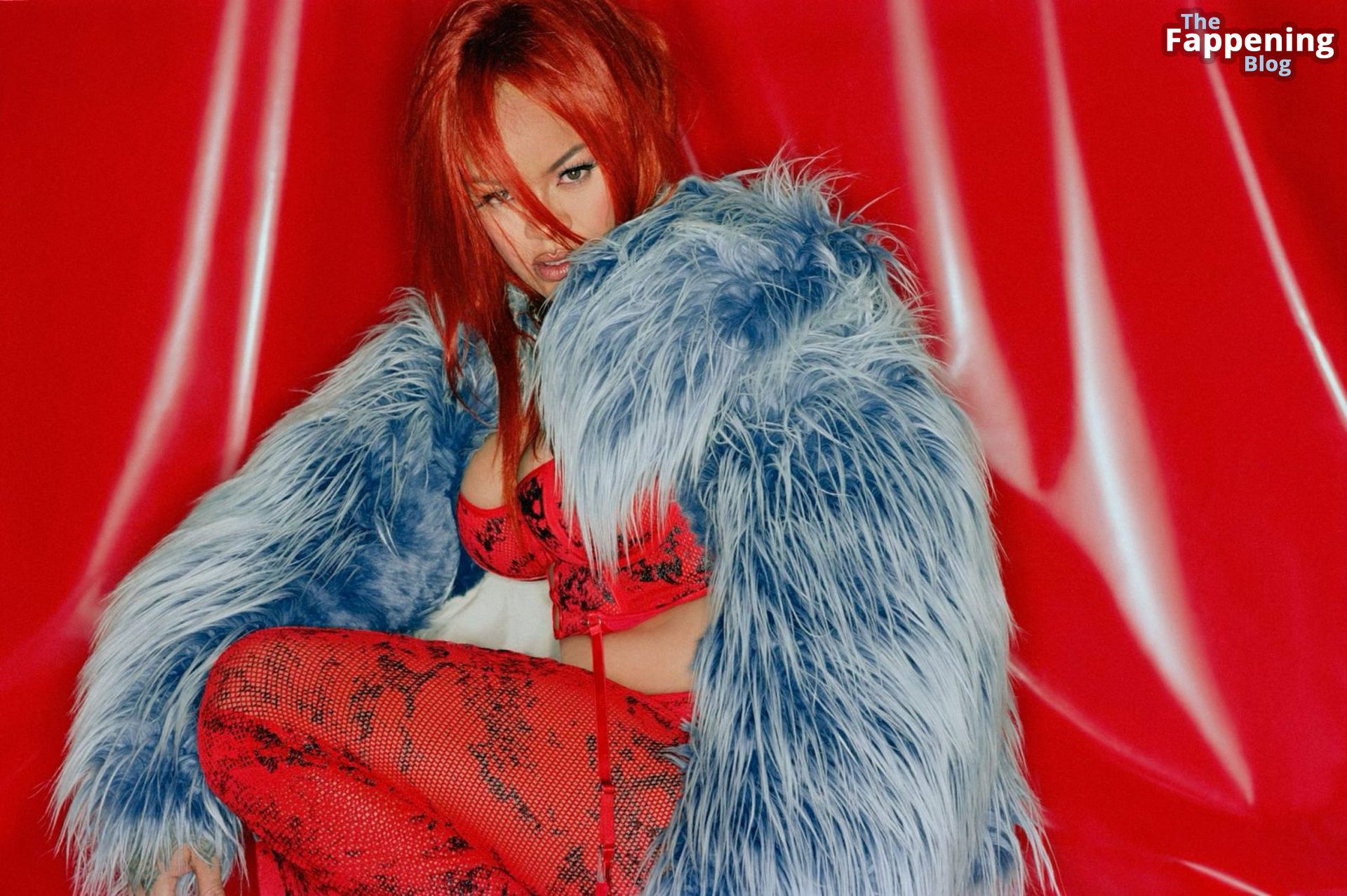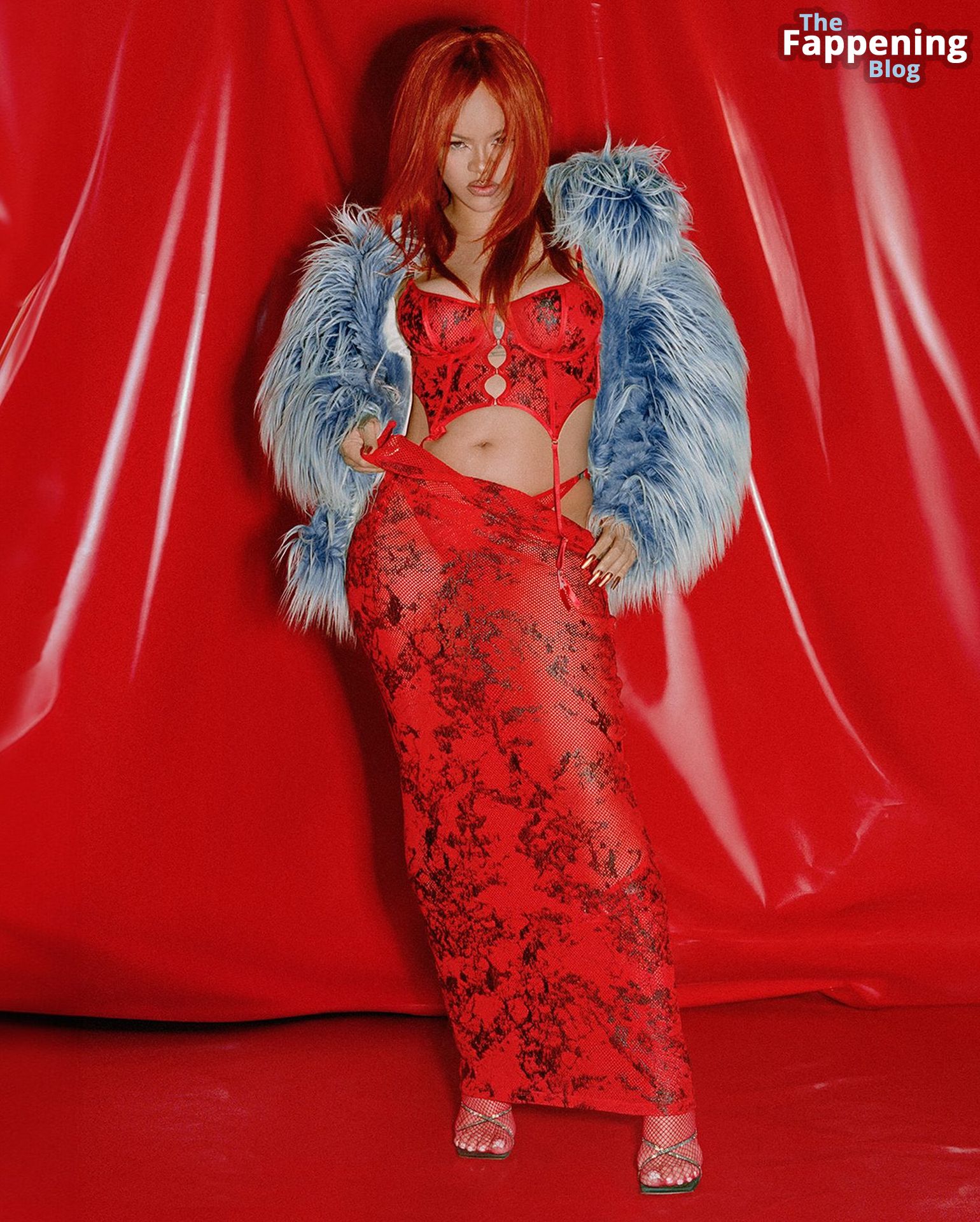 Rihanna apparaît dans une nouvelle séance photo Savage x Fenty, mettant en valeur ses courbes dans une lingerie en dentelle rouge et un manteau sexy en fourrure bleue.