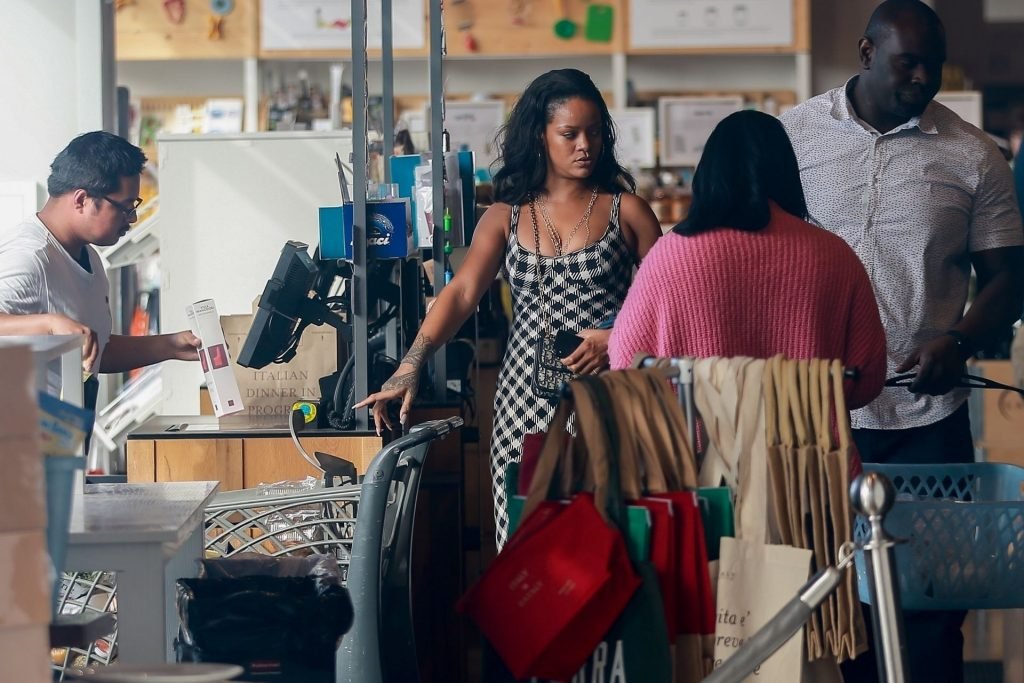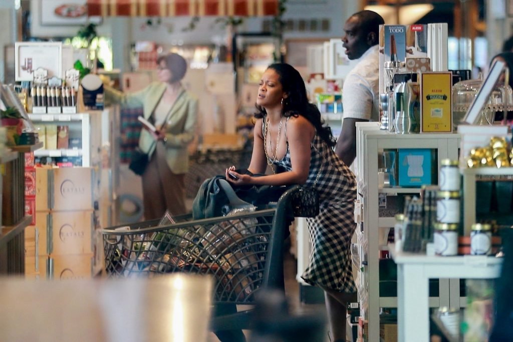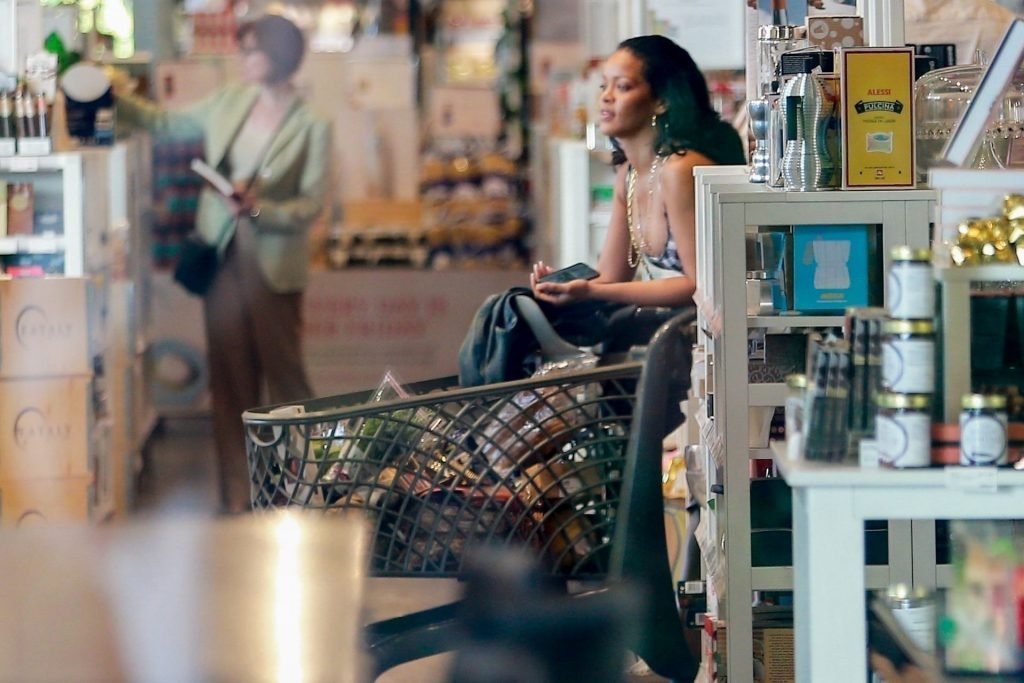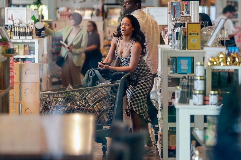 Rihanna vaut peut-être 600 millions de dollars, mais il semble qu’elle puisse encore faire ses propres courses. La chanteuse a été aperçue en train de pousser un chariot dans Eataly au Westfield Mall avec son amie et quelques gardes du corps, où elle a fait le plein de vin, de basilic et d’autres produits gastronomiques, le 08/08/2019.