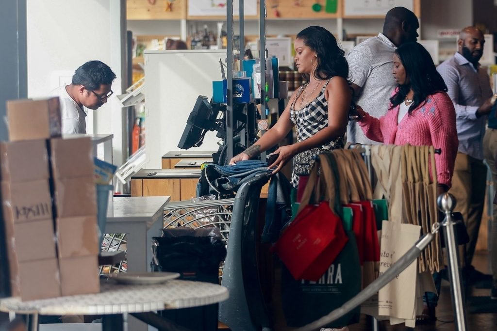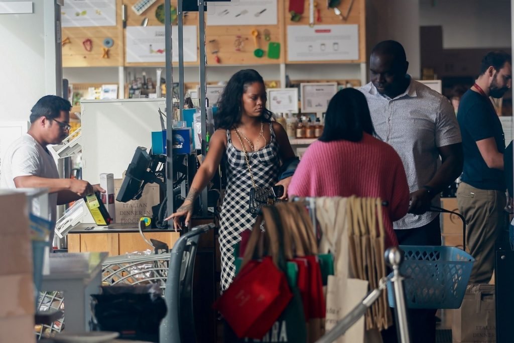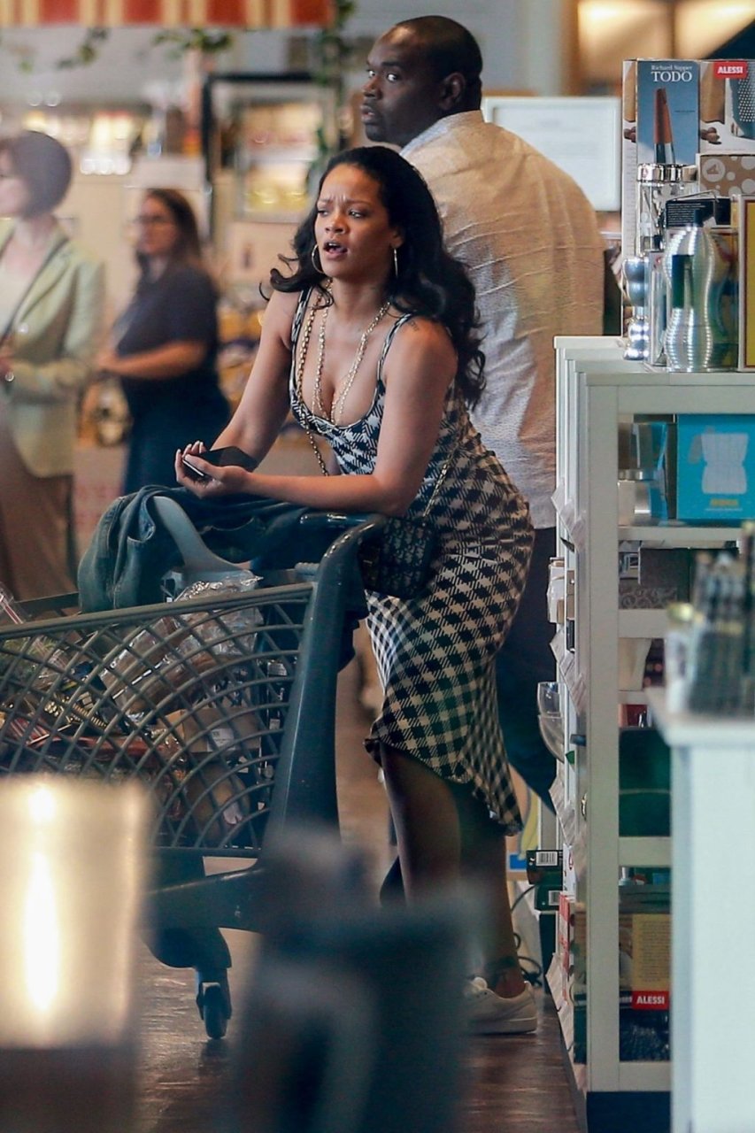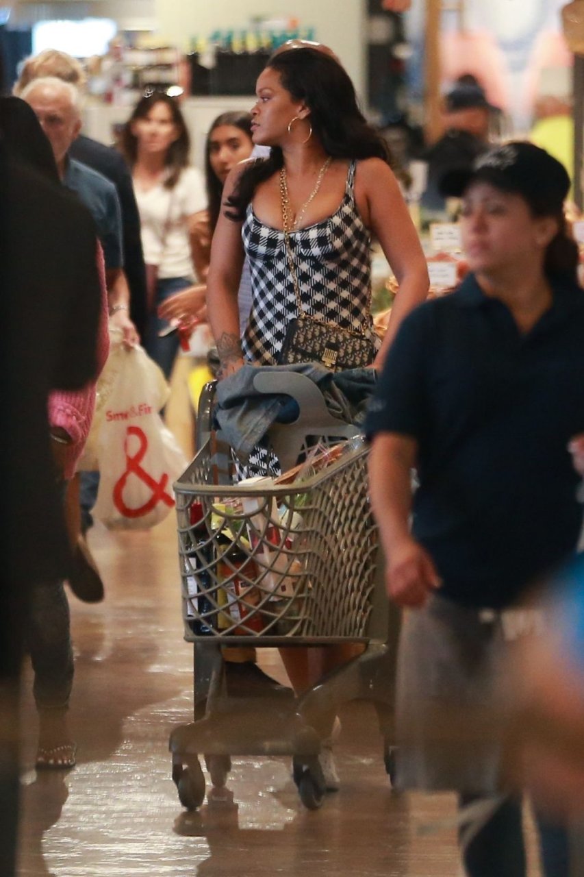 Rihanna vaut peut-être 600 millions de dollars, mais il semble qu’elle puisse encore faire ses propres courses. La chanteuse a été aperçue en train de pousser un chariot dans Eataly au Westfield Mall avec son amie et quelques gardes du corps, où elle a fait le plein de vin, de basilic et d’autres produits gastronomiques, le 08/08/2019.