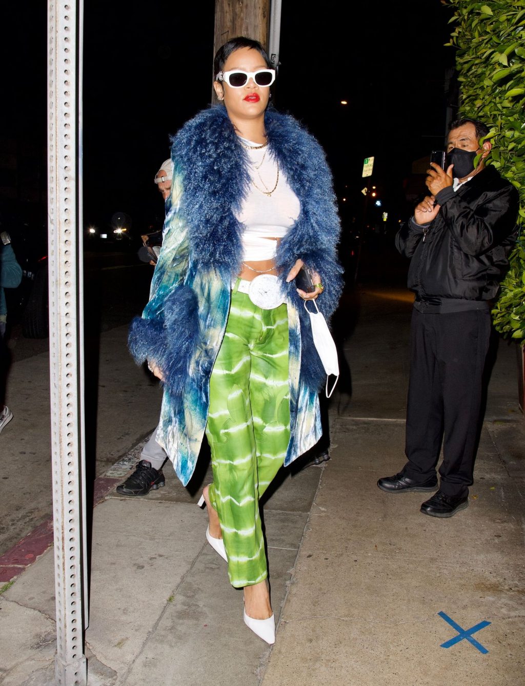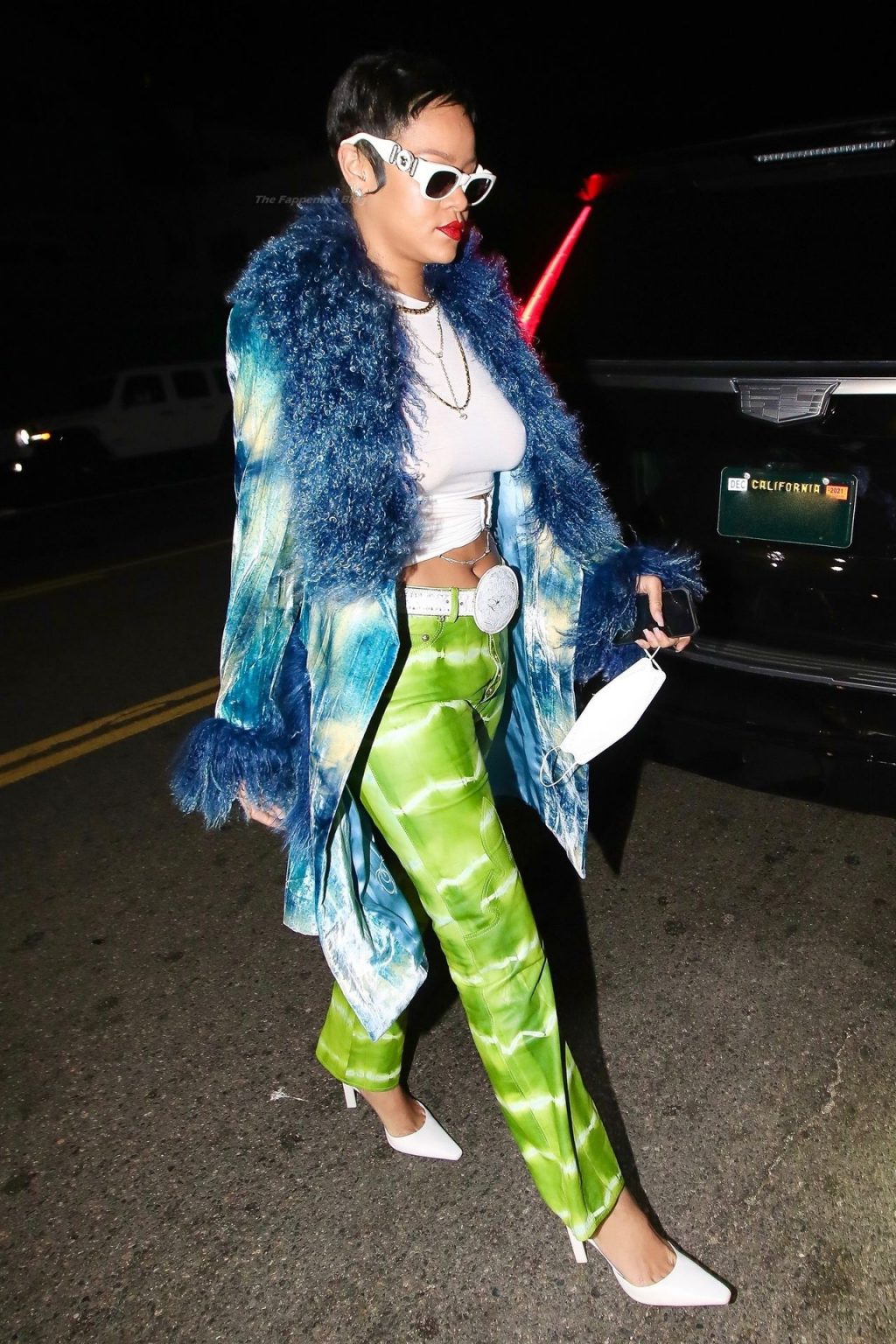 La star du Fappening Rihanna affiche sa nouvelle coupe courte en arrivant pour dîner au Giorgio Baldi à Santa Monica, le 05/05/2021.