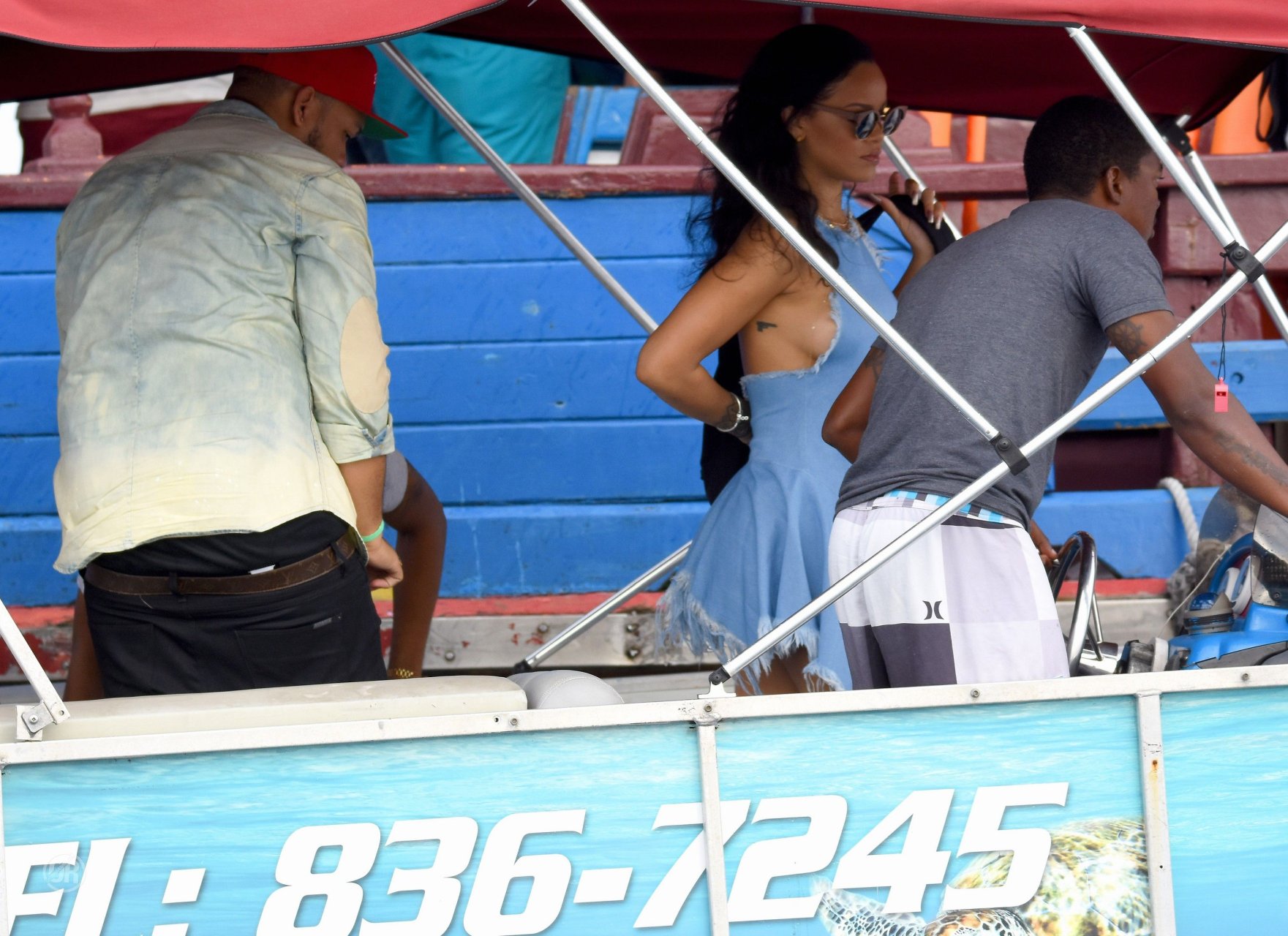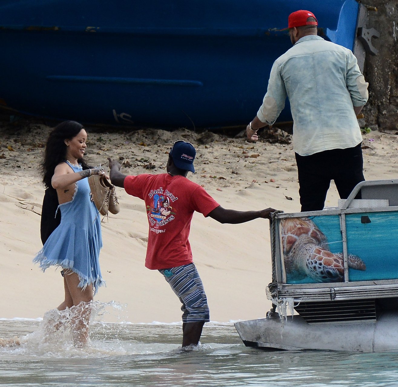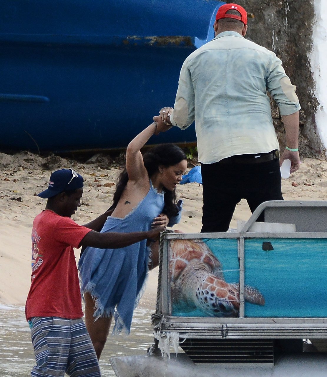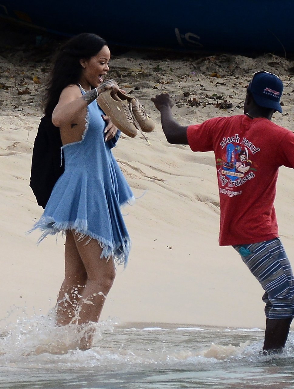 Nouvelles photos paparazzi de Rihanna sans soutien-gorge dans une robe bleue à la Barbade, 27/12/15. Douces petites poitrines ! Rihanna est une chanteuse et créatrice de mode américaine. Âge 27 ans (20 février 1988)