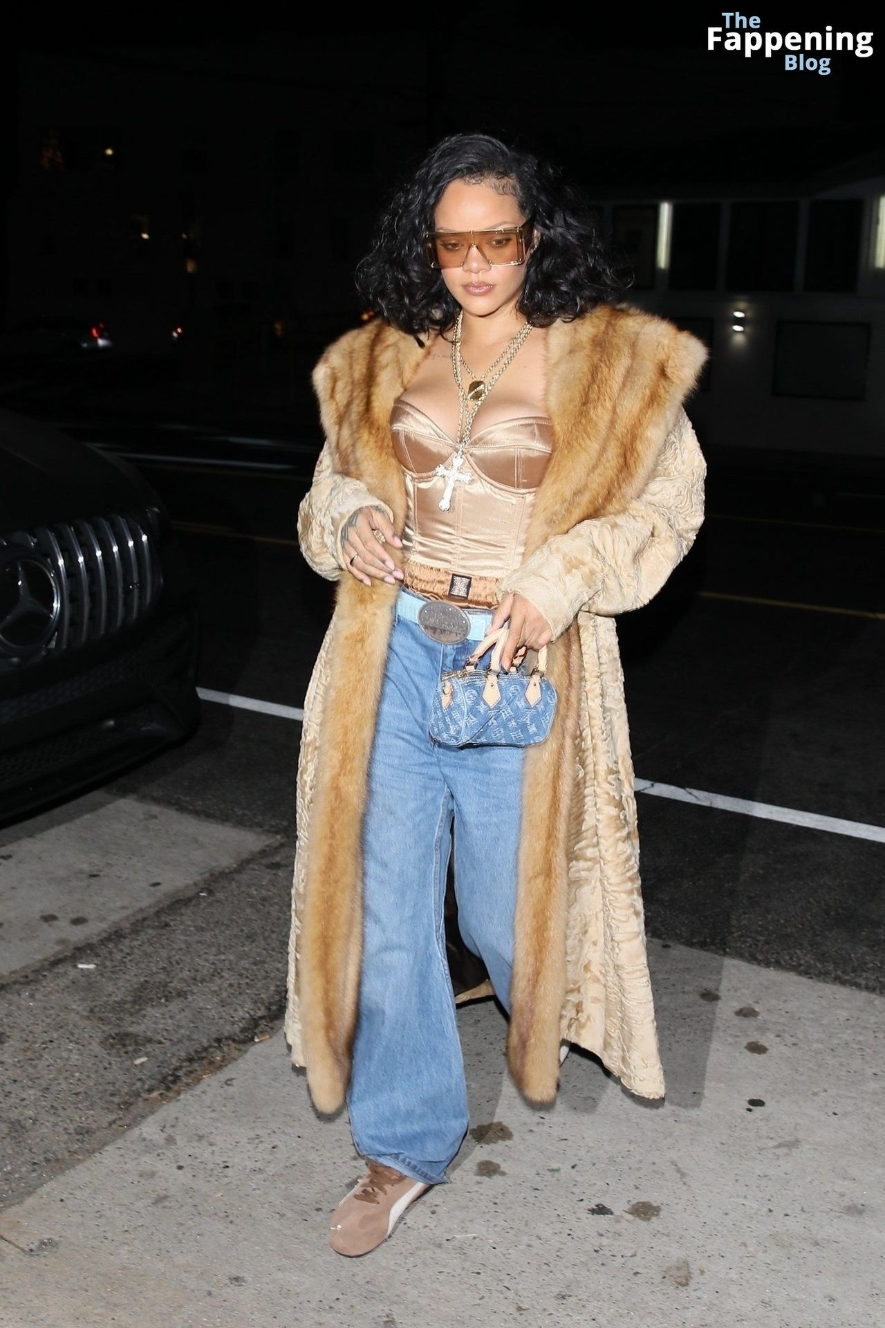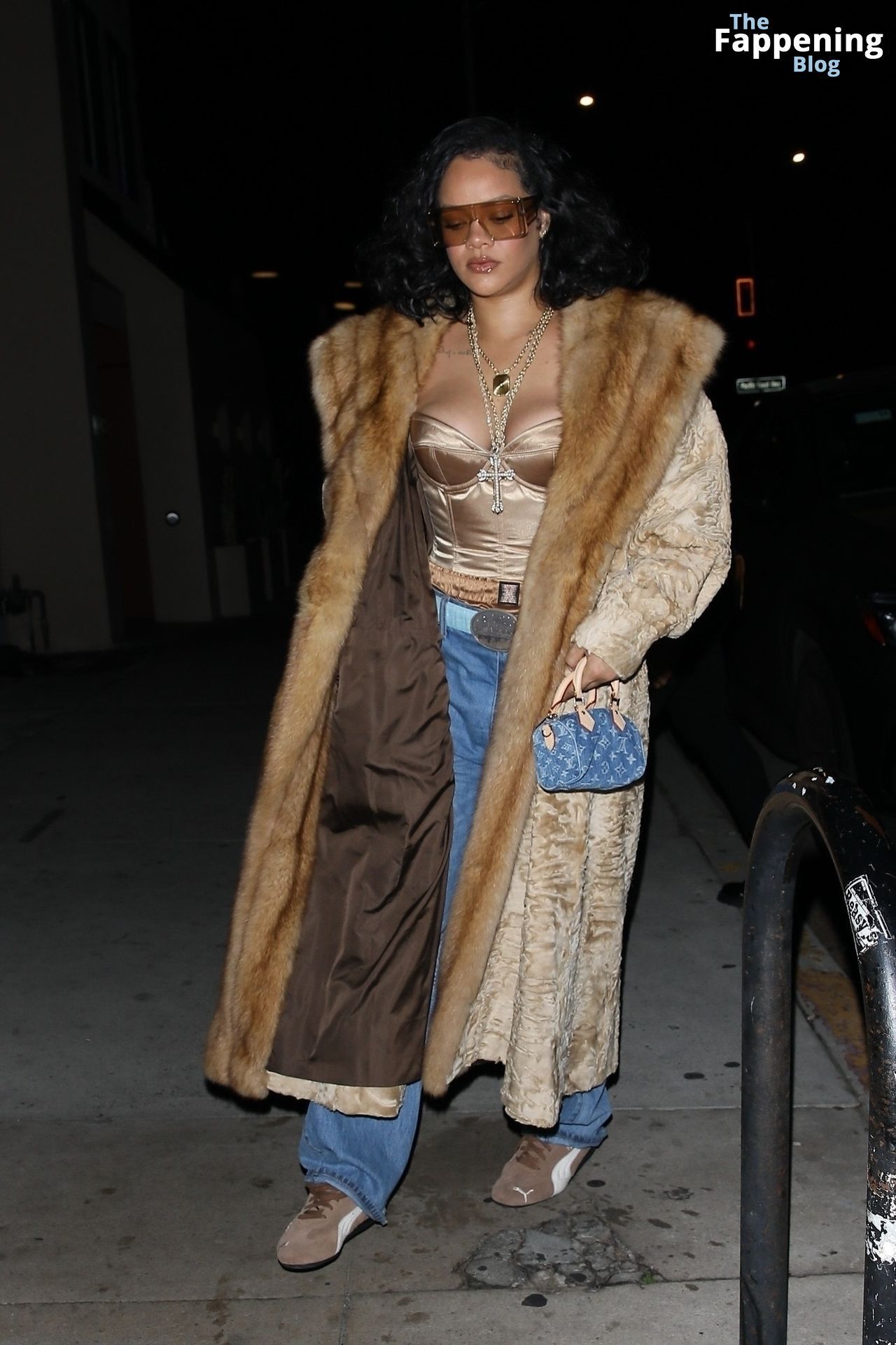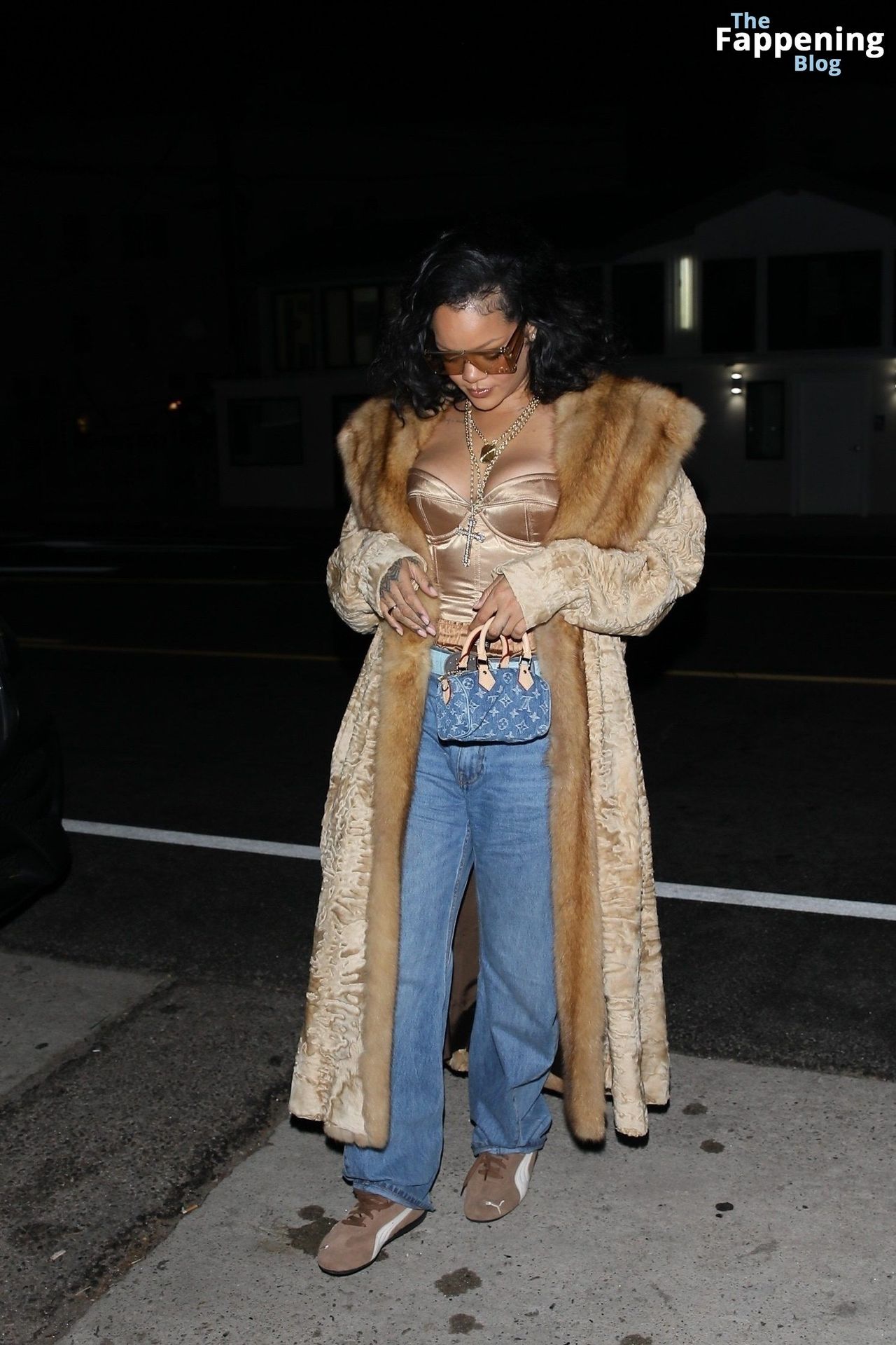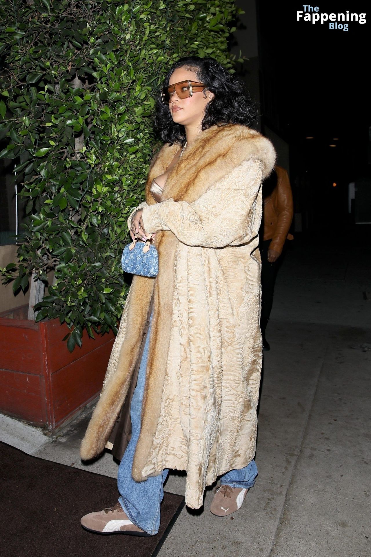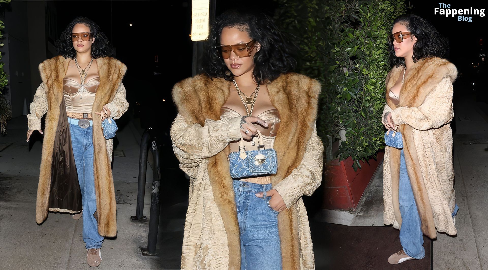 Rihanna éblouit chez Giorgio Baldi à Santa Monica, arrivant dans un look chic et superposé avec un somptueux manteau de fourrure posé sur un corset en satin ajusté et un jean taille haute au style décontracté.