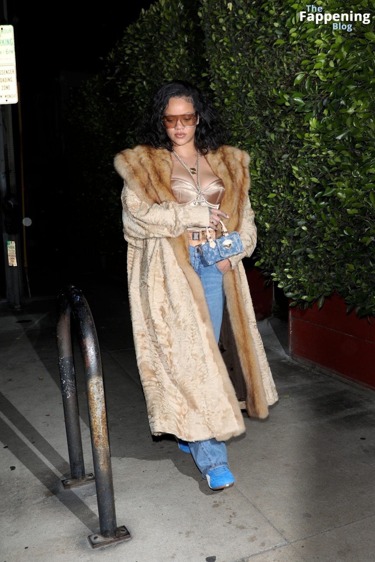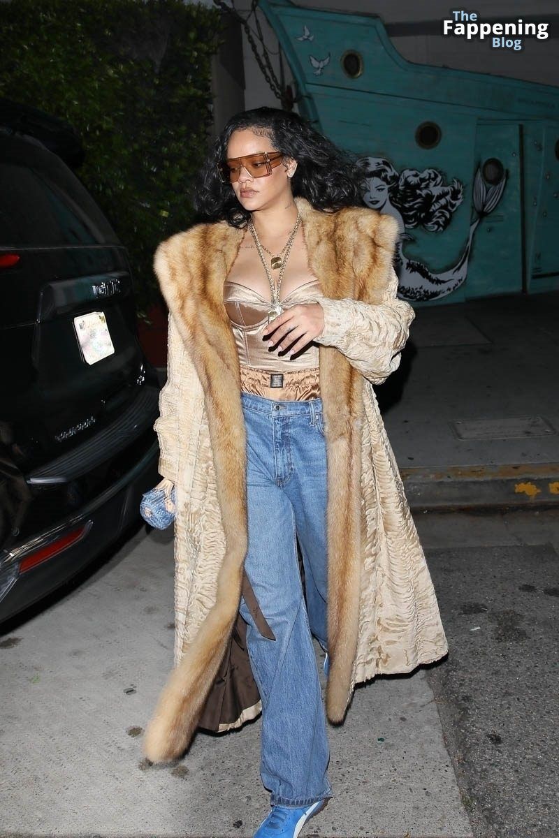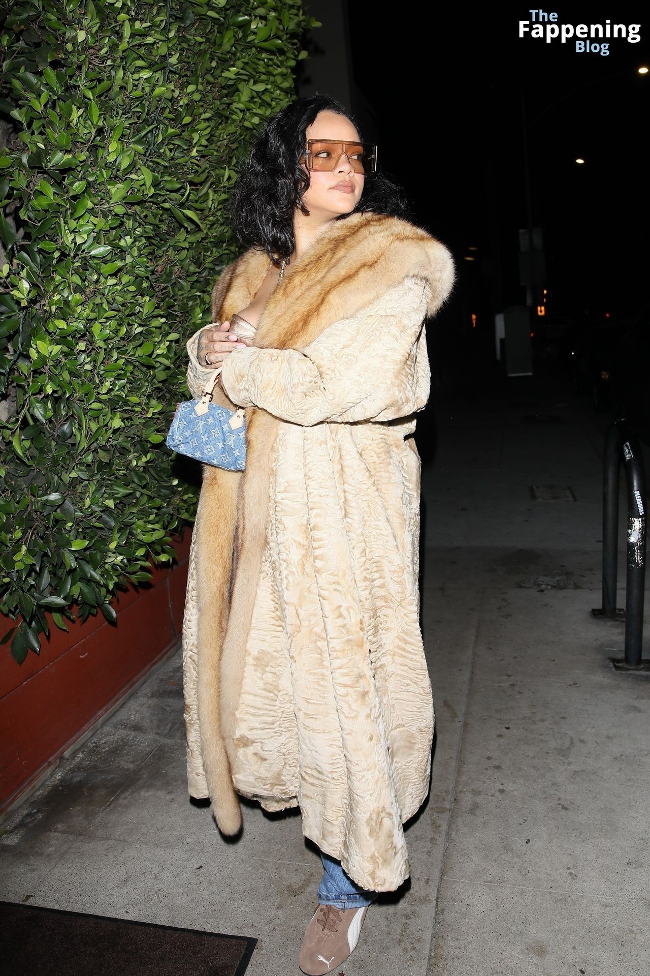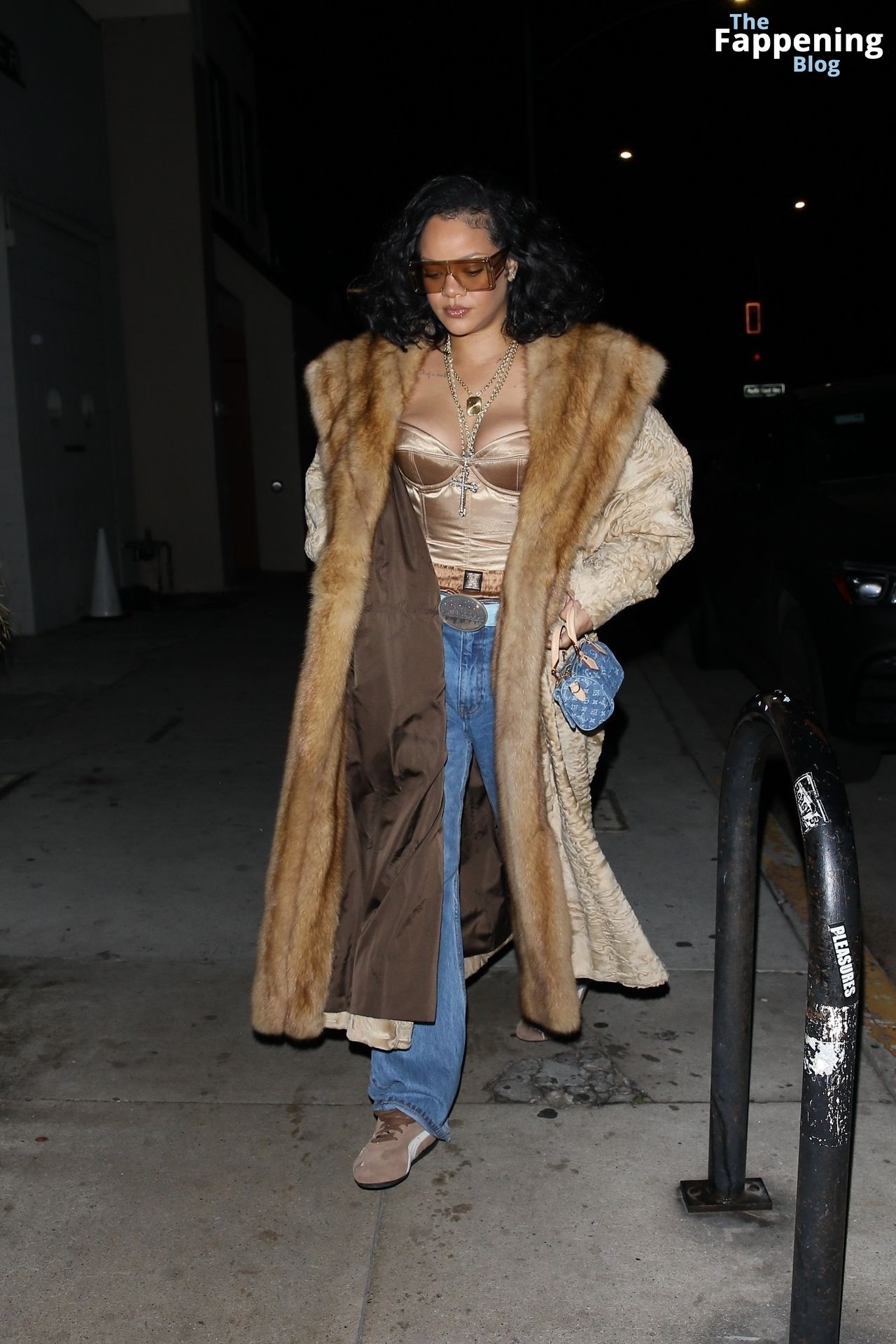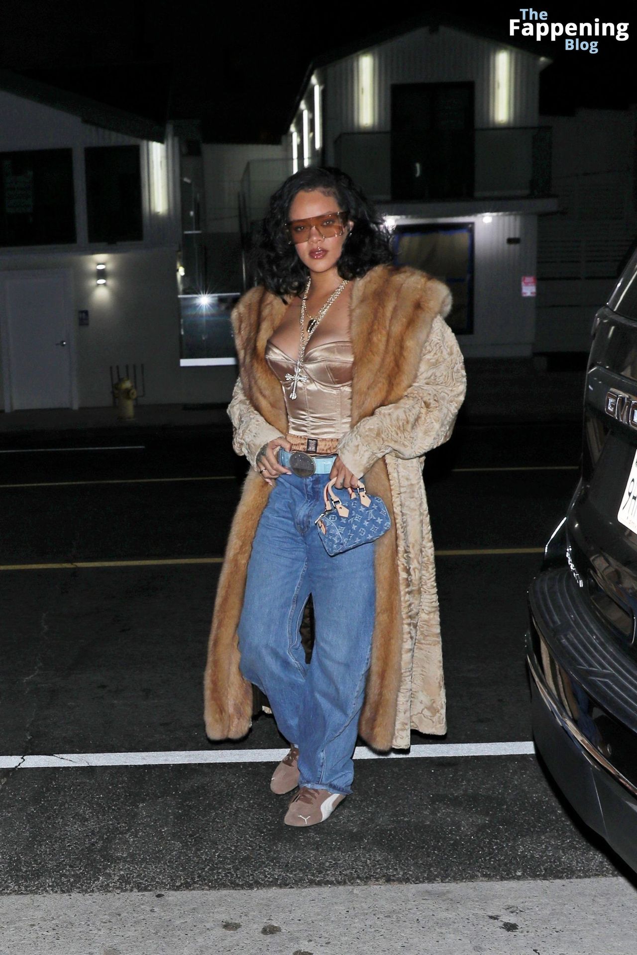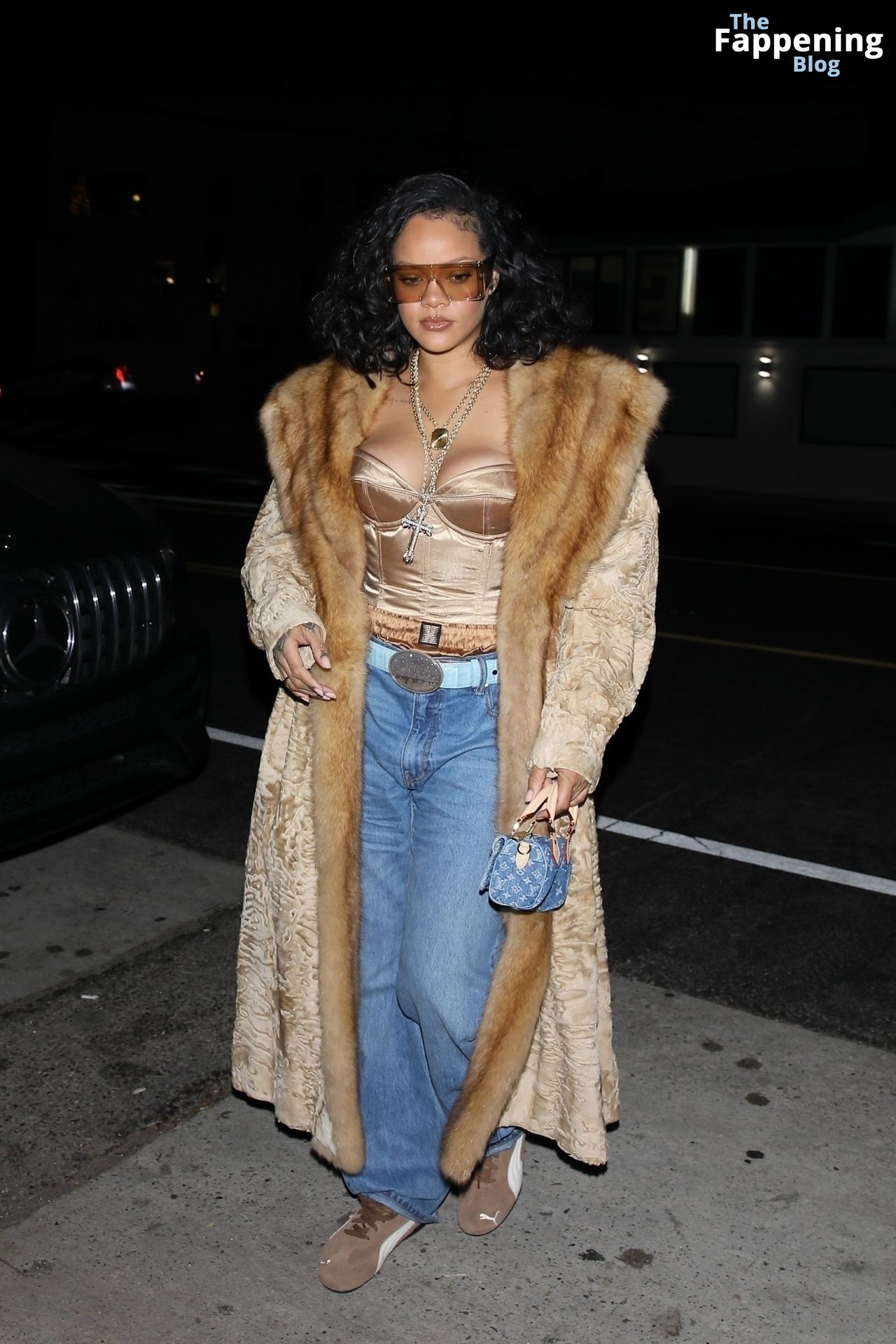 Rihanna éblouit chez Giorgio Baldi à Santa Monica, arrivant dans un look chic et superposé avec un somptueux manteau de fourrure posé sur un corset en satin ajusté et un jean taille haute au style décontracté.