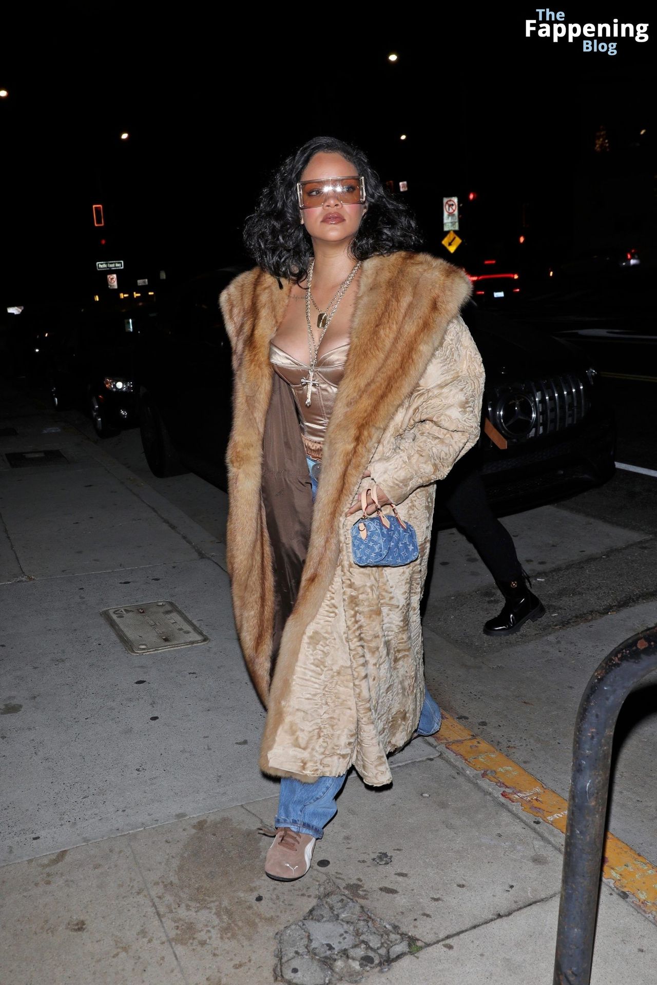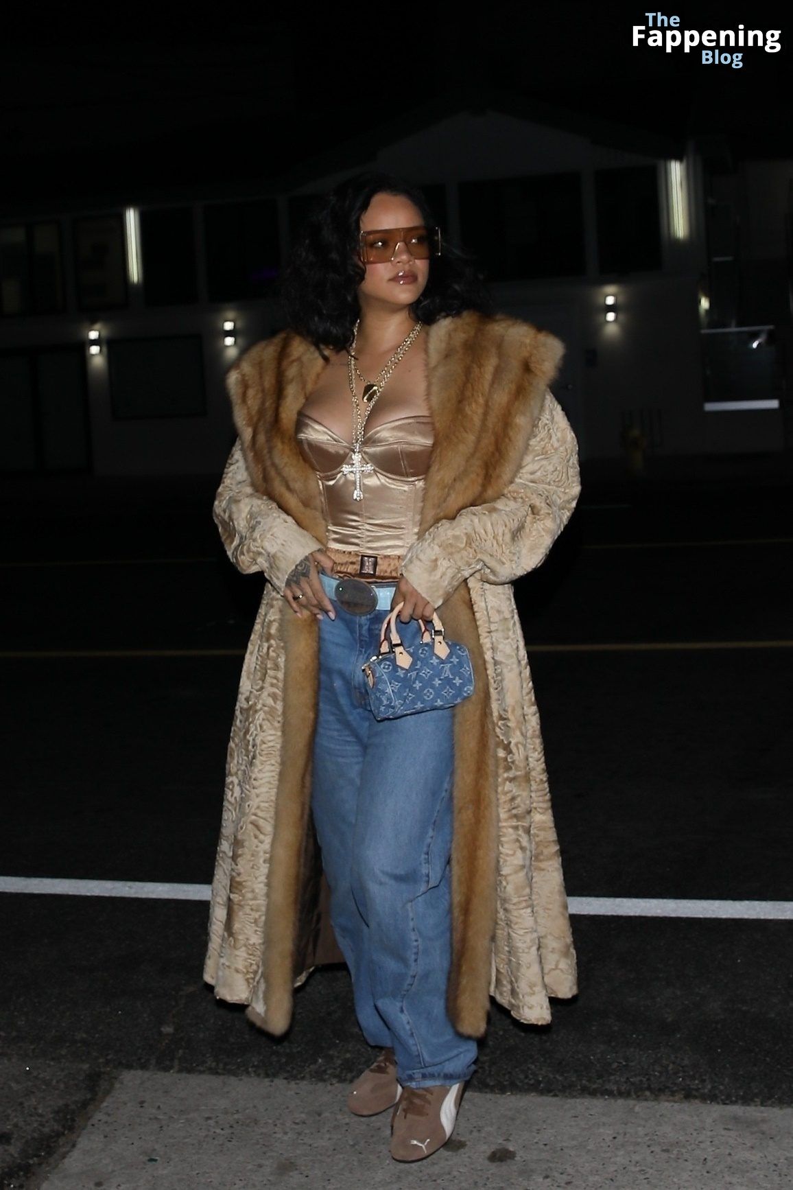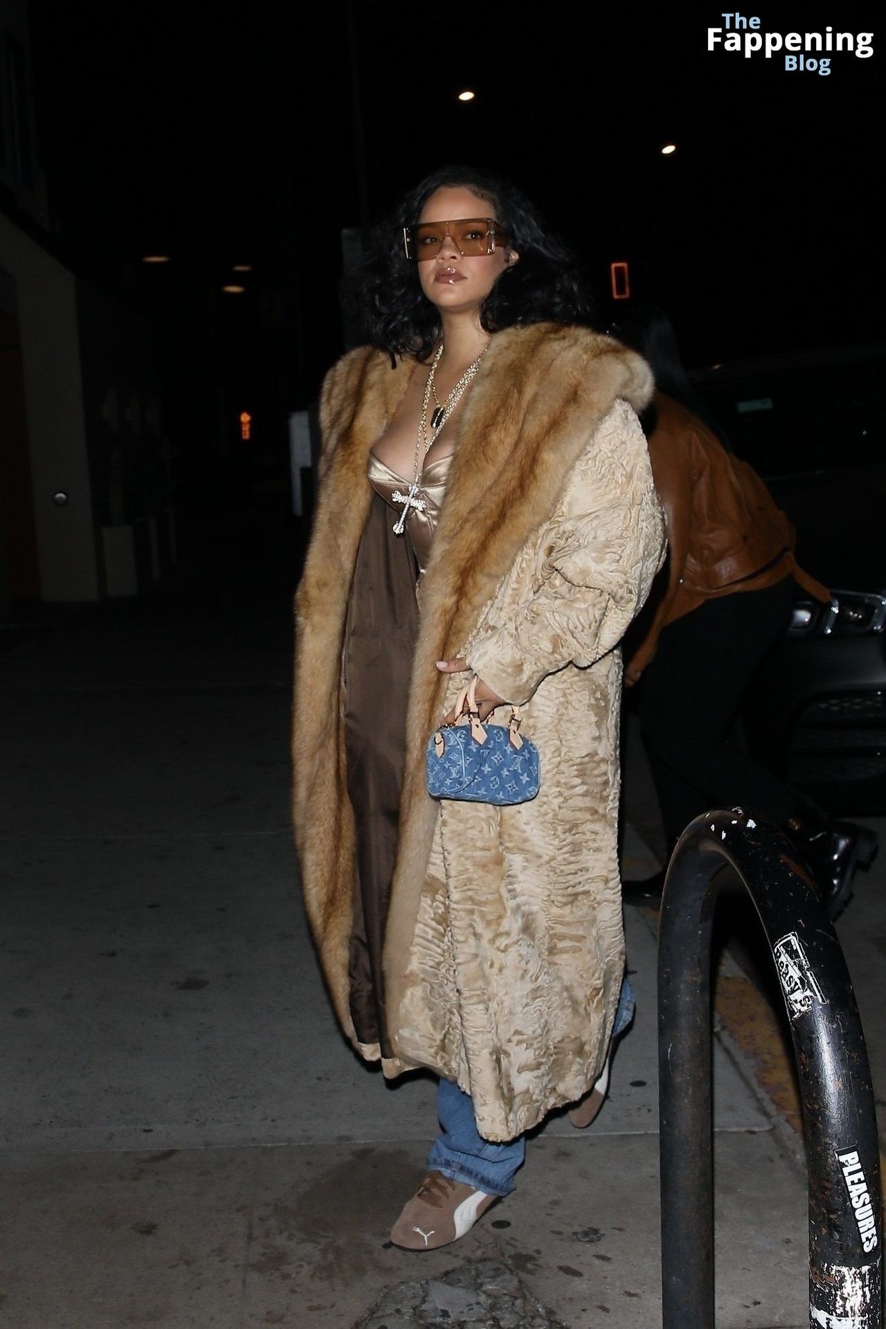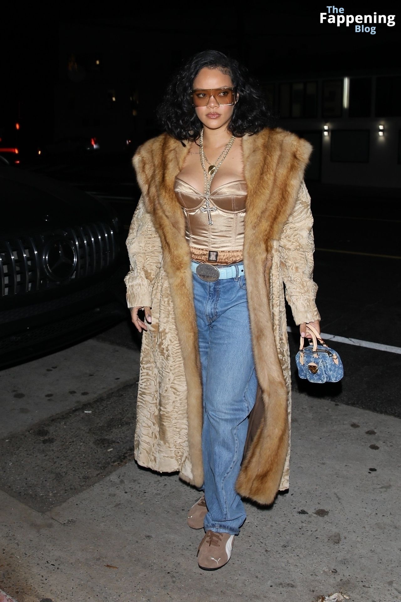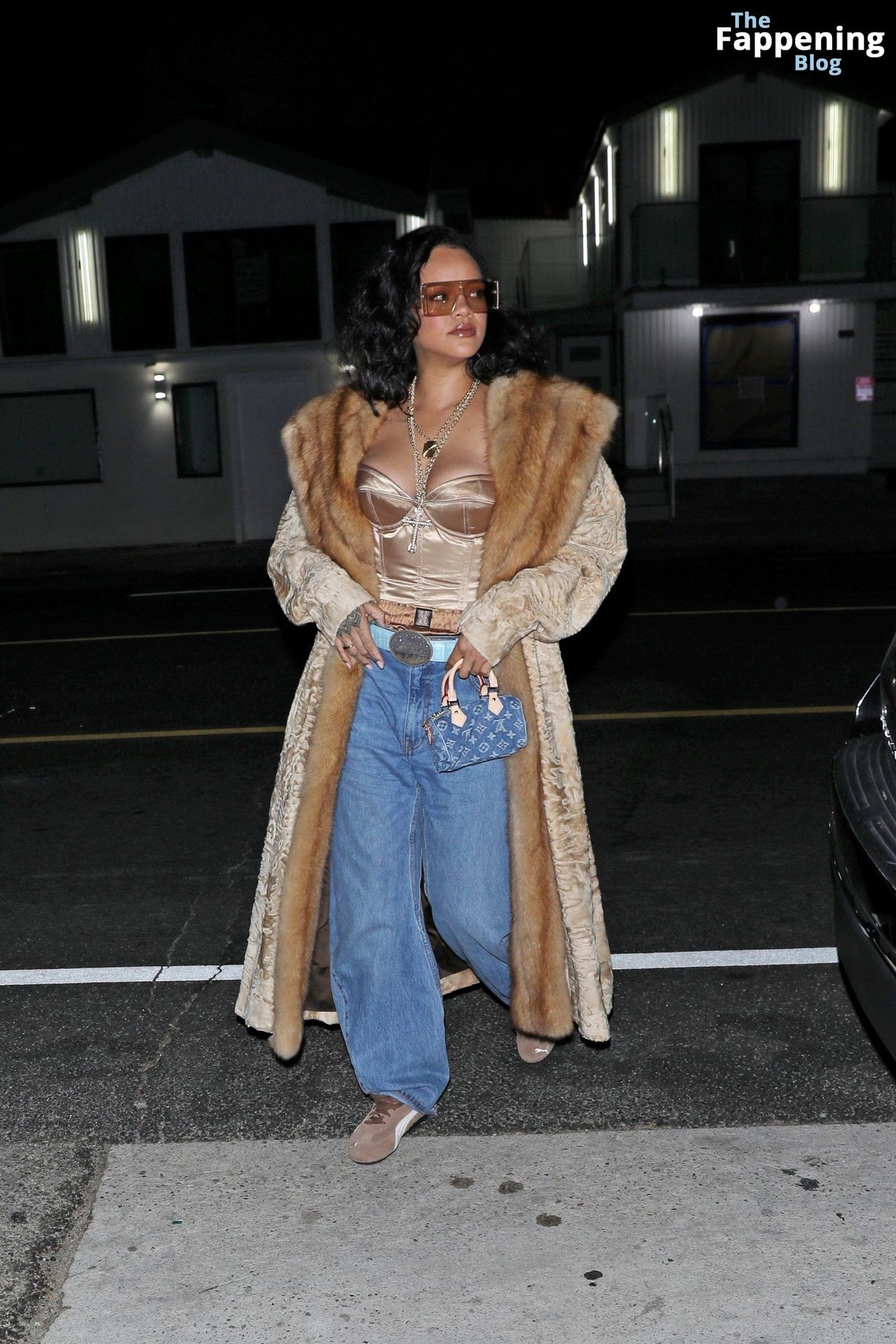 Rihanna éblouit chez Giorgio Baldi à Santa Monica, arrivant dans un look chic et superposé avec un somptueux manteau de fourrure posé sur un corset en satin ajusté et un jean taille haute au style décontracté.