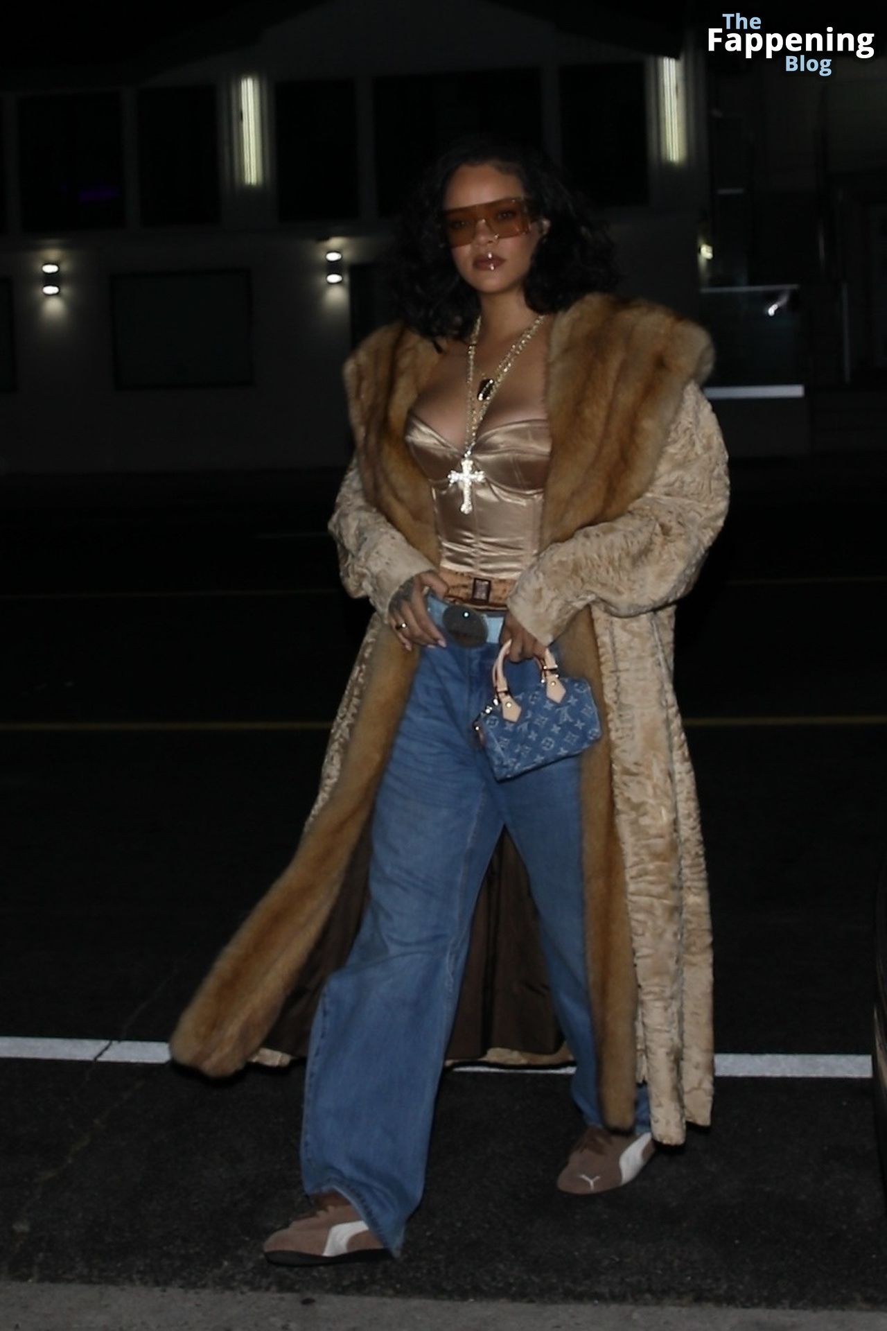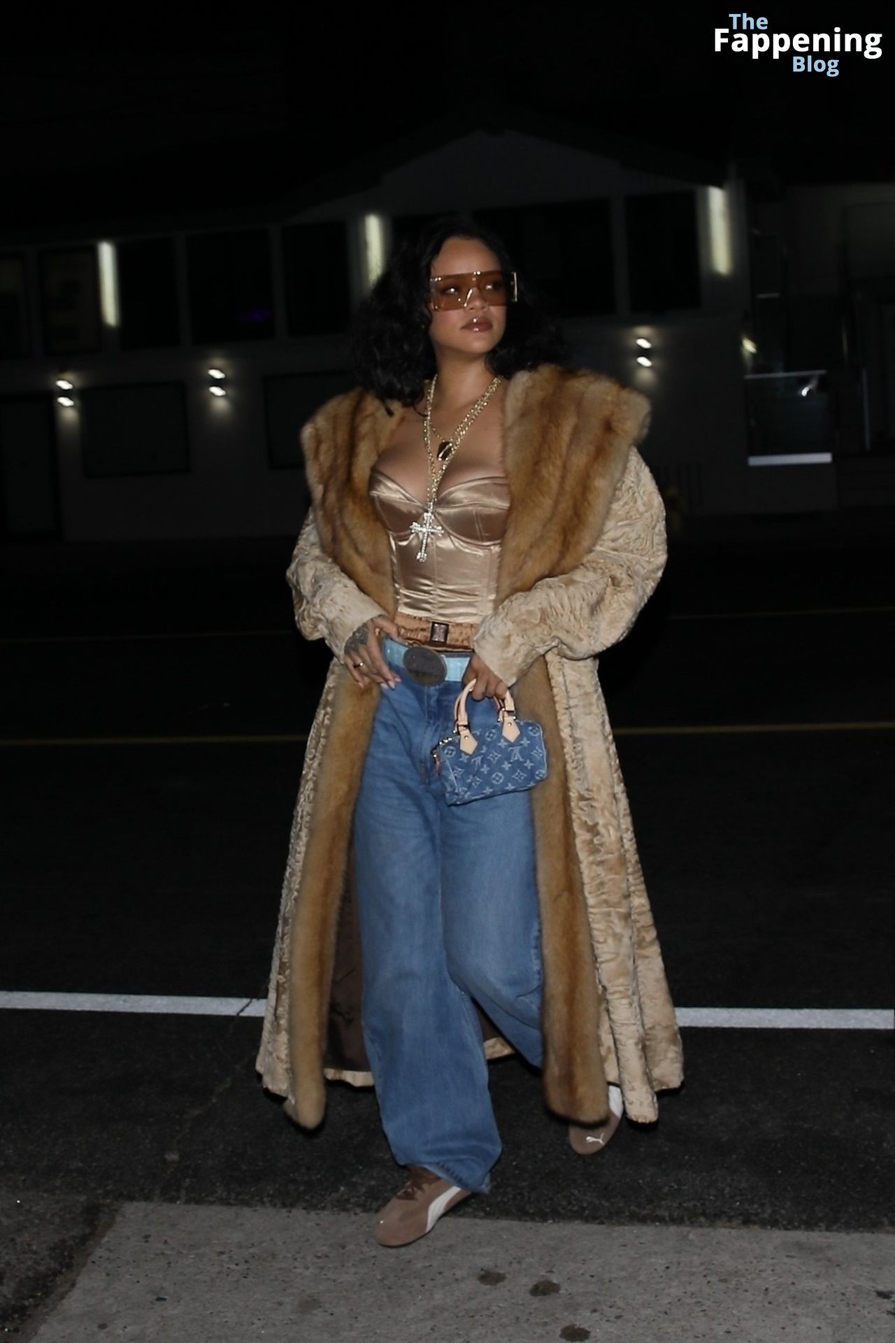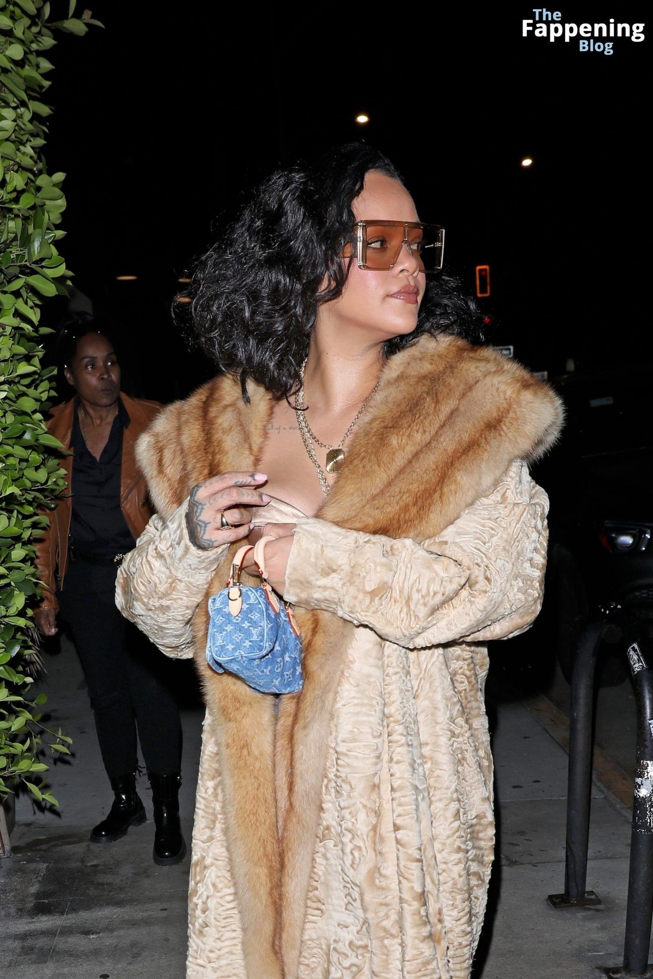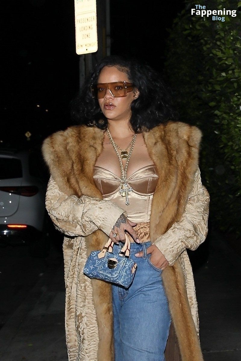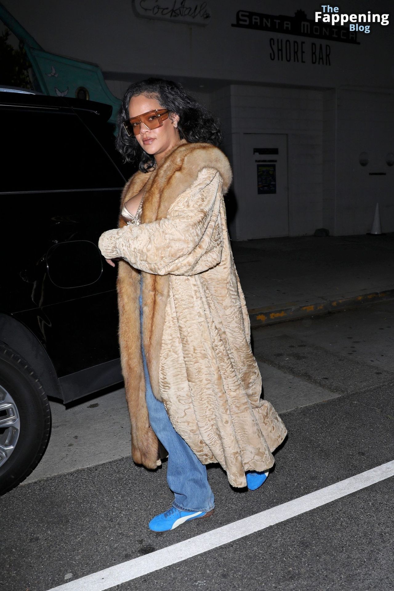Rihanna éblouit chez Giorgio Baldi à Santa Monica, arrivant dans un look chic et superposé avec un somptueux manteau de fourrure posé sur un corset en satin ajusté et un jean taille haute au style décontracté.