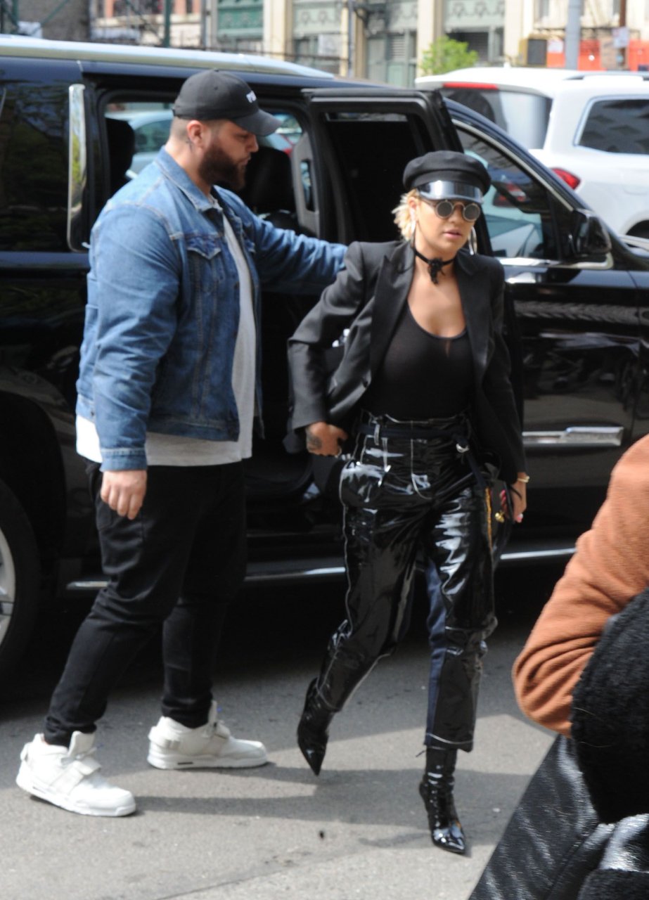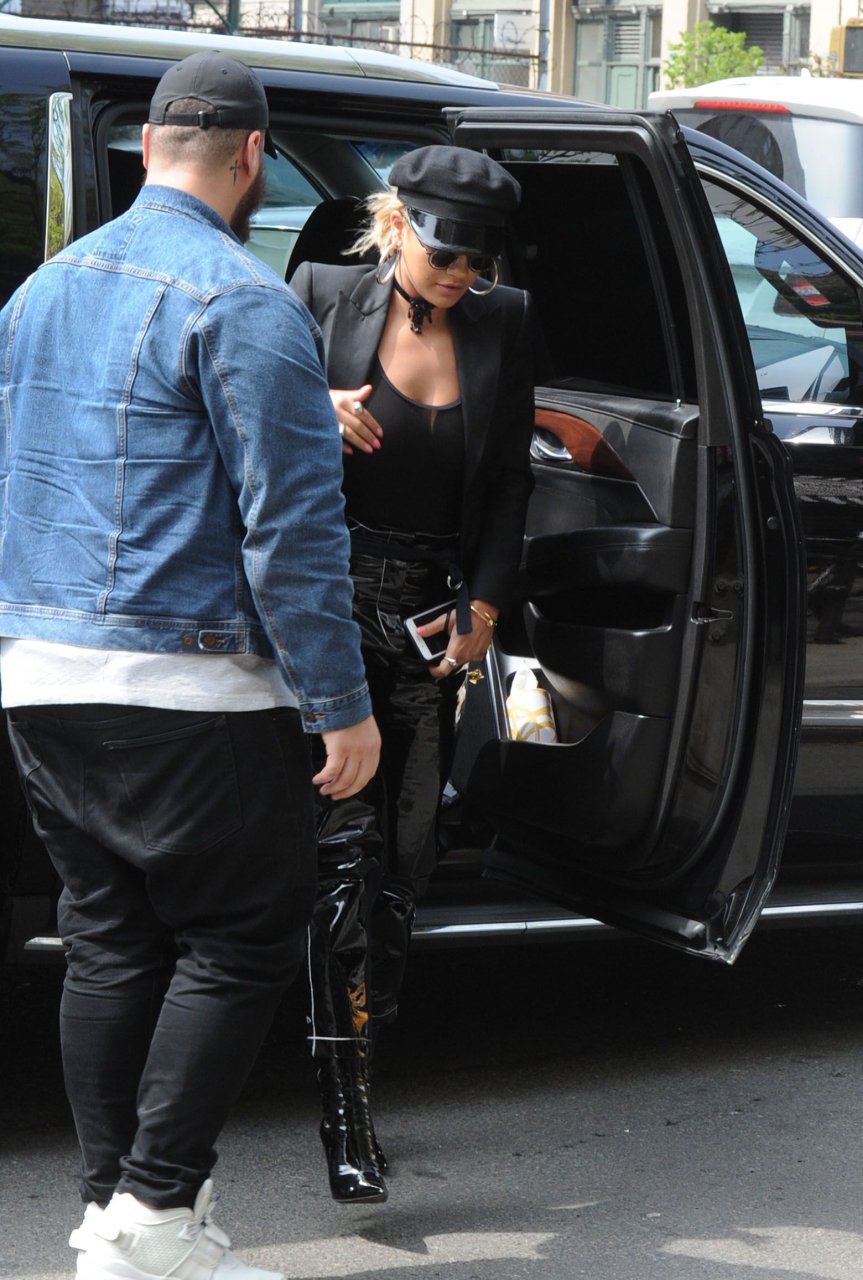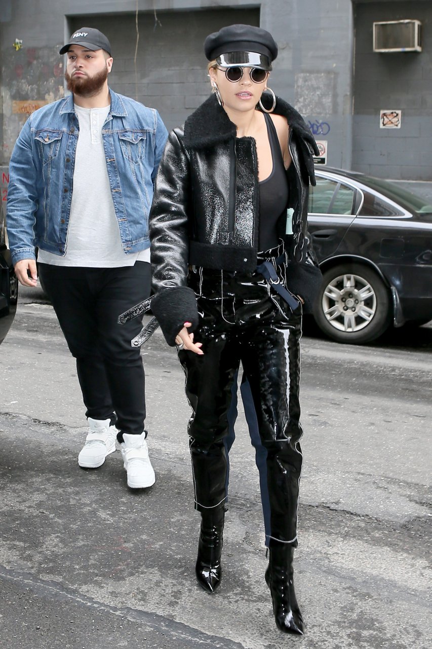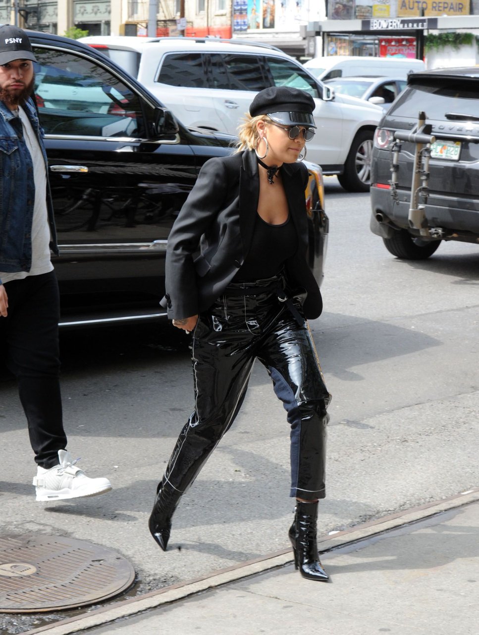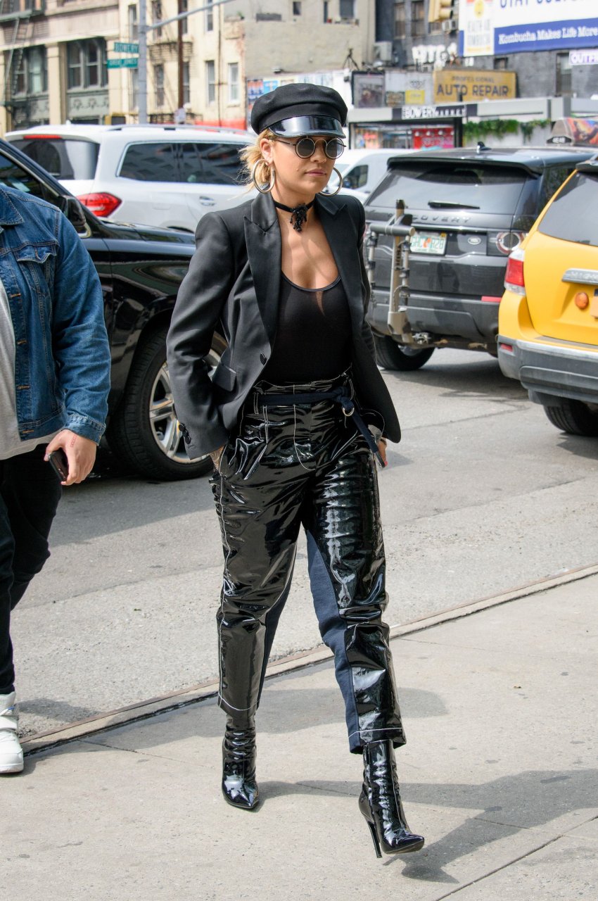Rita Ora sans soutien-gorge porte un haut noir transparent à New York, 27/04/2017. Rita Ora est une chanteuse et actrice britannique (Cinquante nuances plus claires, 2018). Âge – 26 ans.