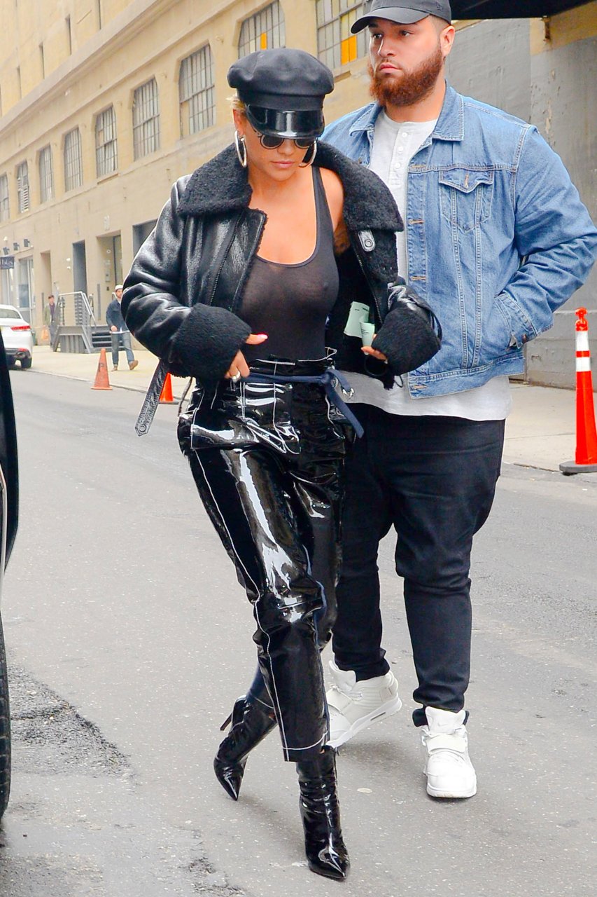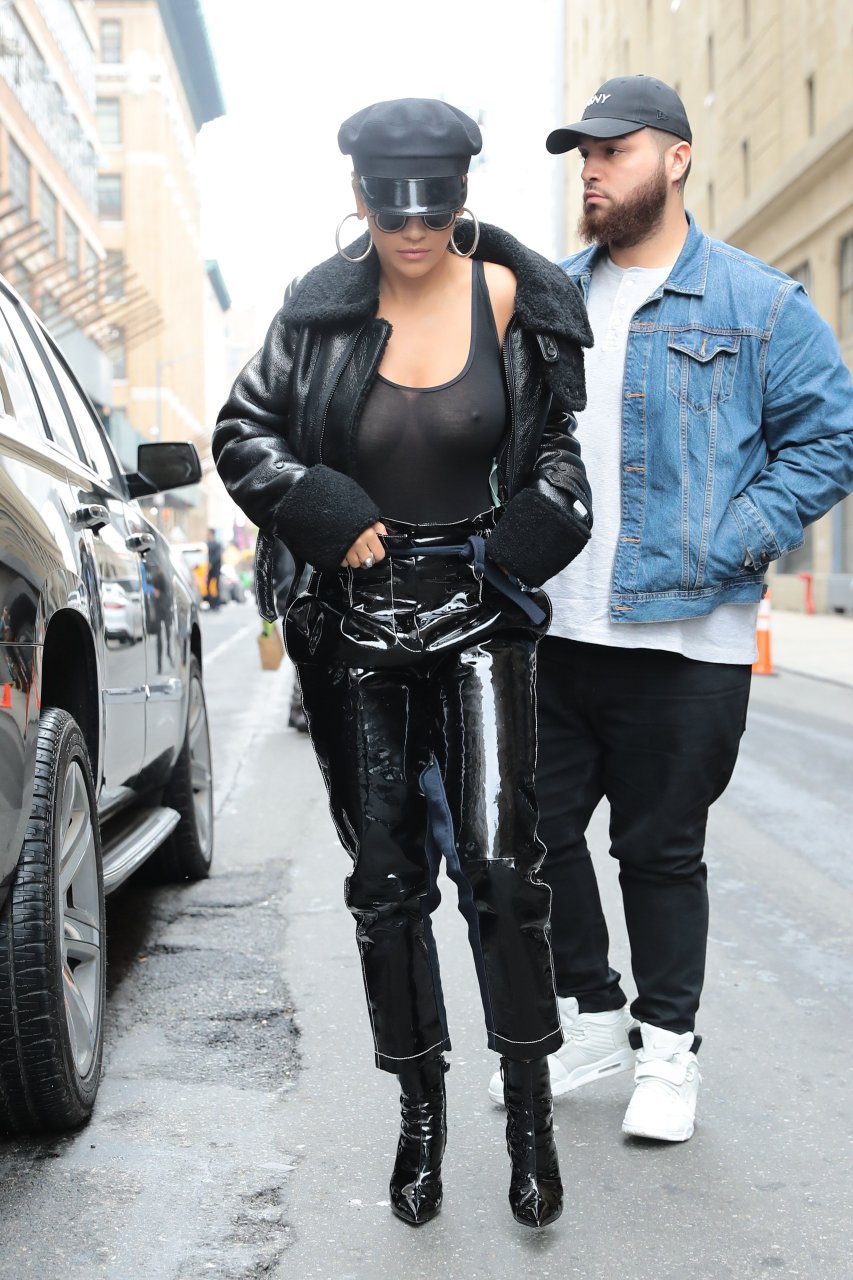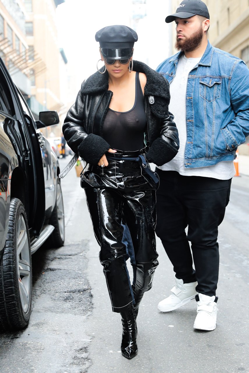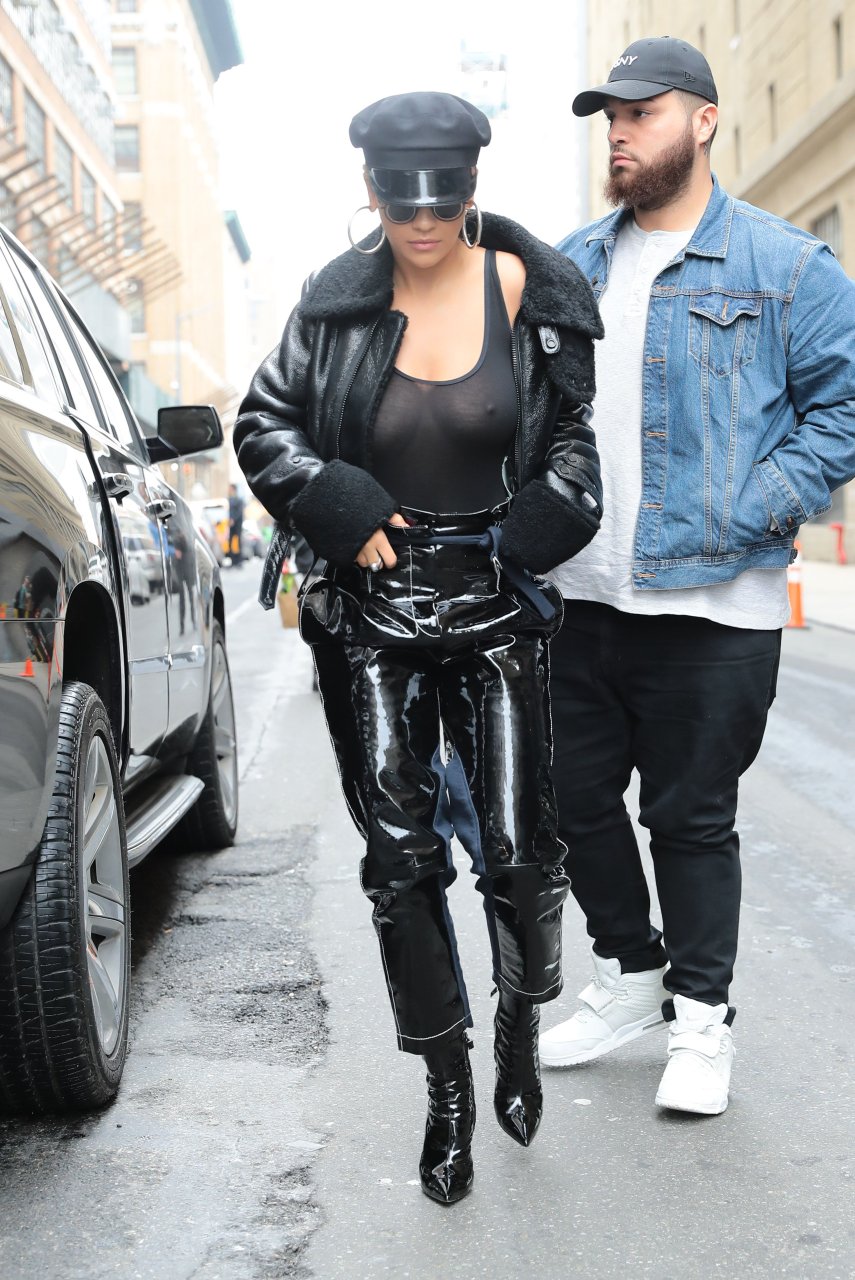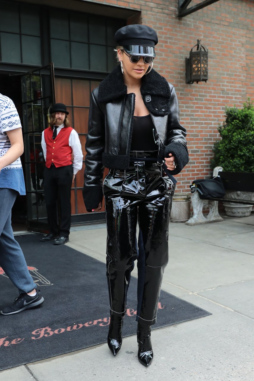 Rita Ora sans soutien-gorge porte un haut noir transparent à New York, 27/04/2017. Rita Ora est une chanteuse et actrice britannique (Cinquante nuances plus claires, 2018). Âge – 26 ans.
