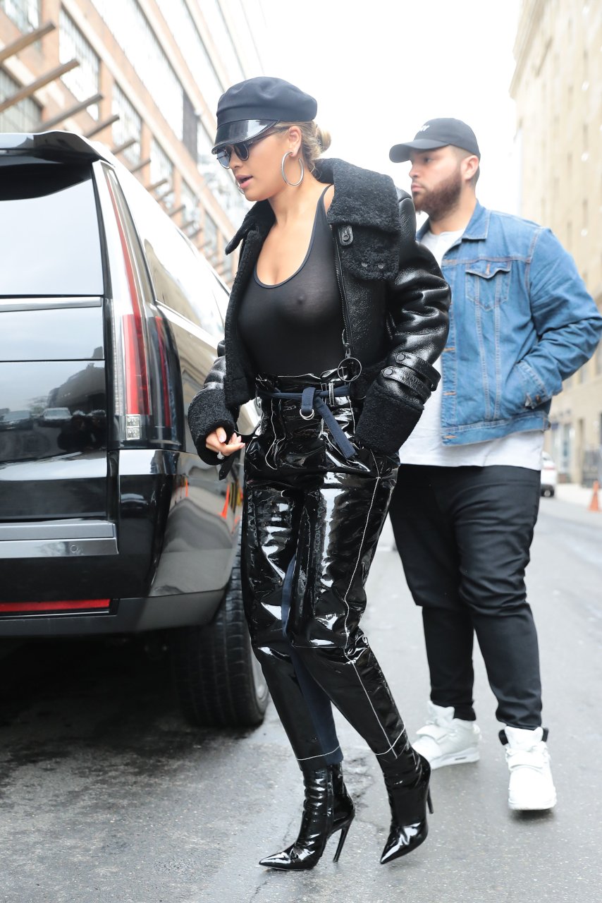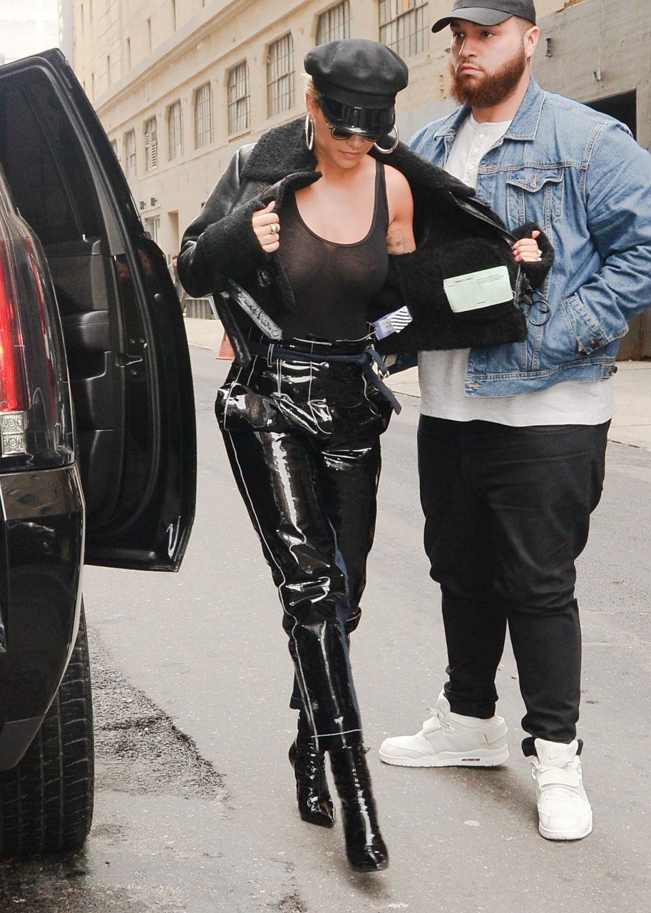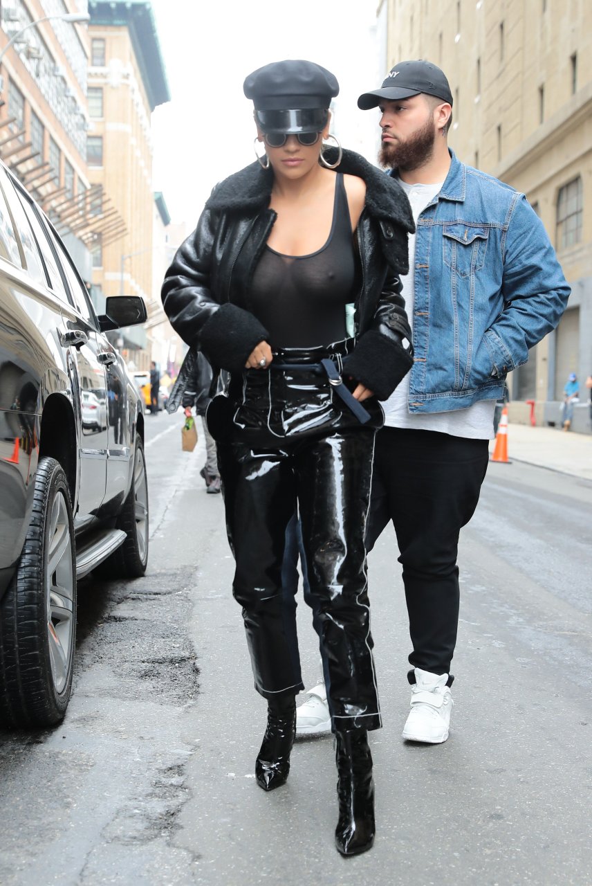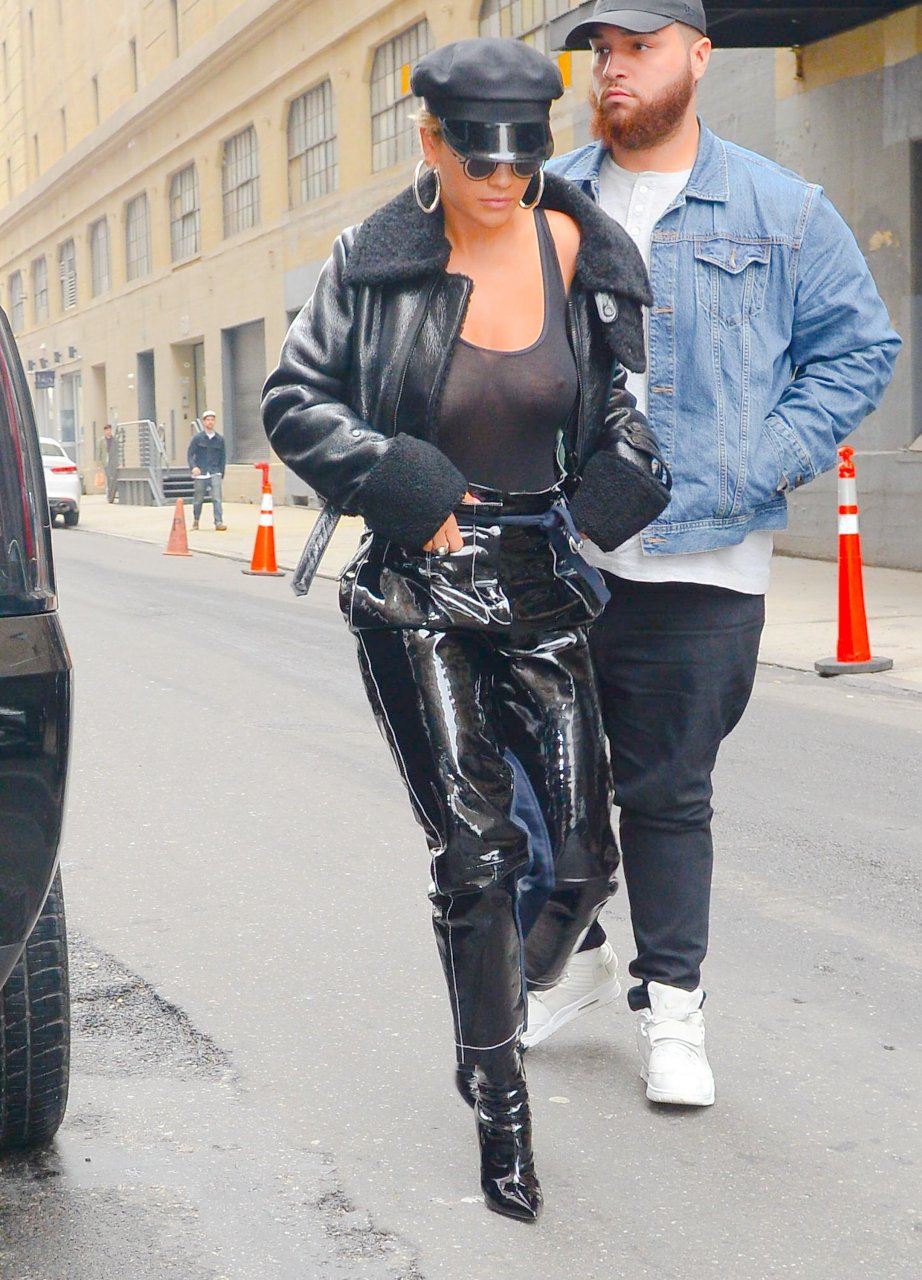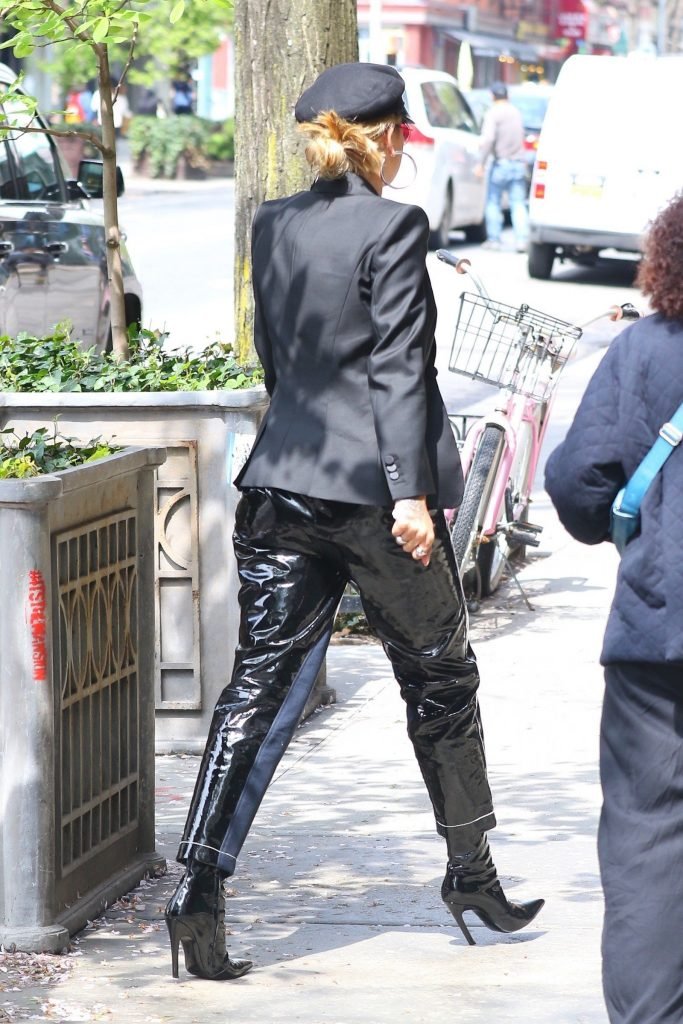 Rita Ora sans soutien-gorge porte un haut noir transparent à New York, 27/04/2017. Rita Ora est une chanteuse et actrice britannique (Cinquante nuances plus claires, 2018). Âge – 26 ans.
