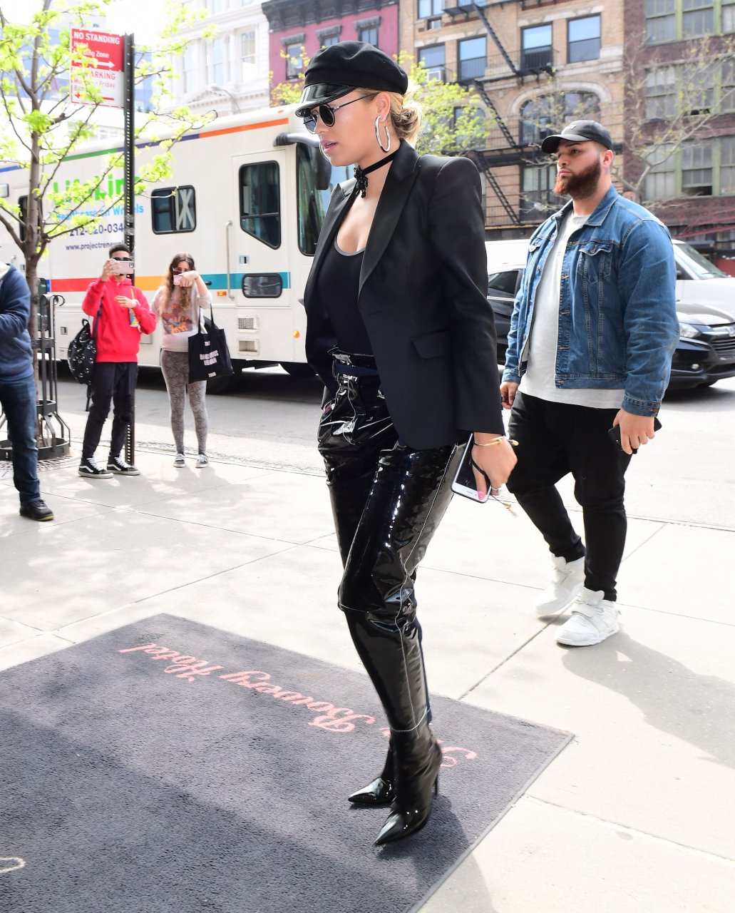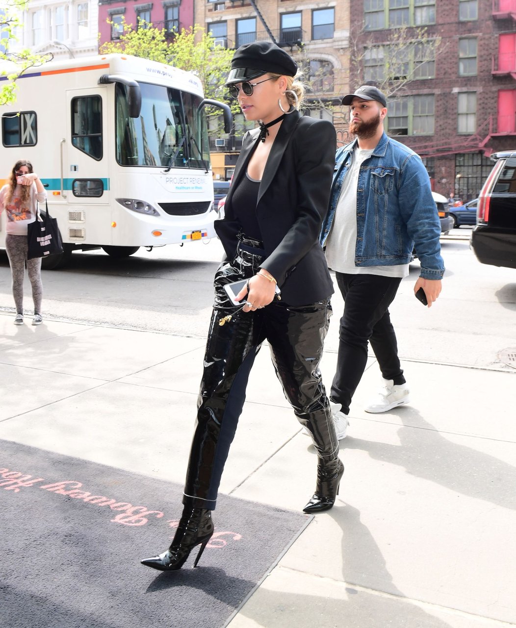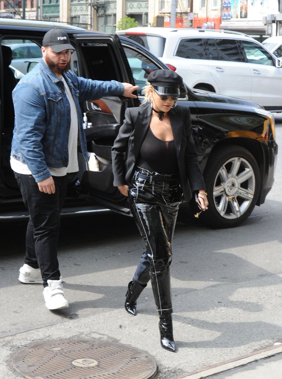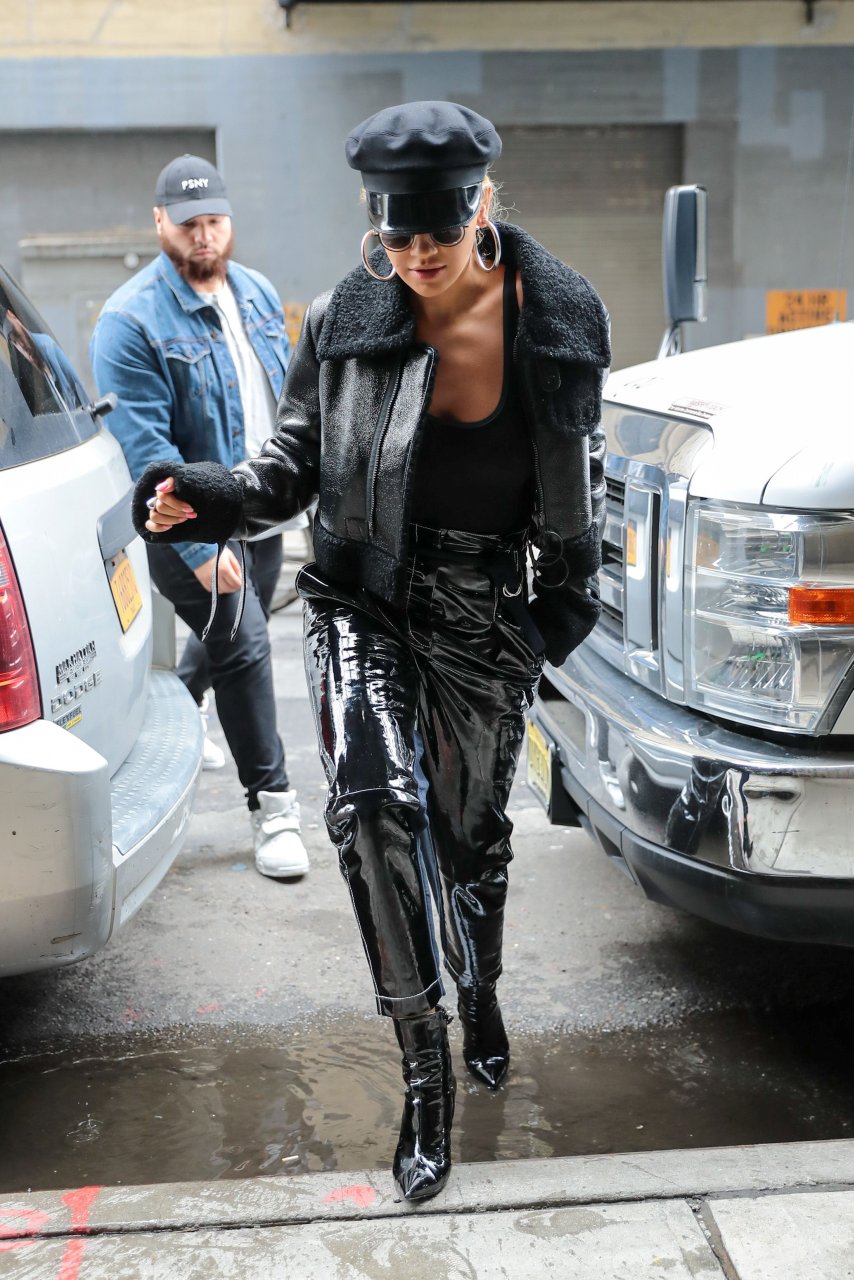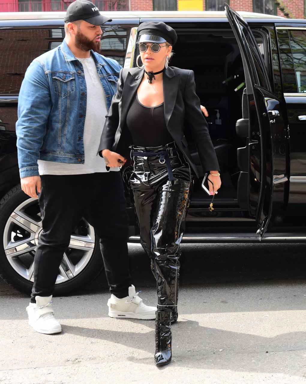 Rita Ora sans soutien-gorge porte un haut noir transparent à New York, 27/04/2017. Rita Ora est une chanteuse et actrice britannique (Cinquante nuances plus claires, 2018). Âge – 26 ans.