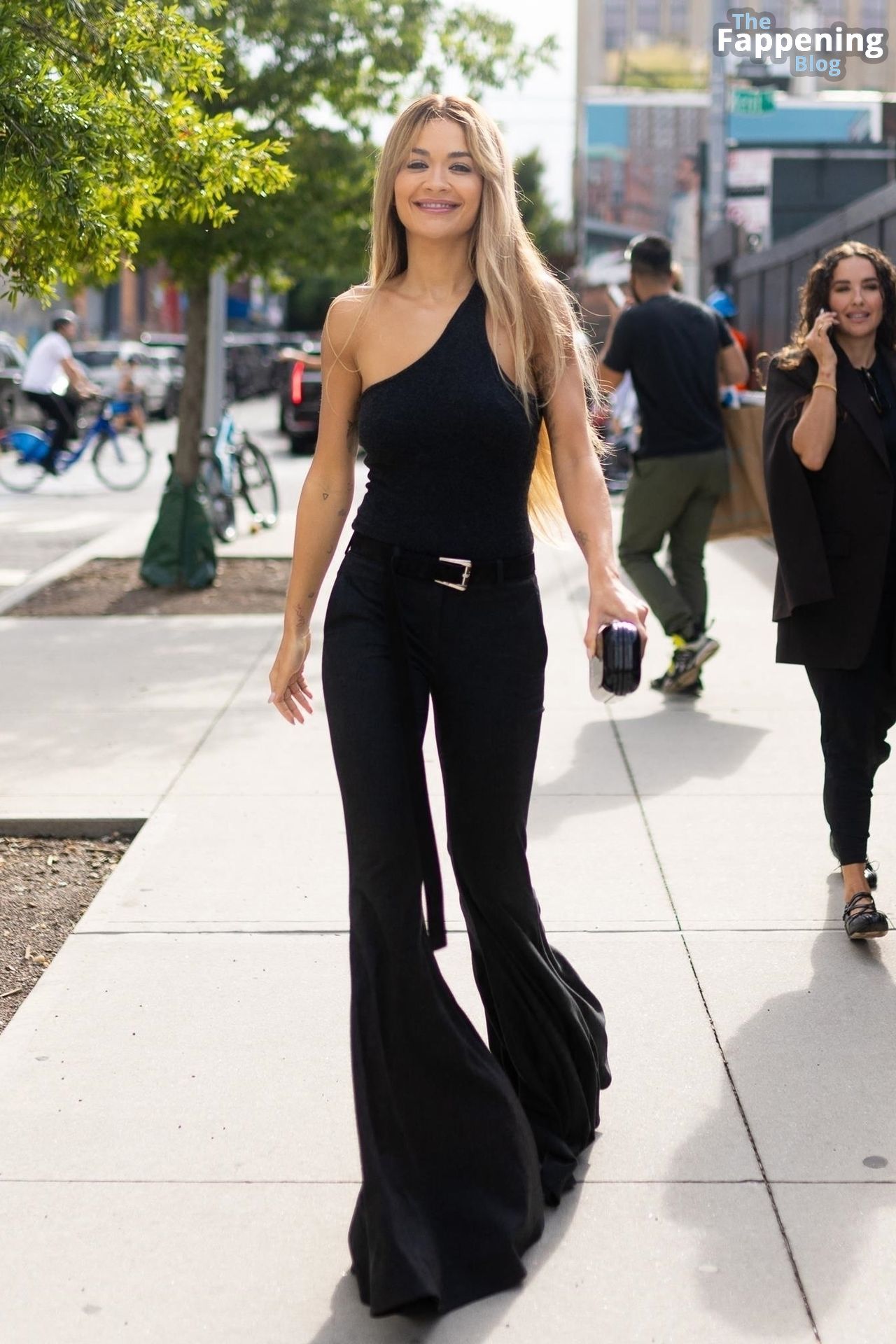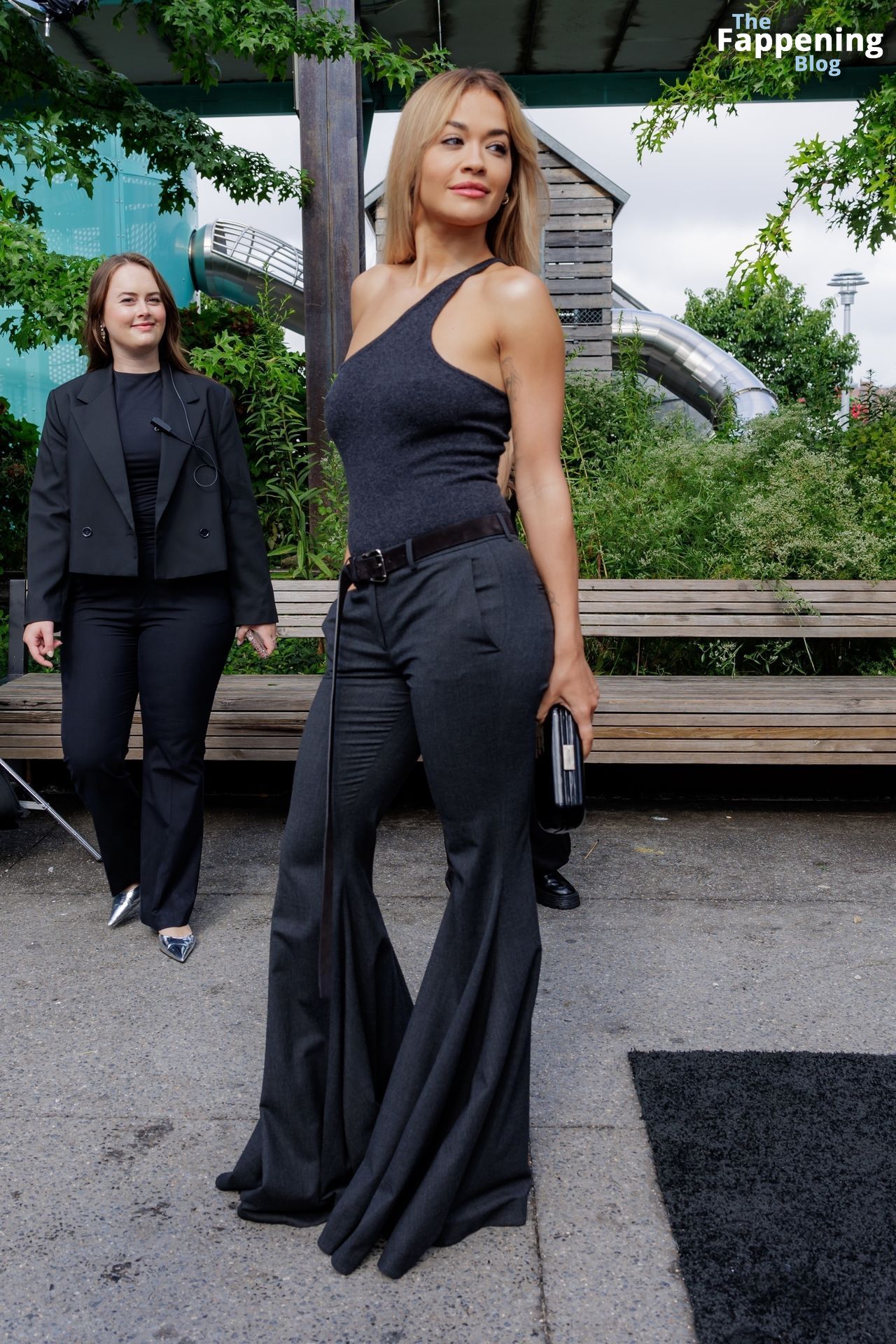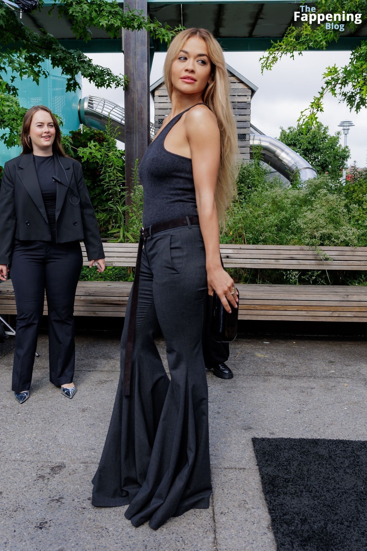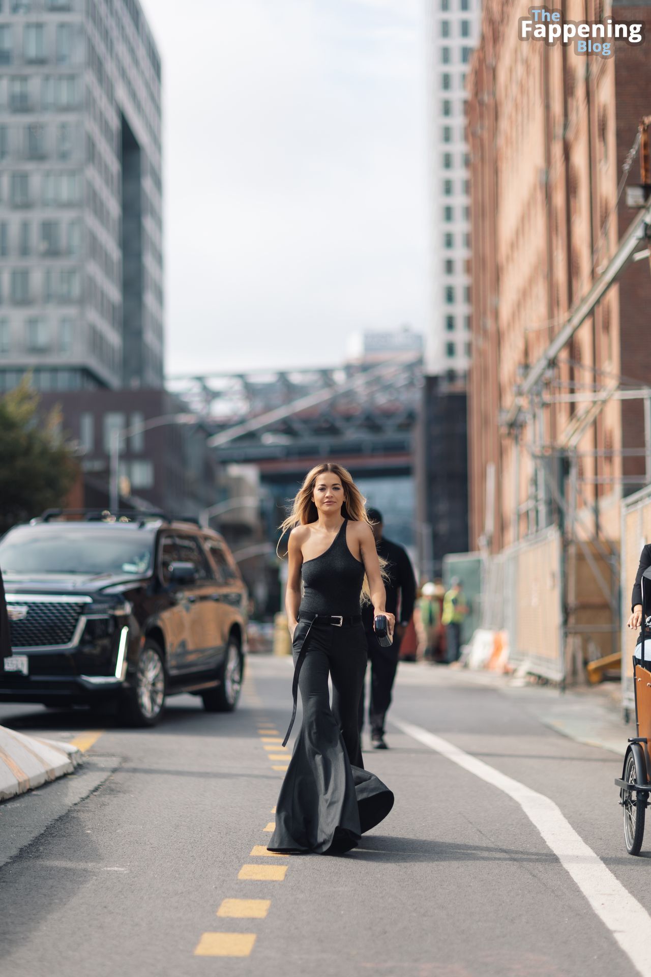 Rita Ora assiste au défilé Michael Kors pendant la Semaine de la mode de New York au Domino Park à Brooklyn, New York, le 11/09/2023. La chanteuse éblouit dans un body scintillant et des pattes d’éléphant lors de l’événement.