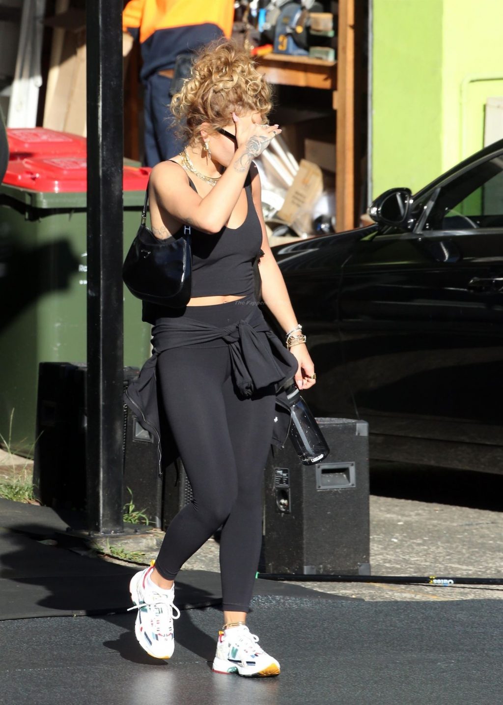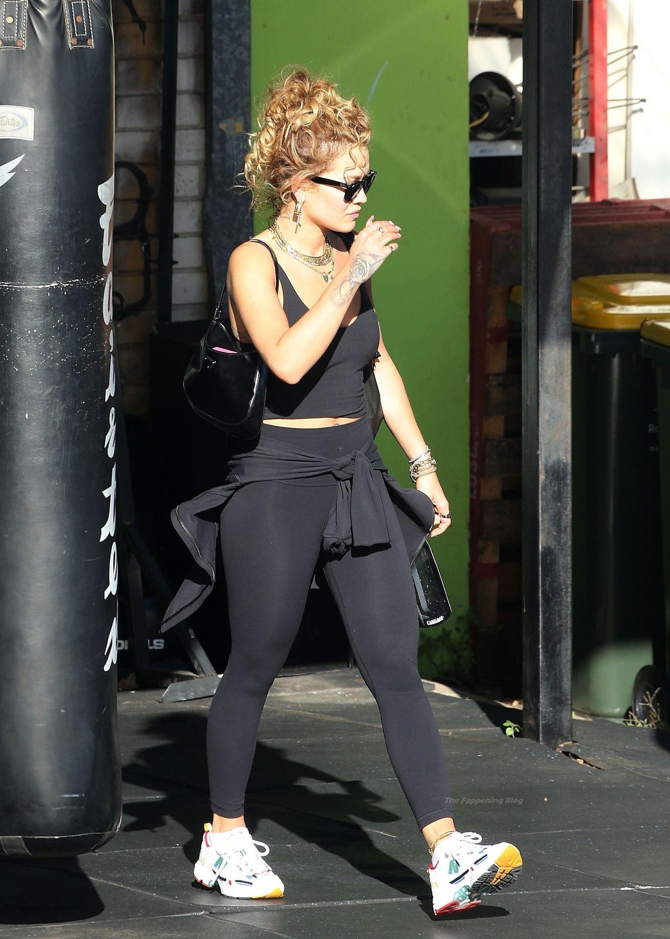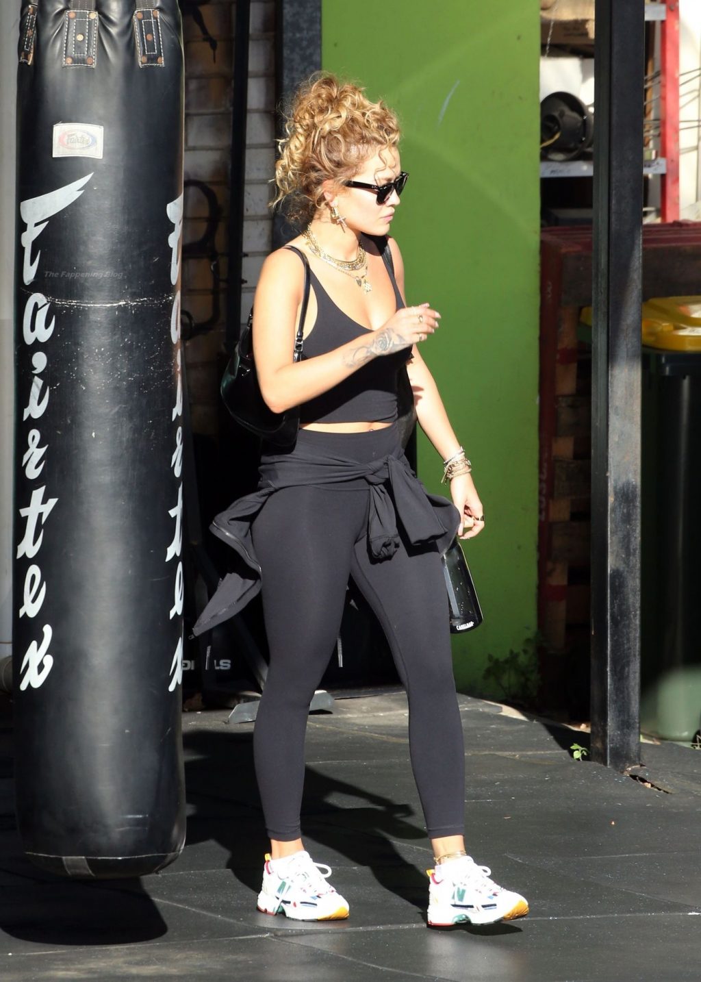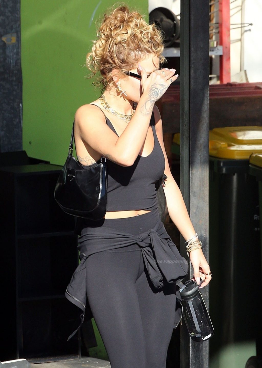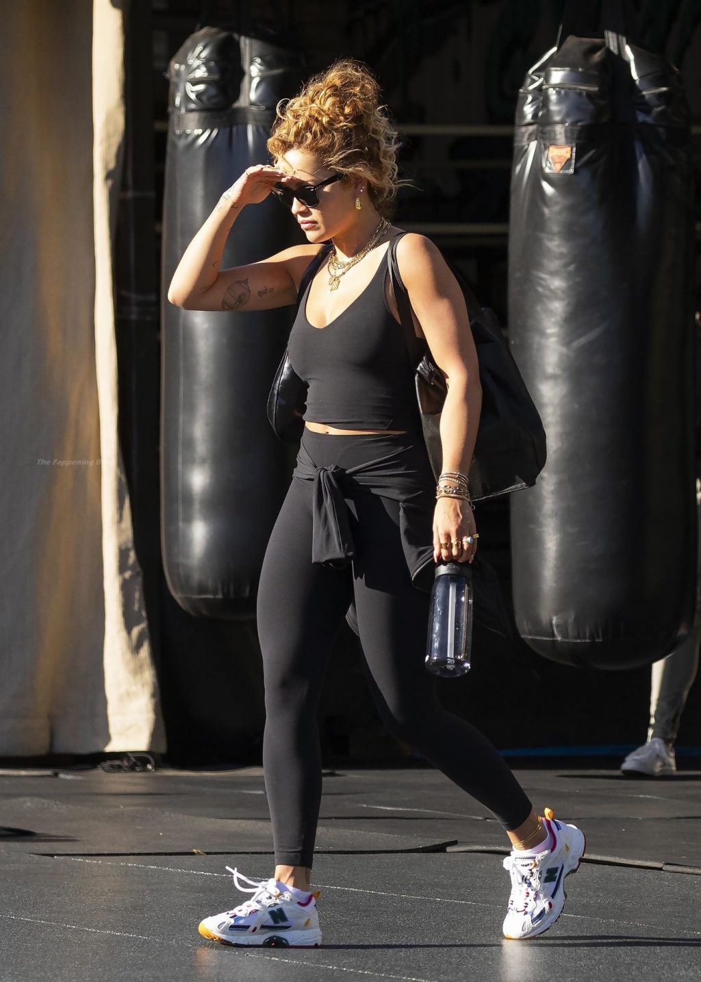 La chanteuse Rita Ora est vue en train de quitter sa salle de sport à Kensington et est éblouie par le soleil brûlant, alors qu’elle part en tenue d’exercice, 12/04/2021.