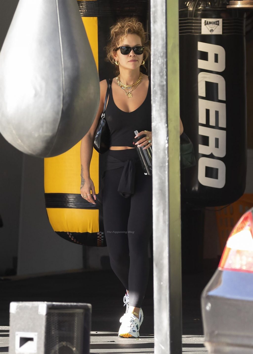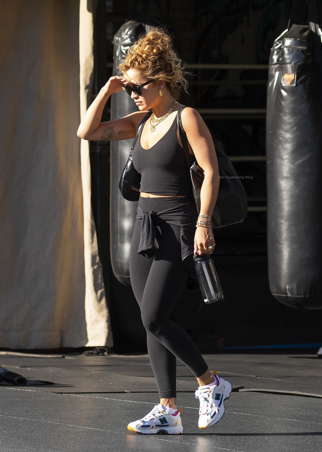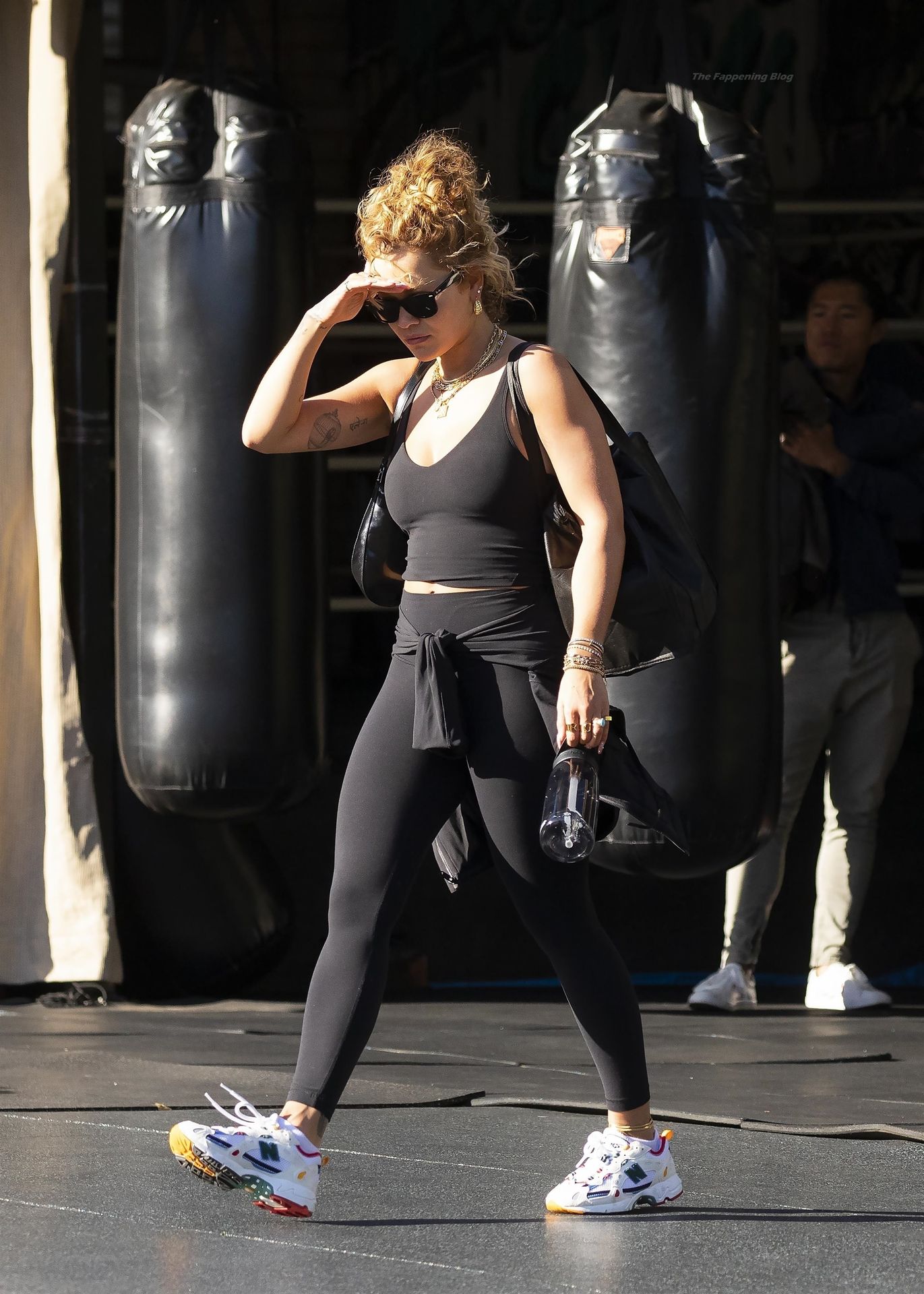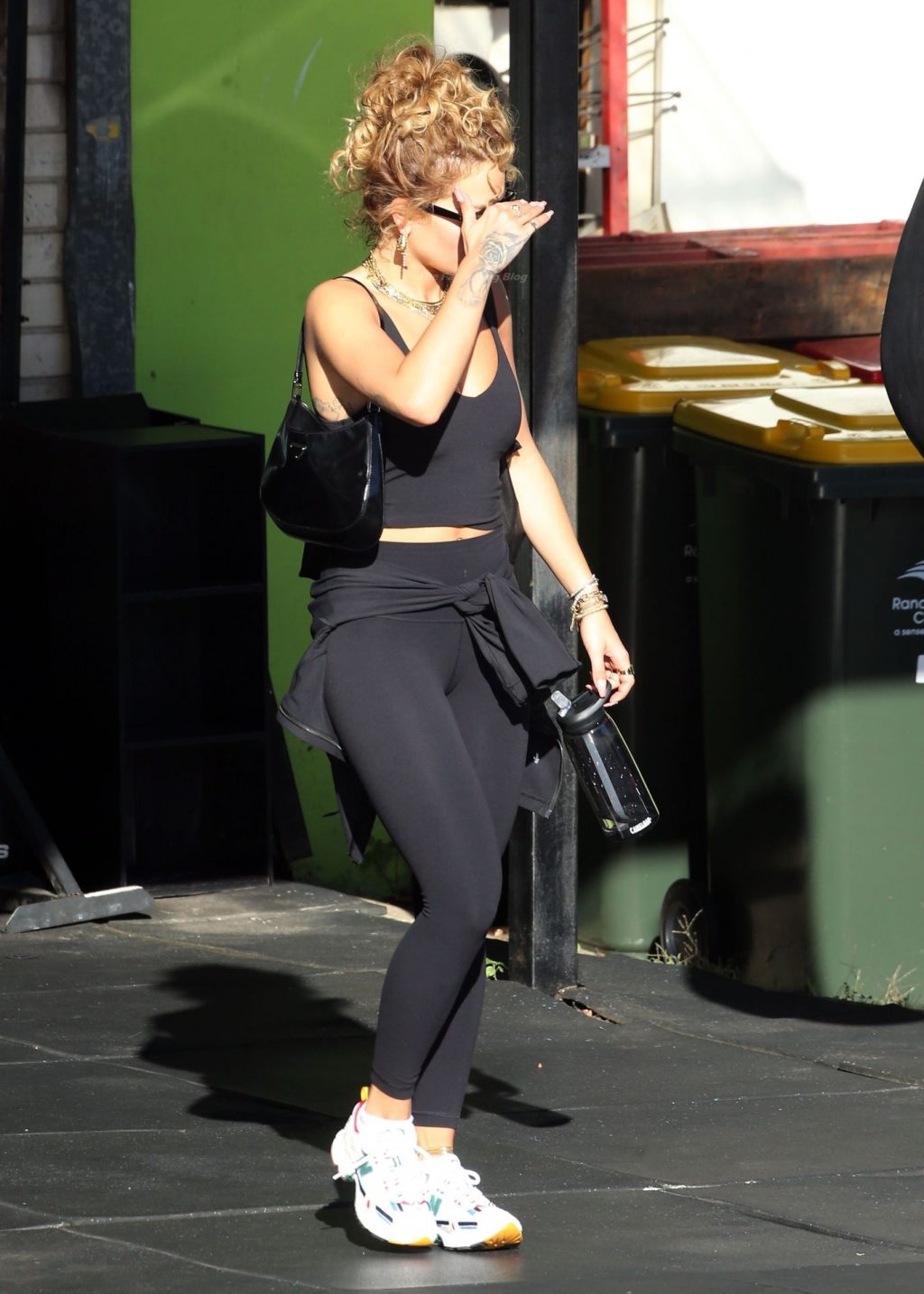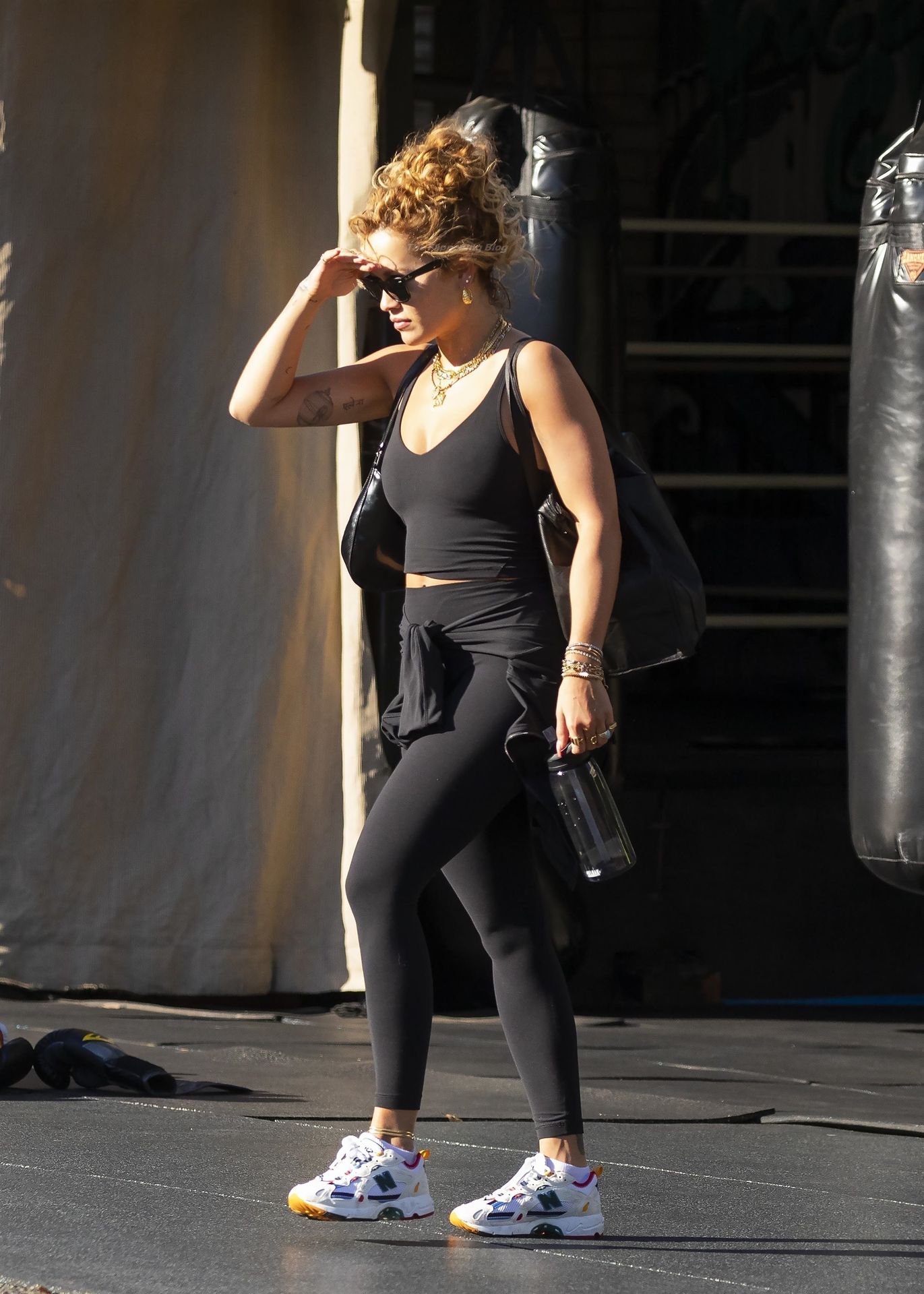 La chanteuse Rita Ora est vue en train de quitter sa salle de sport à Kensington et est éblouie par le soleil brûlant, alors qu’elle part en tenue d’exercice, 12/04/2021.