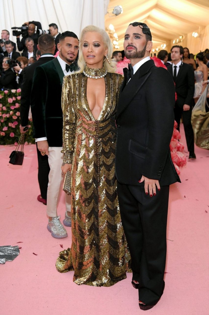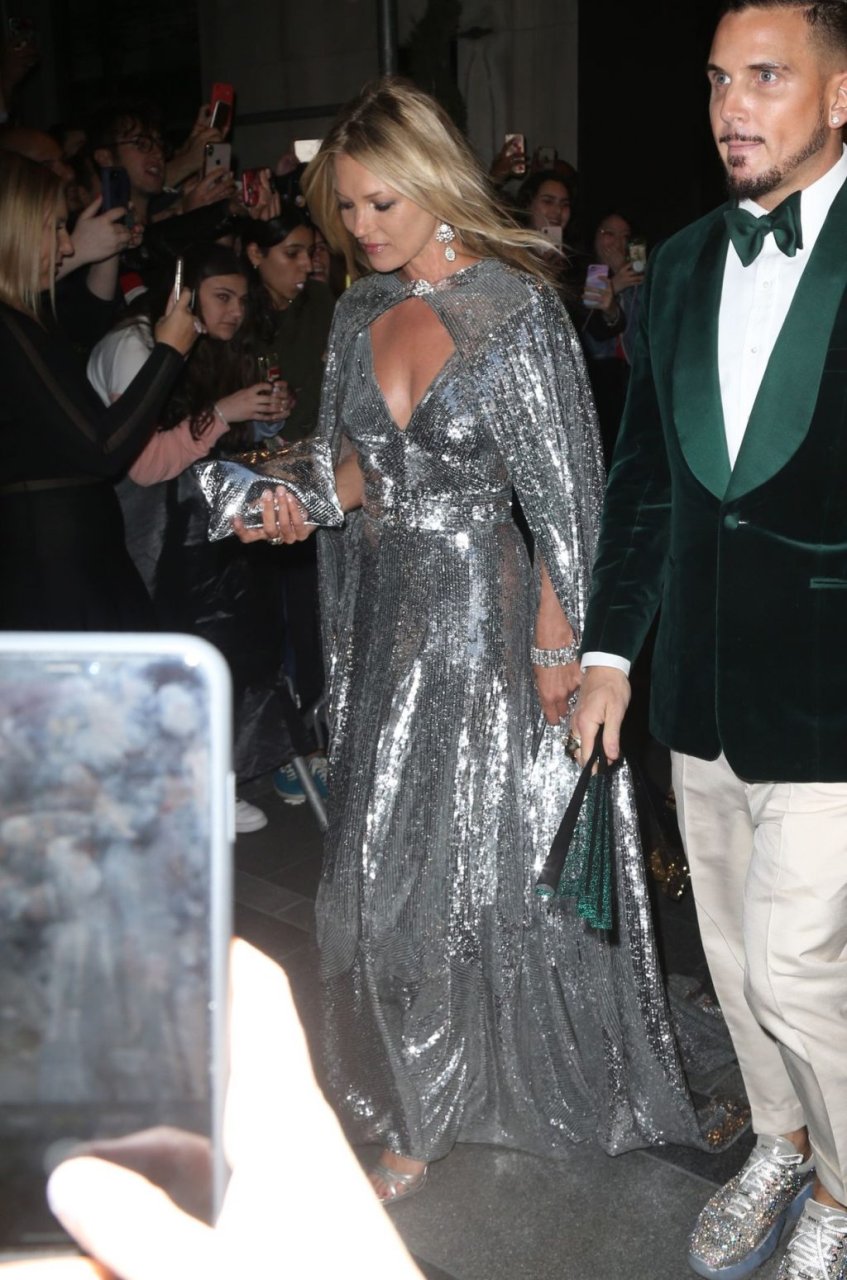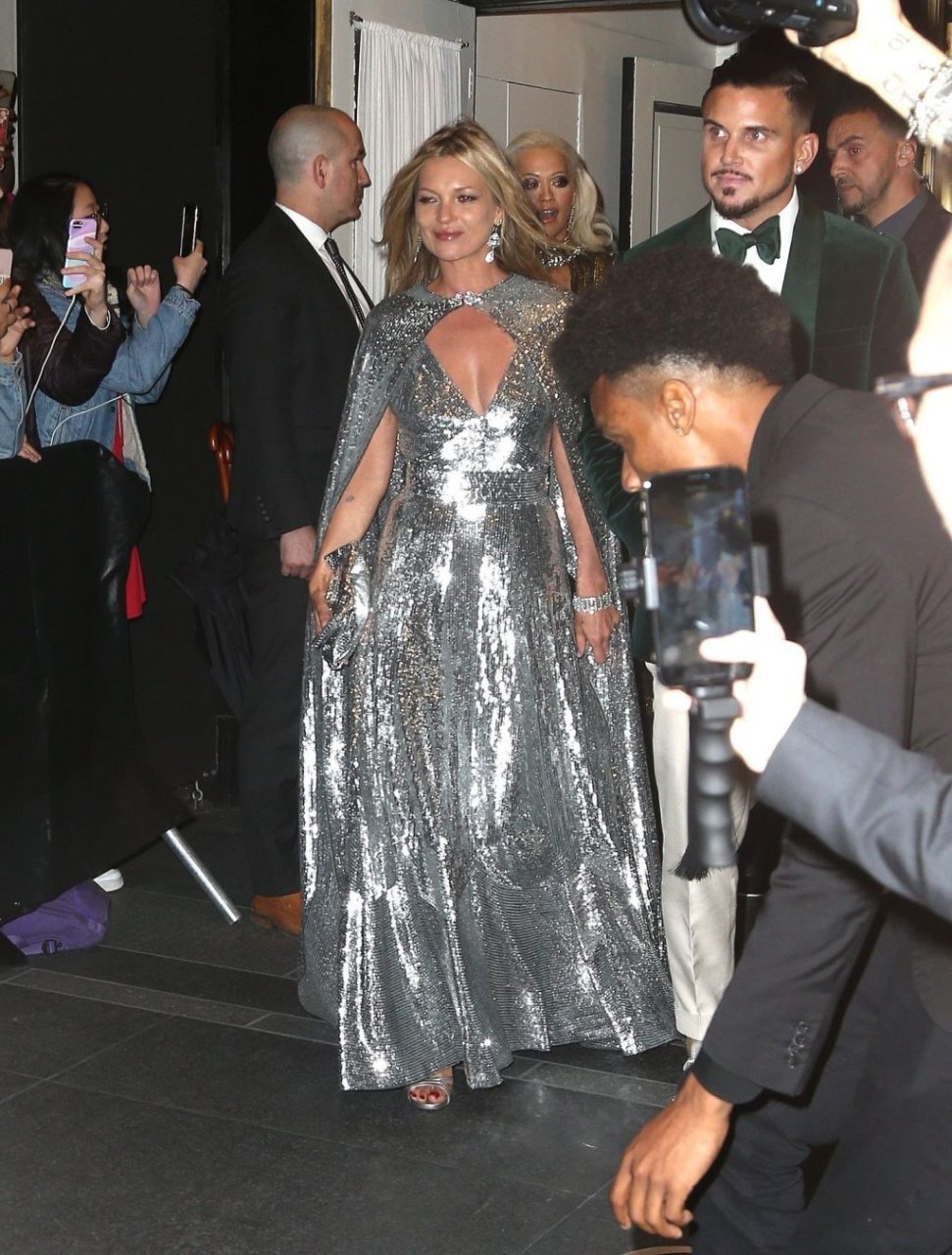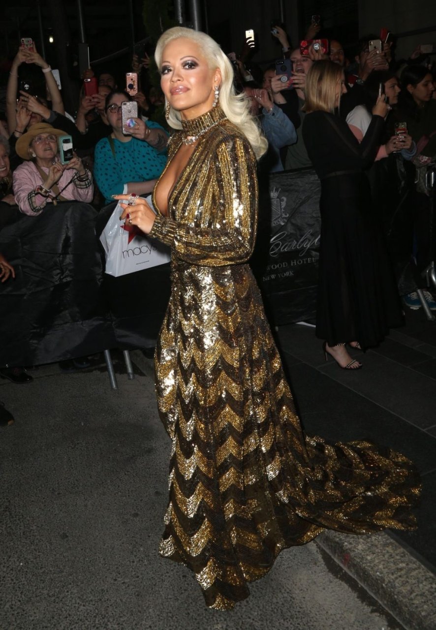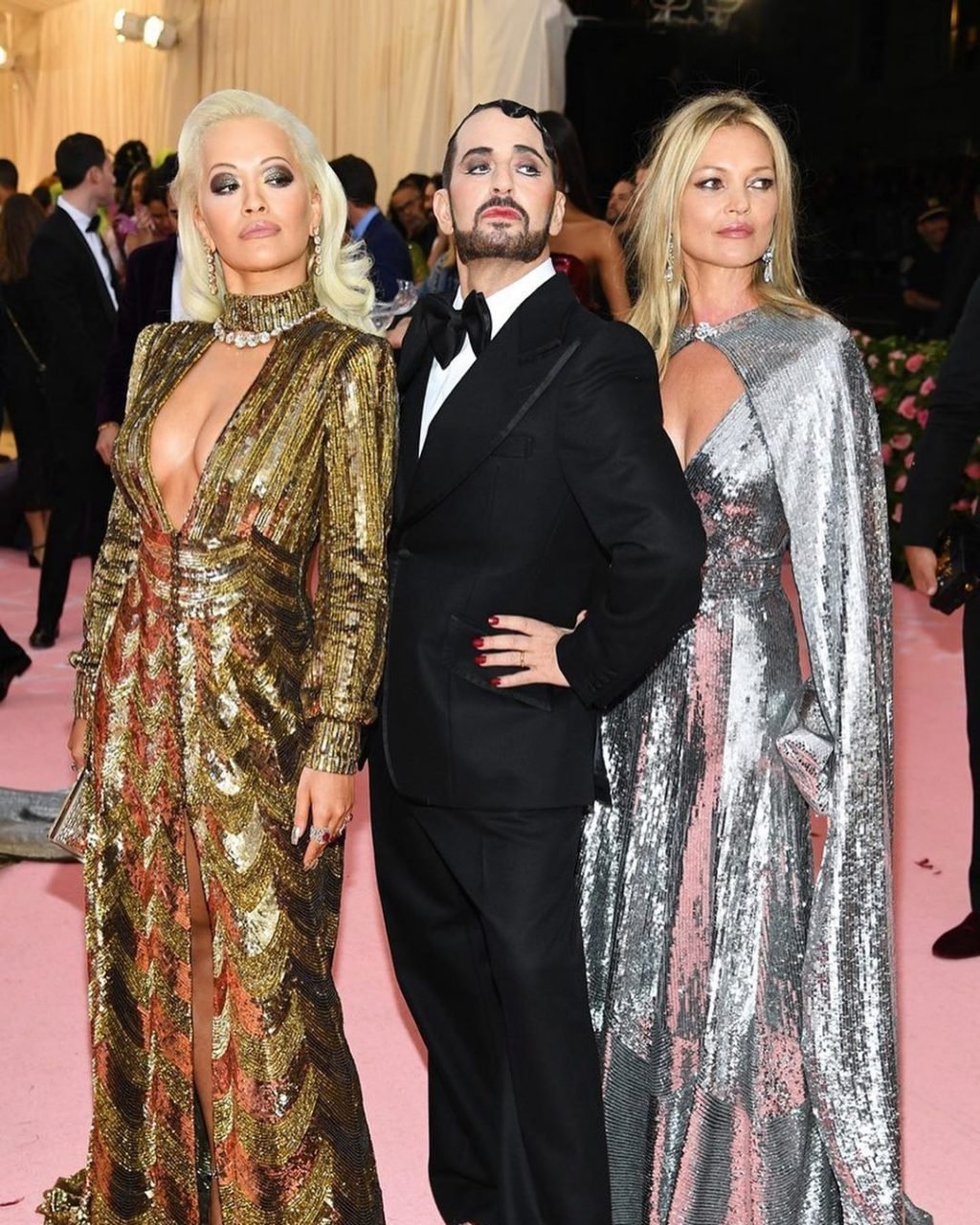 La chanteuse Rita Ora et le mannequin Kate Moss quittent l’hôtel Carlyle pour le Met Gala 2019 à New York, le 06/05/2019. Lors de l’événement, les stars sont apparues ensemble dans des robes dorées et argentées.