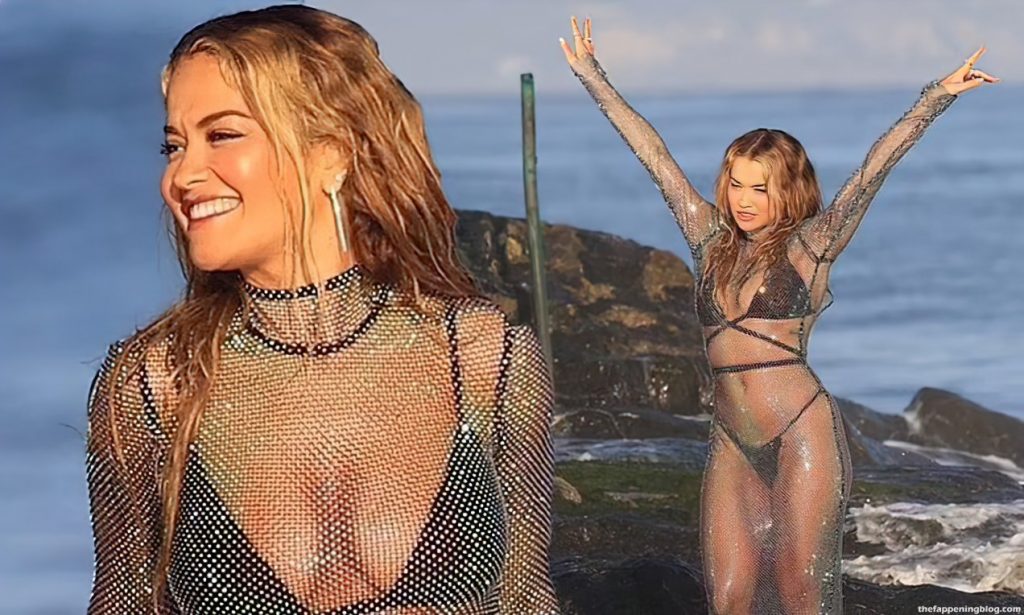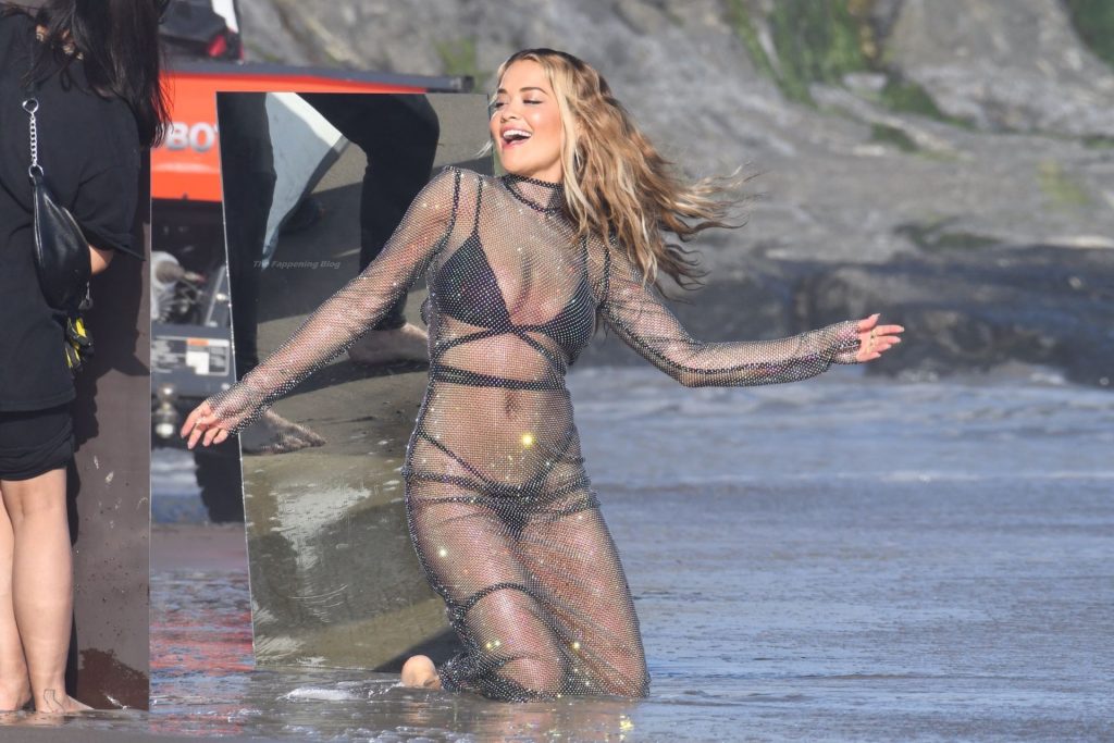 La chanteuse Rita Ora est impeccable dans une robe transparente lors de l’enregistrement de son nouveau clip vidéo sur la plage de Malibu, 27/06/2021.