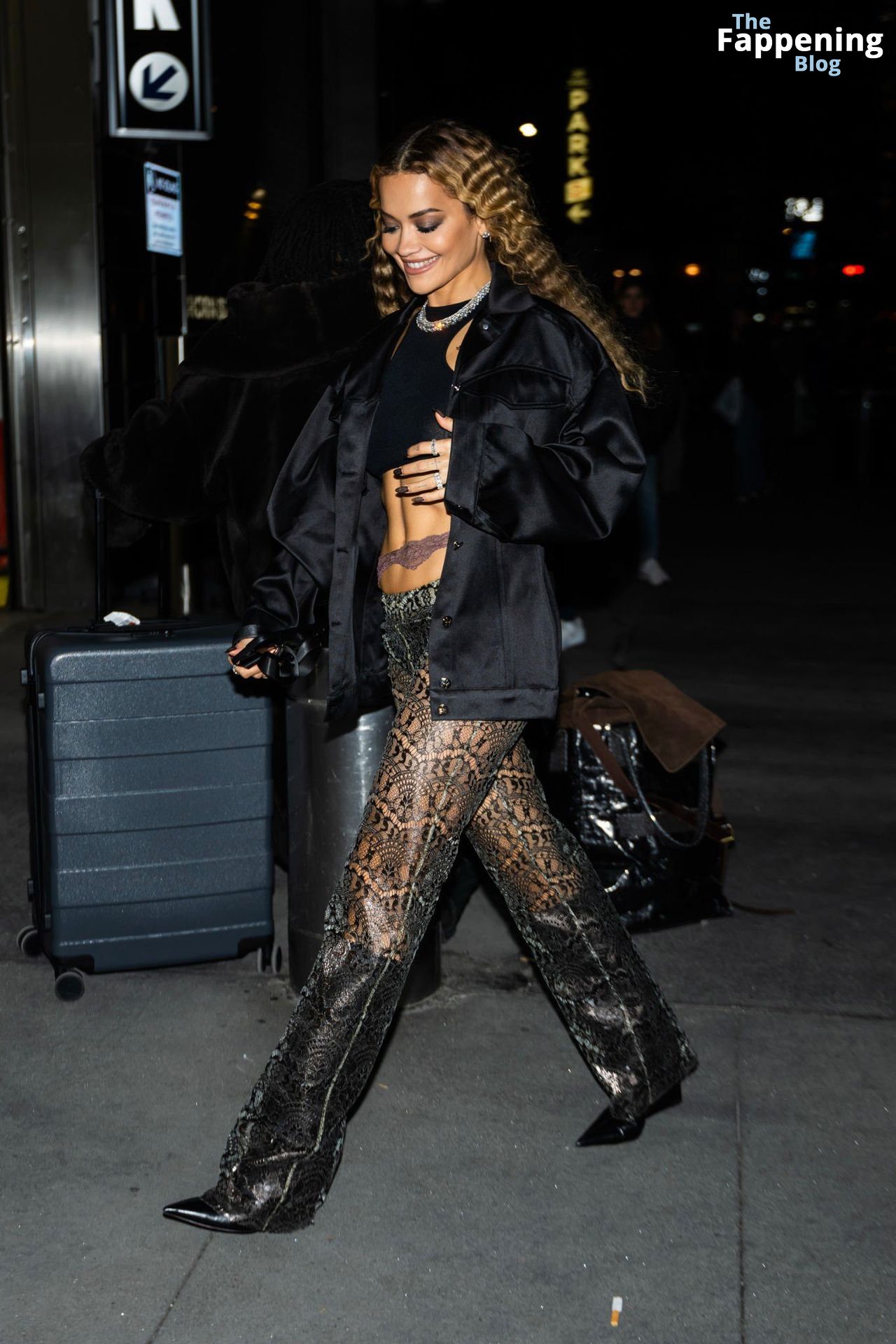 Rita Ora shows off her gorgeous ass and braless boobs wearing thong panties and see-through black top during a night out in New York.
