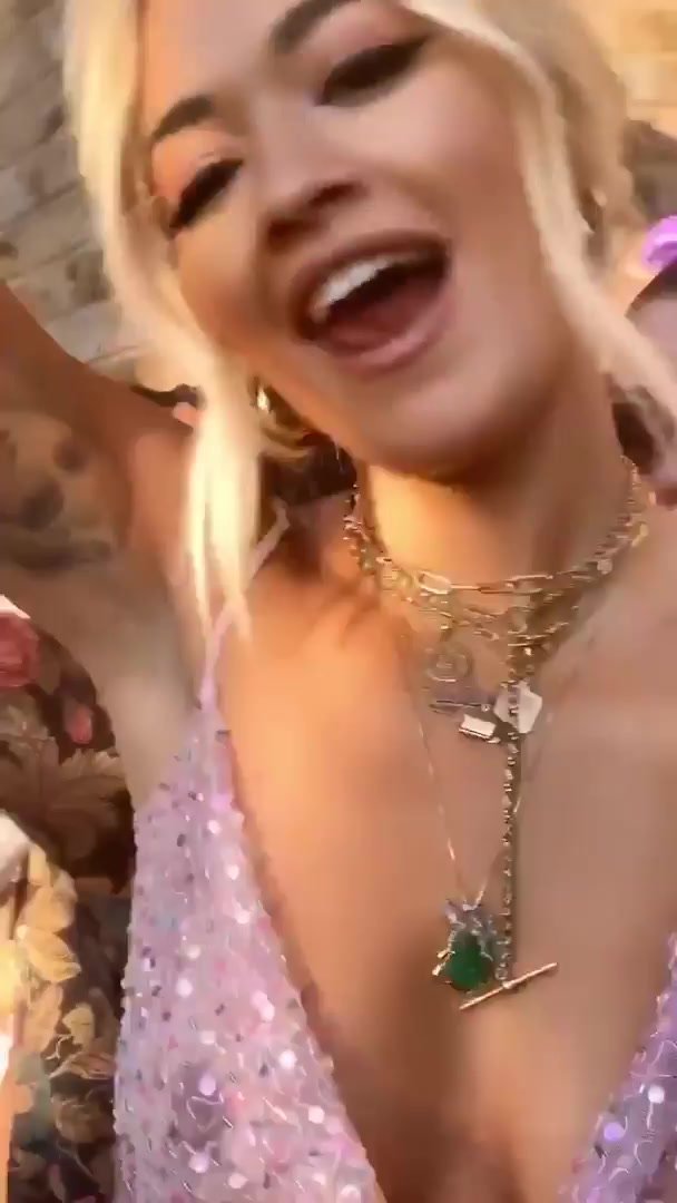 Découvrez plus de photos légèrement nues et de gifs de Rita Ora lors de Carni 2019 – Instagram, 27/08/2019. La chanteuse a montré ses seins, dansant dans une robe transparente.
