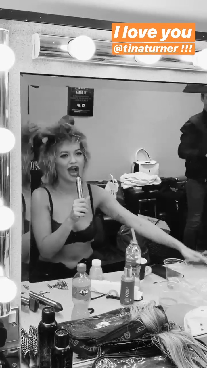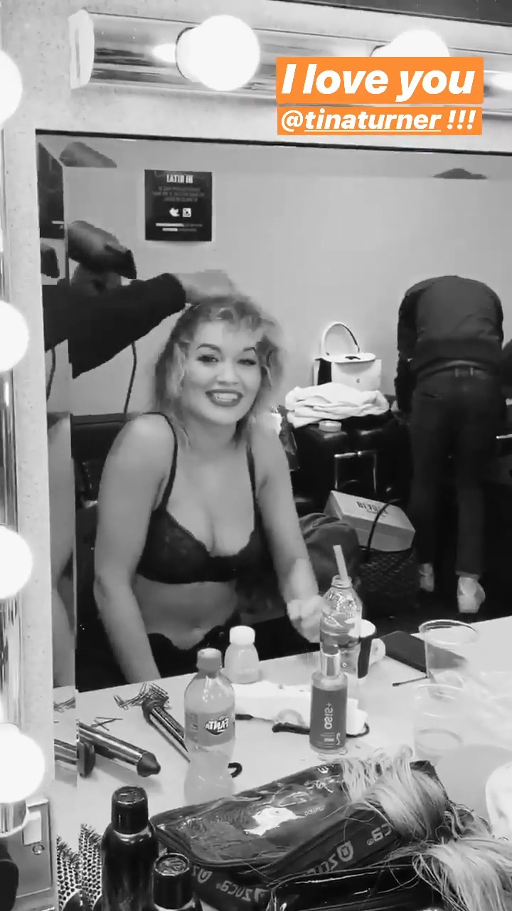 Rita Ora a partagé quelques photos et vidéos sexy en noir et blanc de sa loge sur Instagram, le 21/11/2019. La chanteuse a été photographiée par Ronan Park en soutien-gorge.