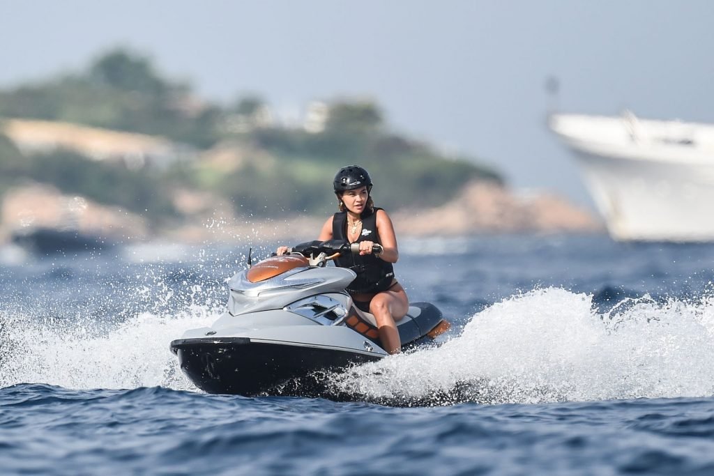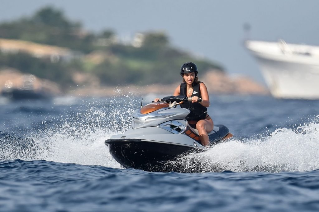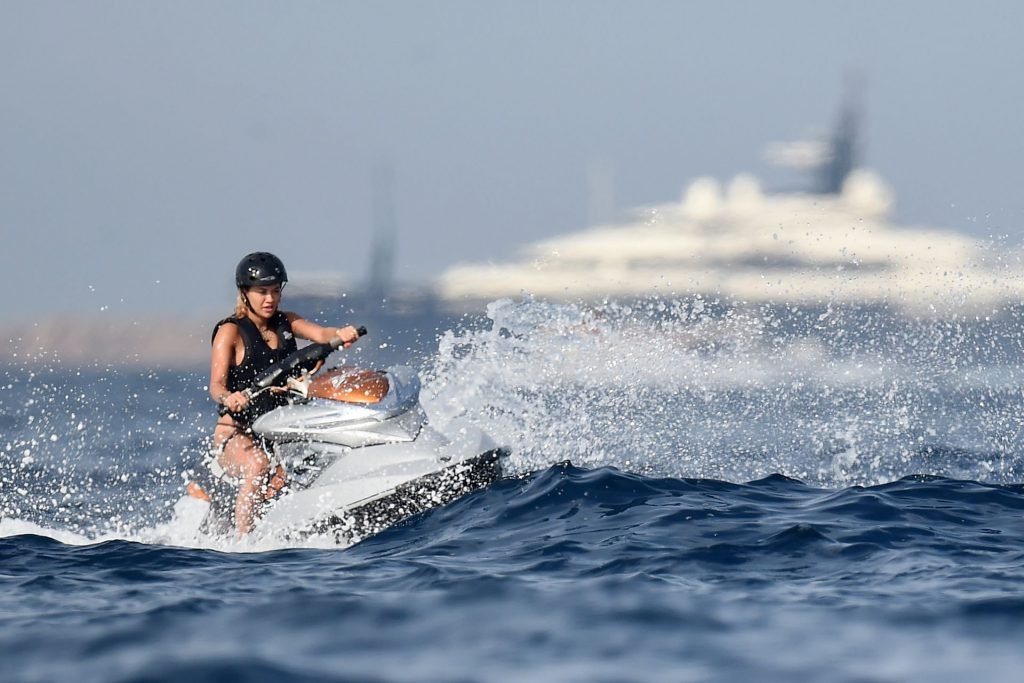 La chanteuse Rita Ora a exhibé ses fesses et seins sexy pendant ses vacances en Espagne et en Italie (août 2019). Rita a été photographiée en bikini noir sur un bateau et un yacht de luxe, et a montré ses talents sur un jet ski.