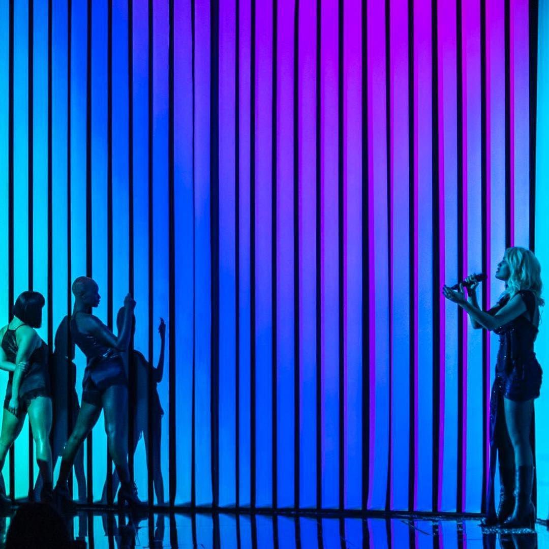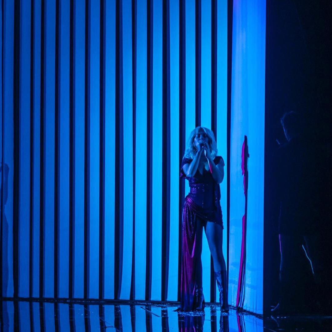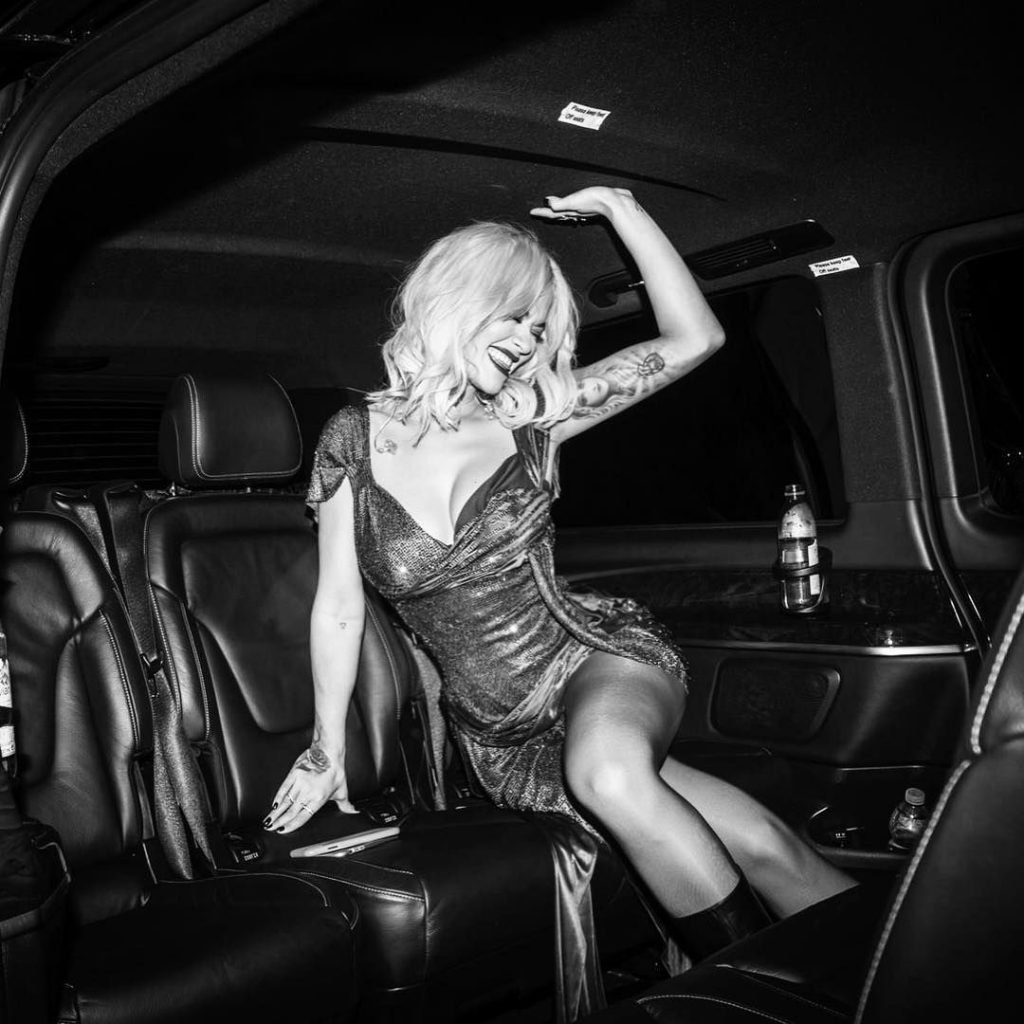 La chanteuse Rita Ora se produit dans une robe rouge décolletée en tant qu’invitée spéciale de “The X Factor Italy” à Milan, le 25/10/2018.