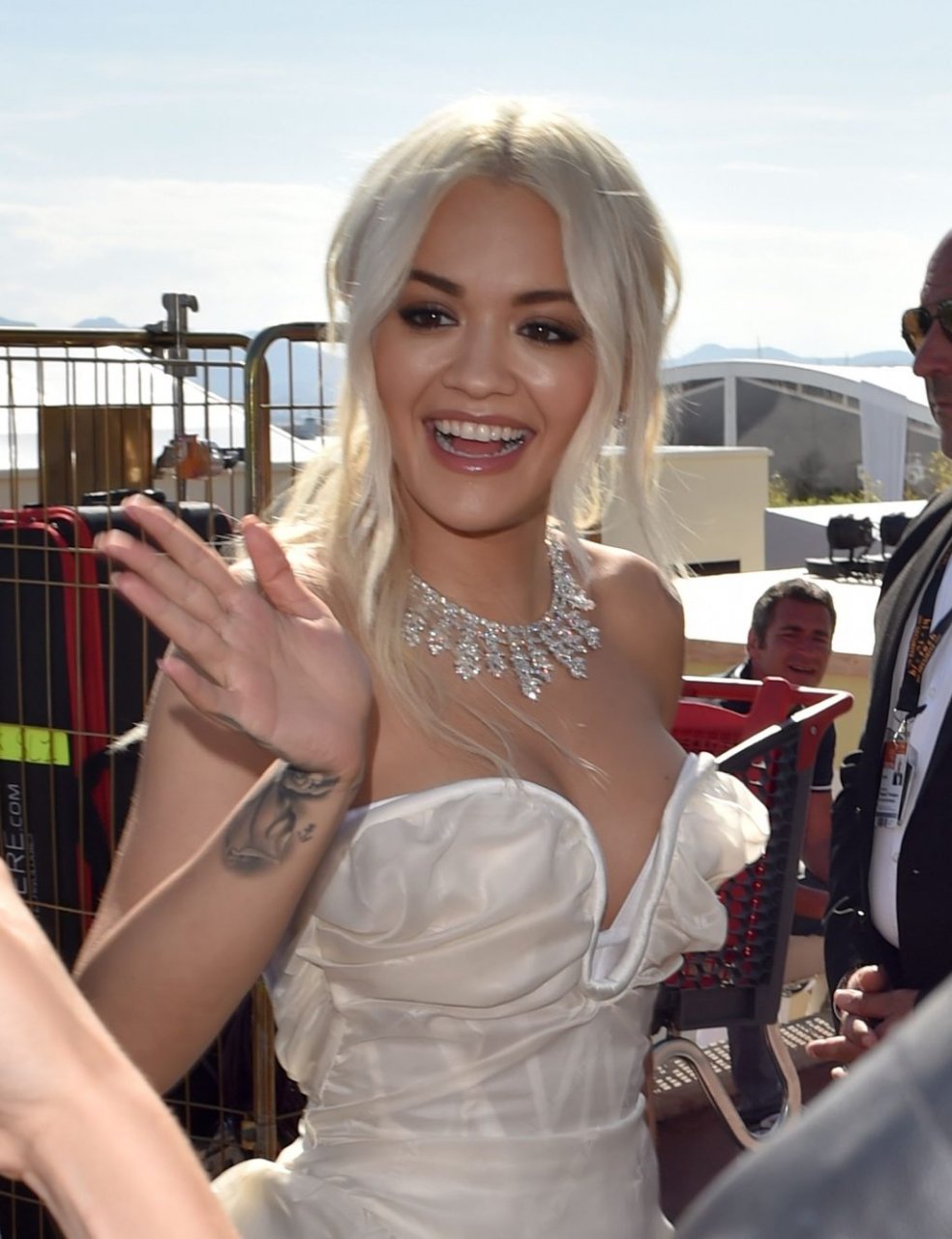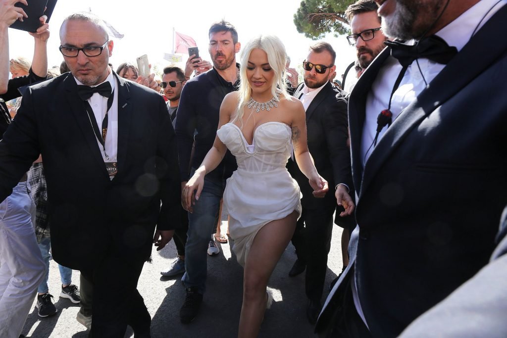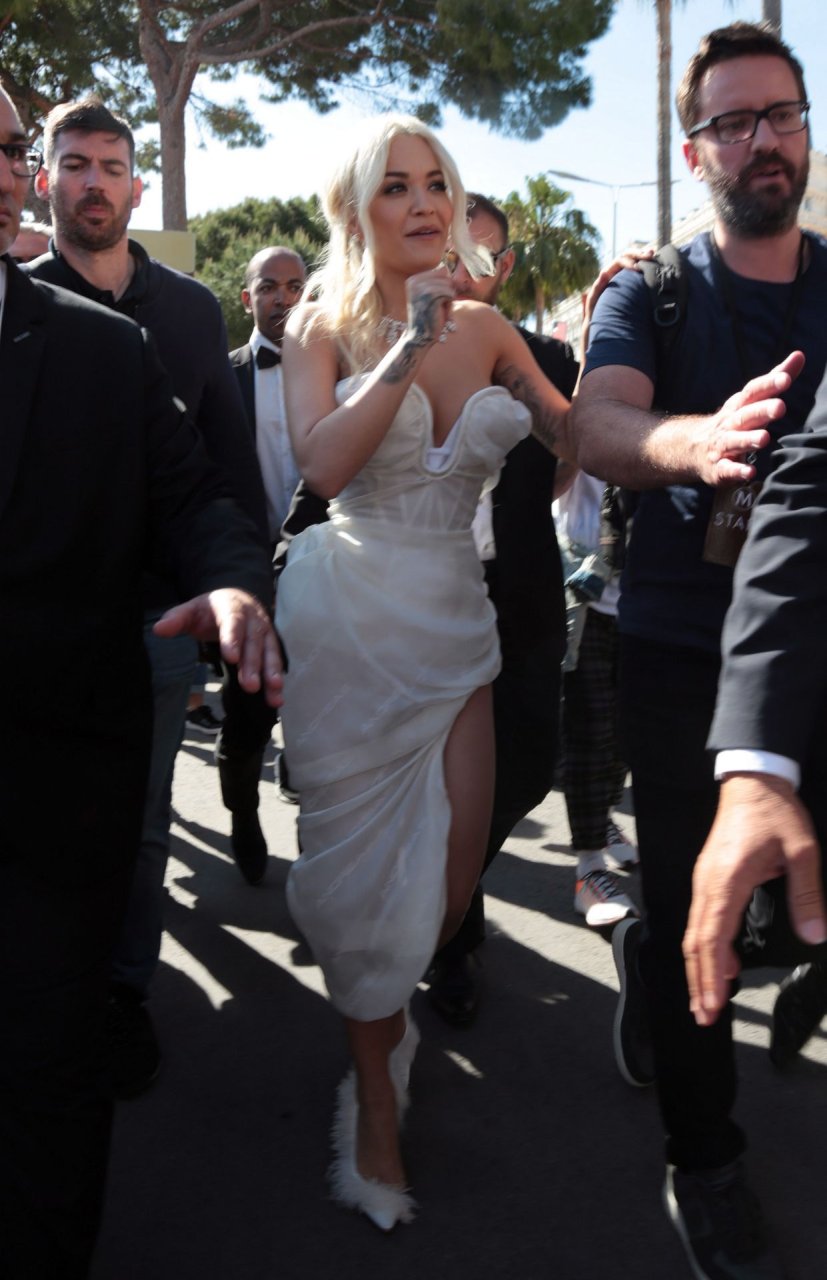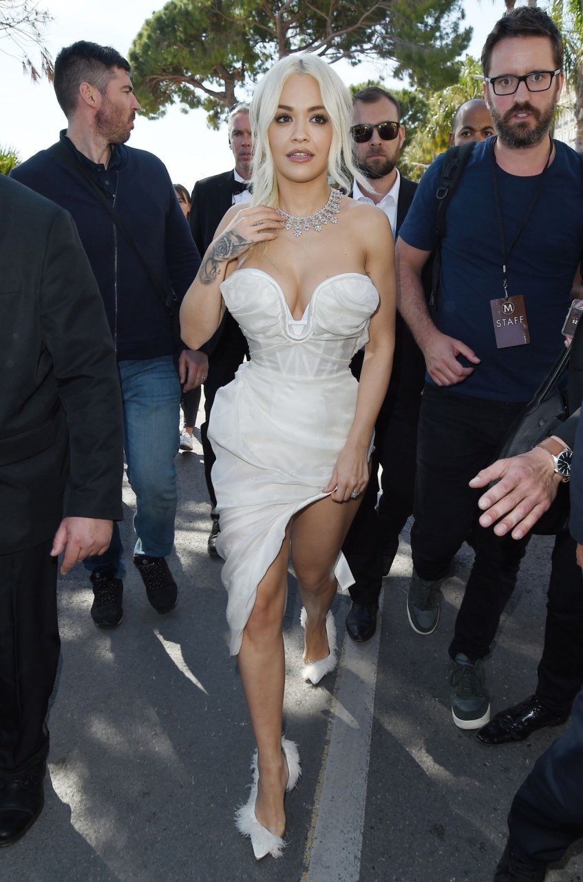 La chanteuse britannique Rita Ora a été vue lors du 72e Festival de Cannes, le 16/05/2019. La poitrine généreuse a mis en valeur son décolleté, portant une magnifique robe blanche.
