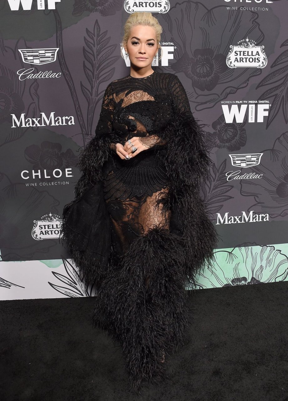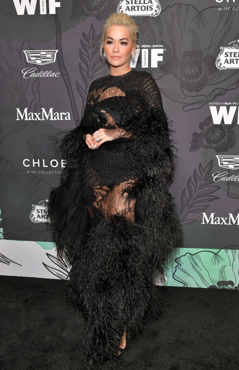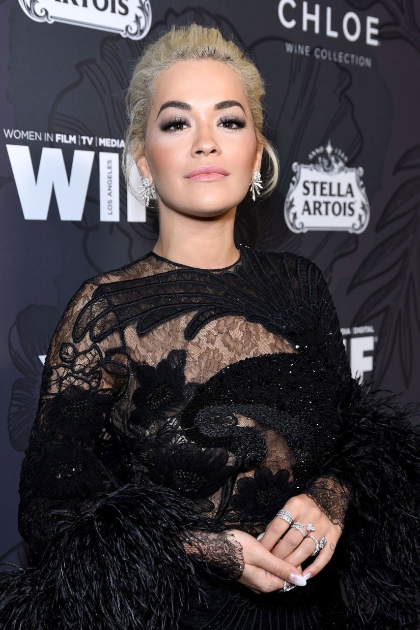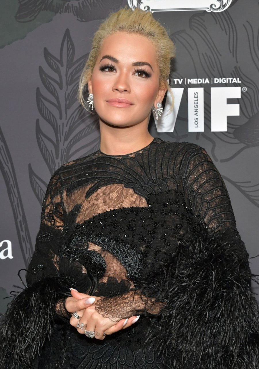 La chanteuse/actrice Rita Ora éblouit dans une robe noire lors de la 12e soirée annuelle Women In Film Oscar Party au Spring Place à Los Angeles, Californie, le 22/02/2019.