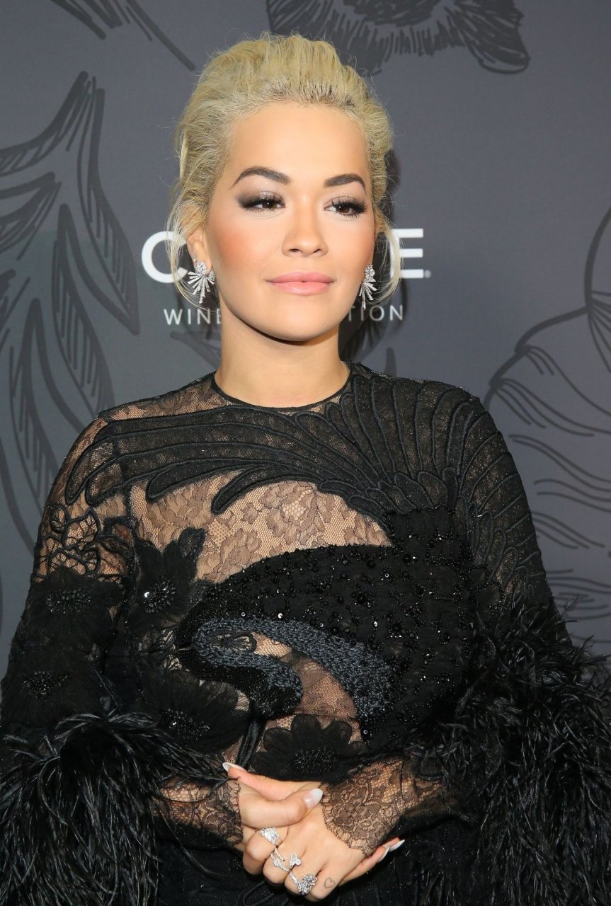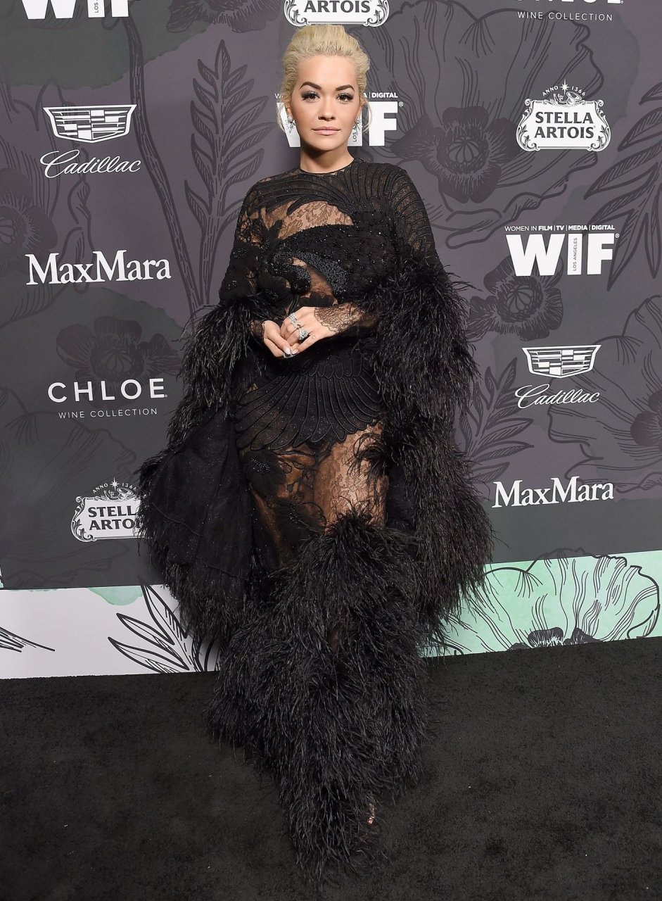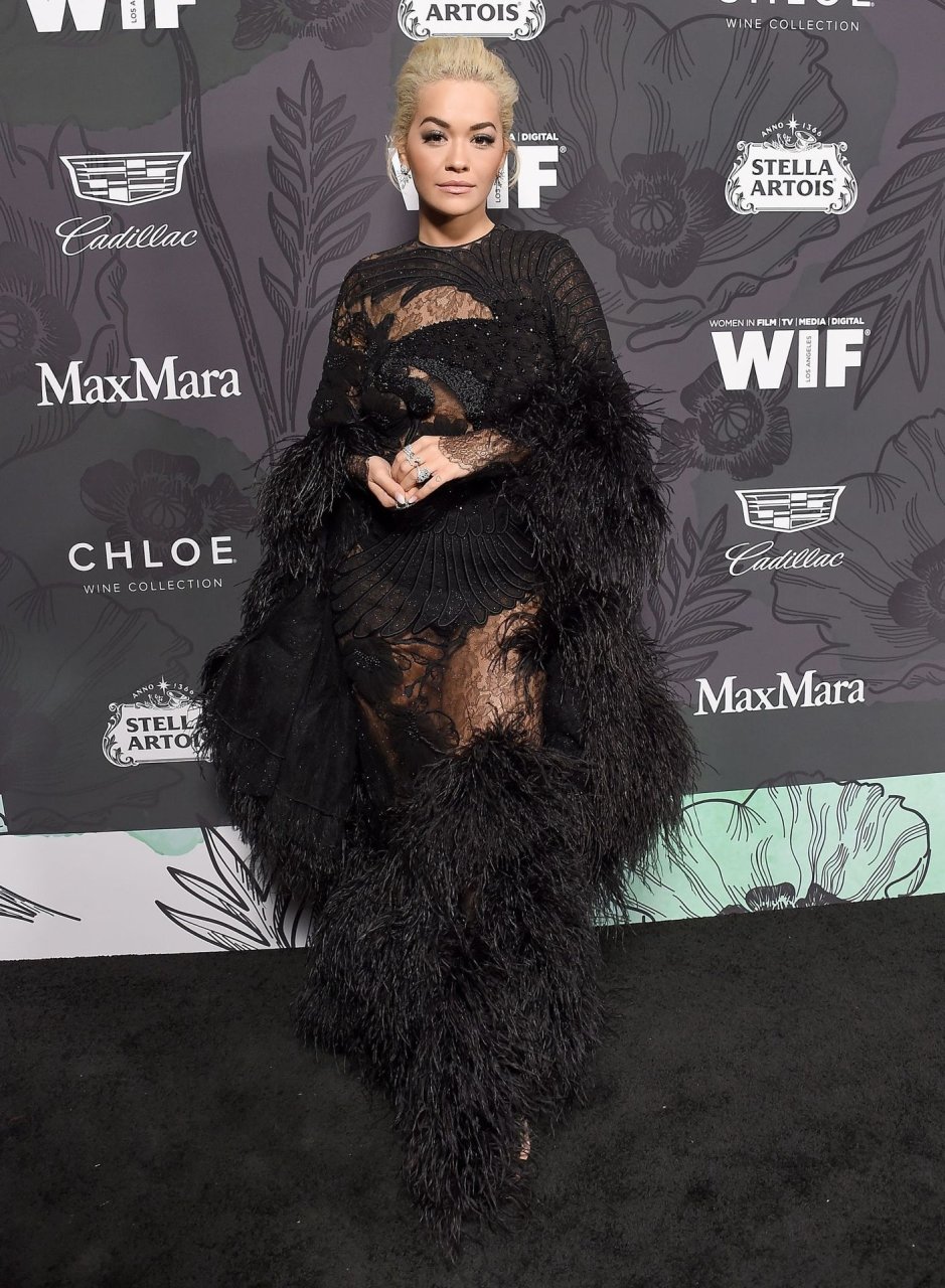 La chanteuse/actrice Rita Ora éblouit dans une robe noire lors de la 12e soirée annuelle Women In Film Oscar Party au Spring Place à Los Angeles, Californie, le 22/02/2019.