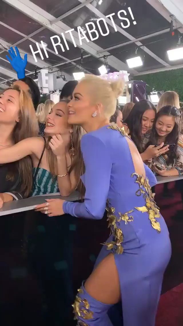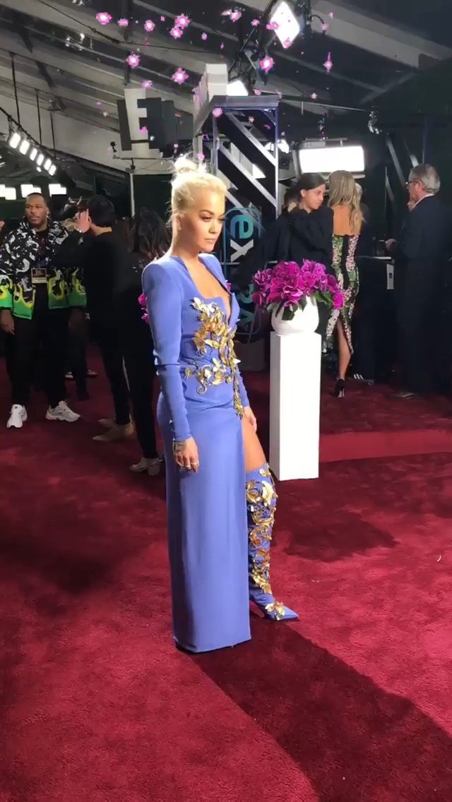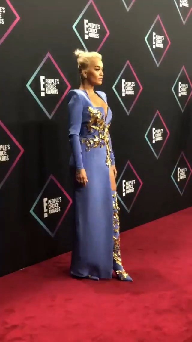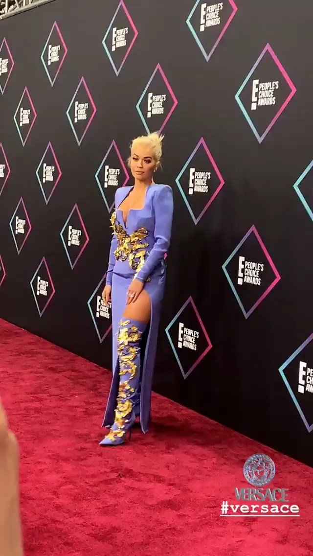 Rita Ora était l’une des invitées de la cérémonie des People’s Choice Awards 2018 à Santa Monica, le 11/11/2018. La chanteuse de 27 ans est apparue sur le tapis rouge dans une tenue de couture sexy avec un décolleté profond et captivant de la marque Versace.