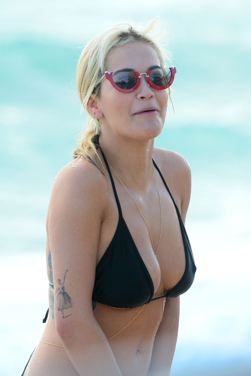 Nouvelles photos paparazzi de Rita Ora en bikini noir à Miami, 29/12/15. Oups… Rita Ora est une chanteuse, auteure-compositrice et actrice britannique. Âge 25 ans (26 novembre 1990).