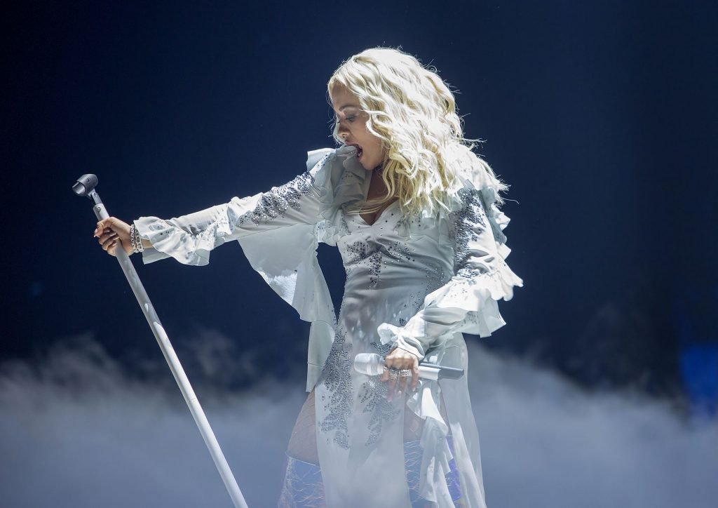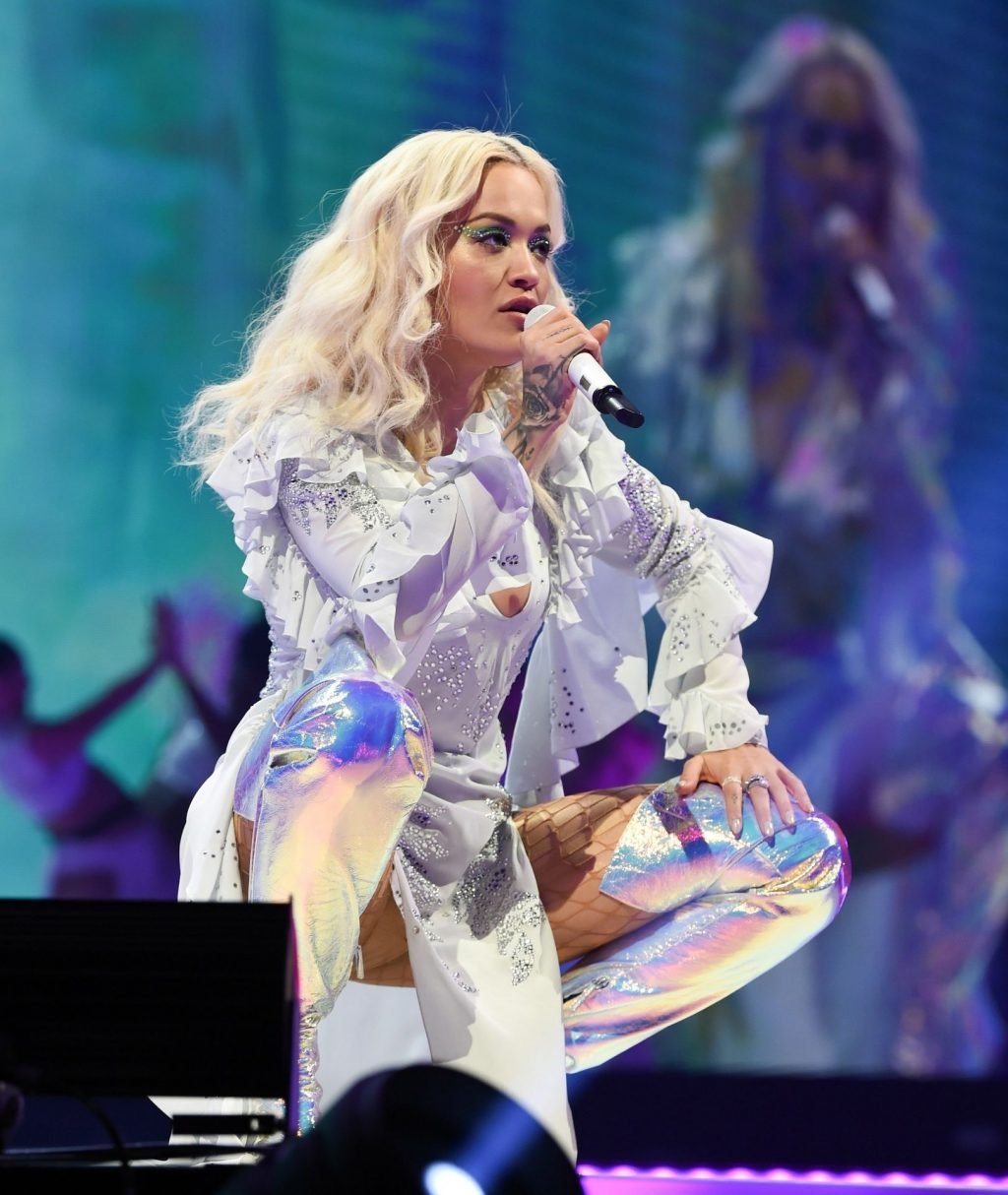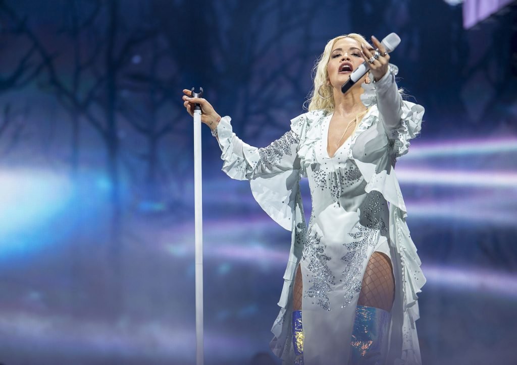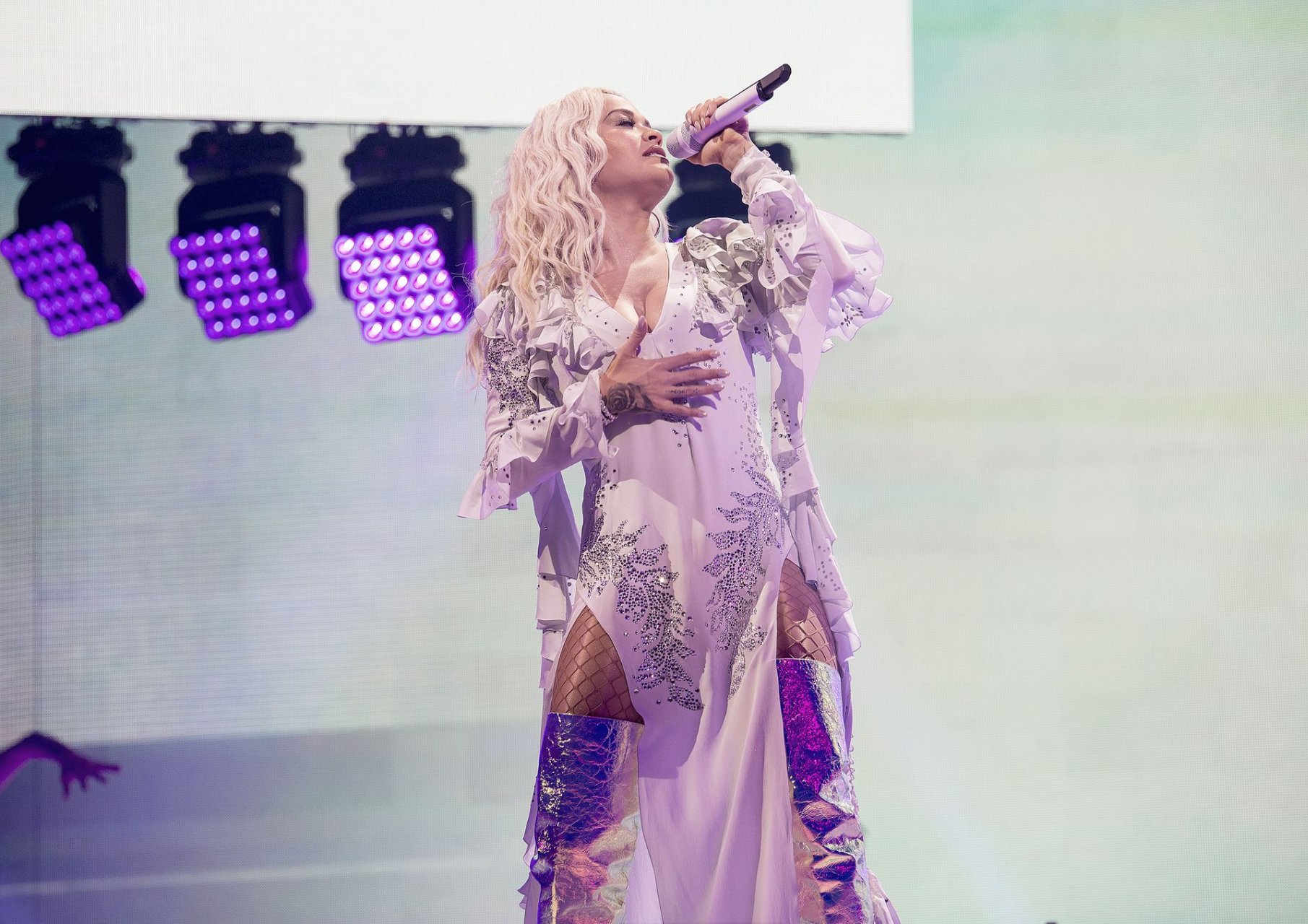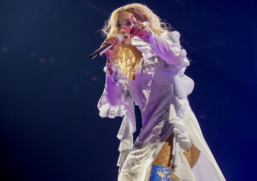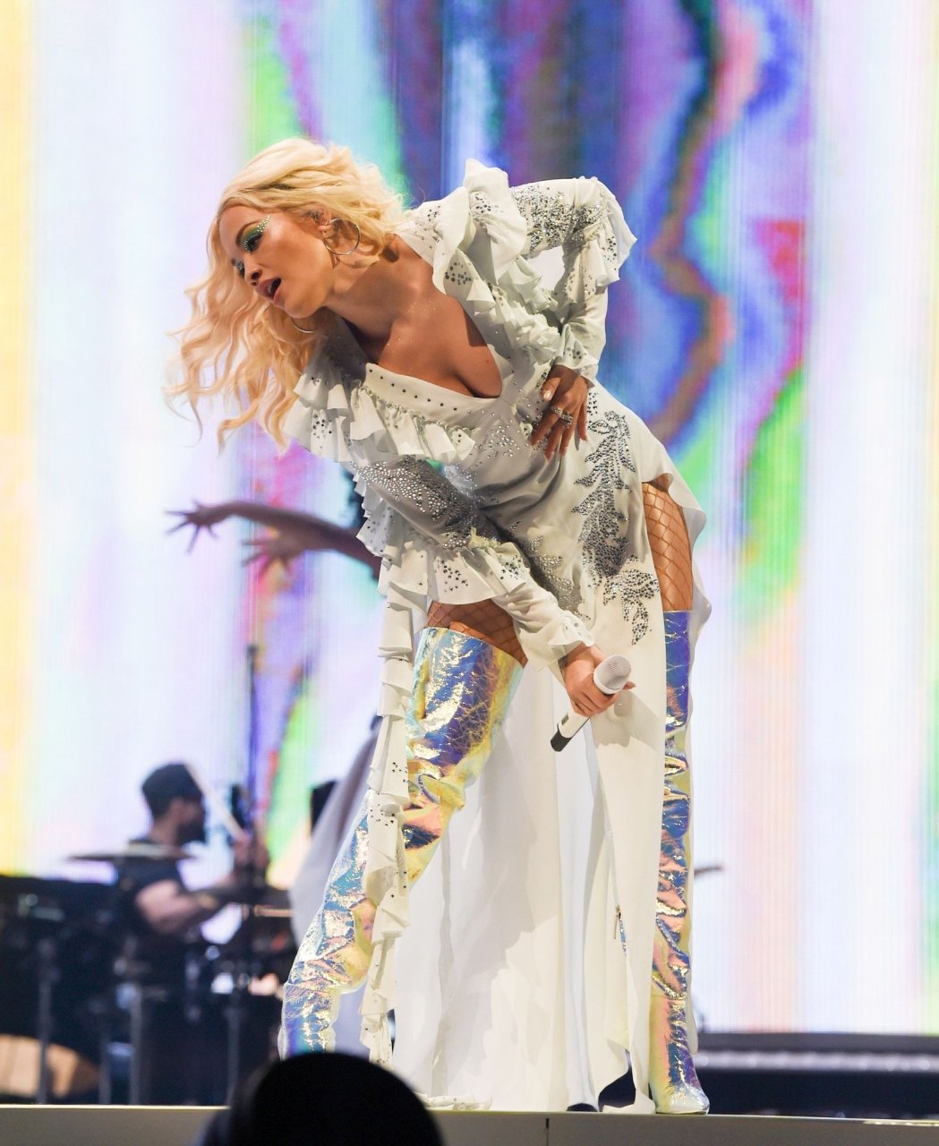 La chanteuse Rita Ora a été photographiée sur scène lors d’un concert en direct à la Liverpool M & S Bank Arena à Liverpool, le 28/05/2019.