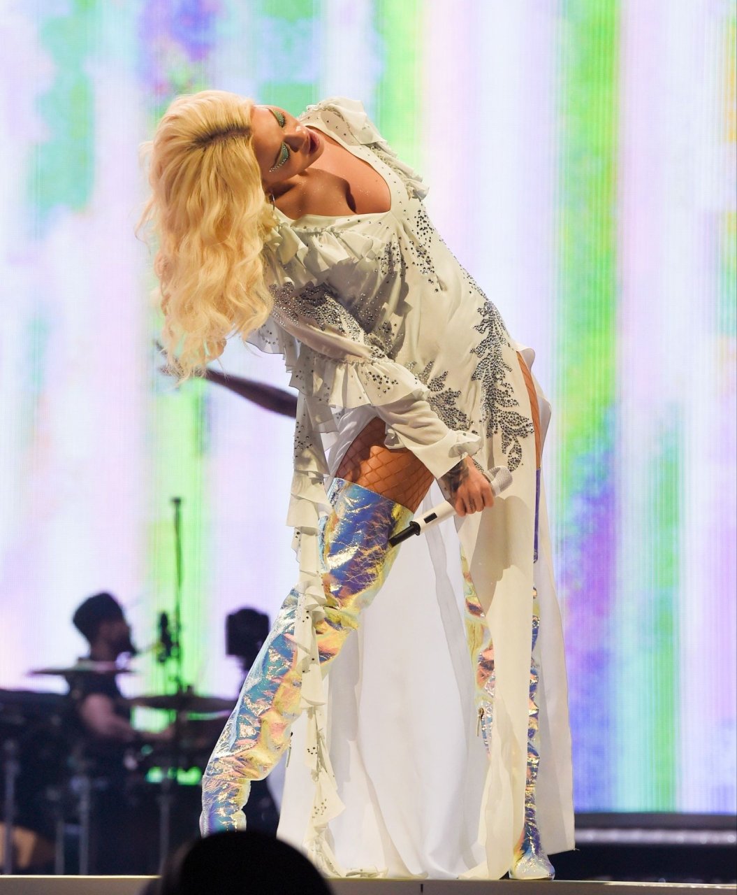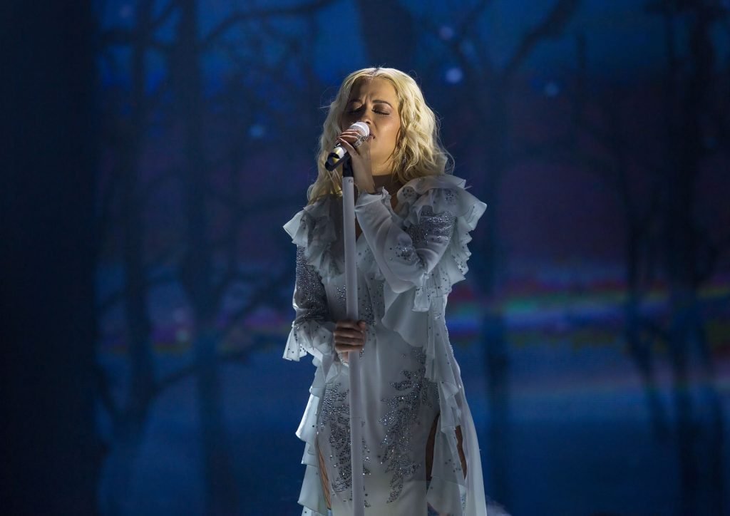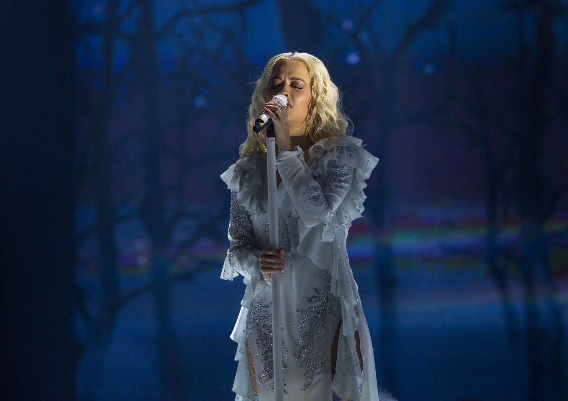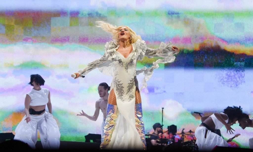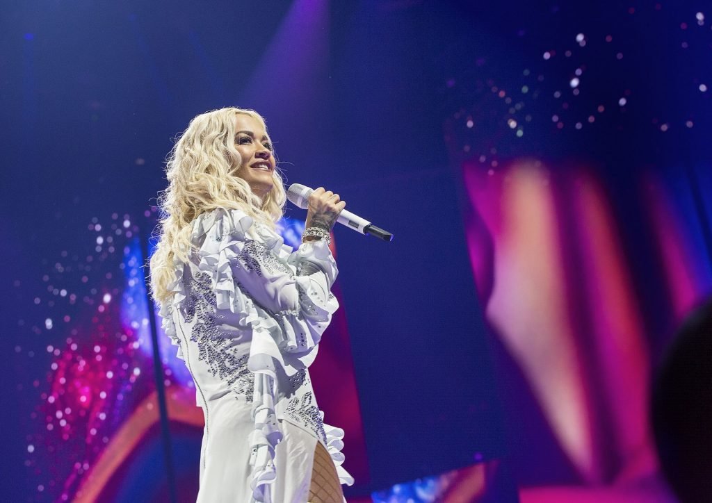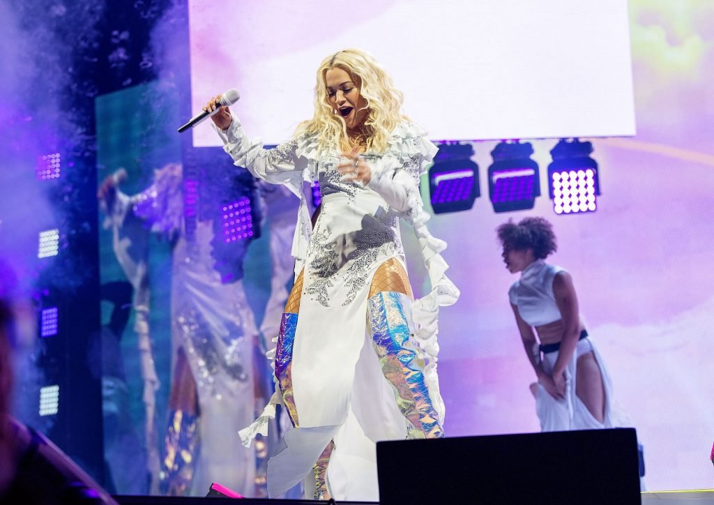 La chanteuse Rita Ora a été photographiée sur scène lors d’un concert en direct à la Liverpool M & S Bank Arena à Liverpool, le 28/05/2019.