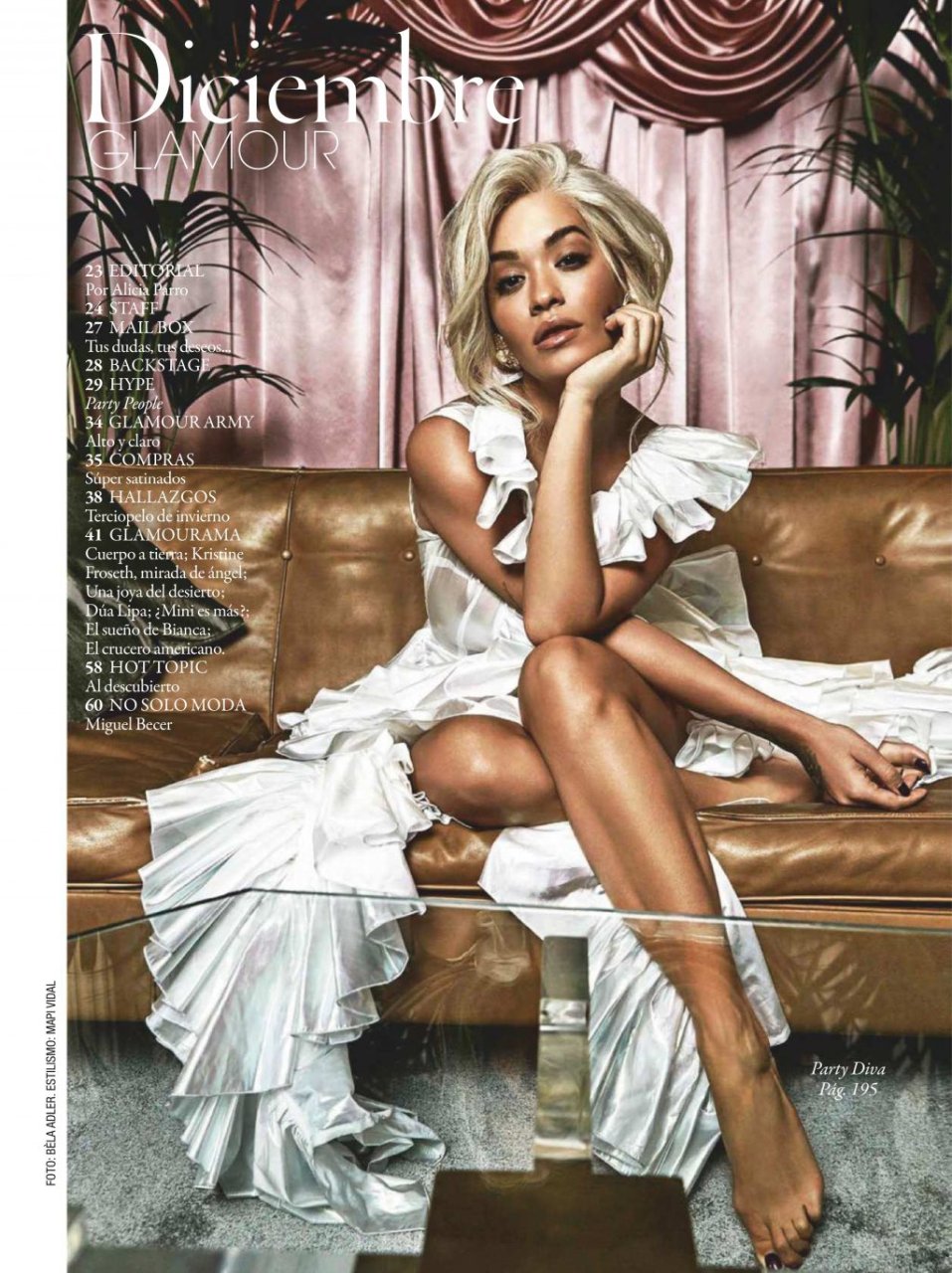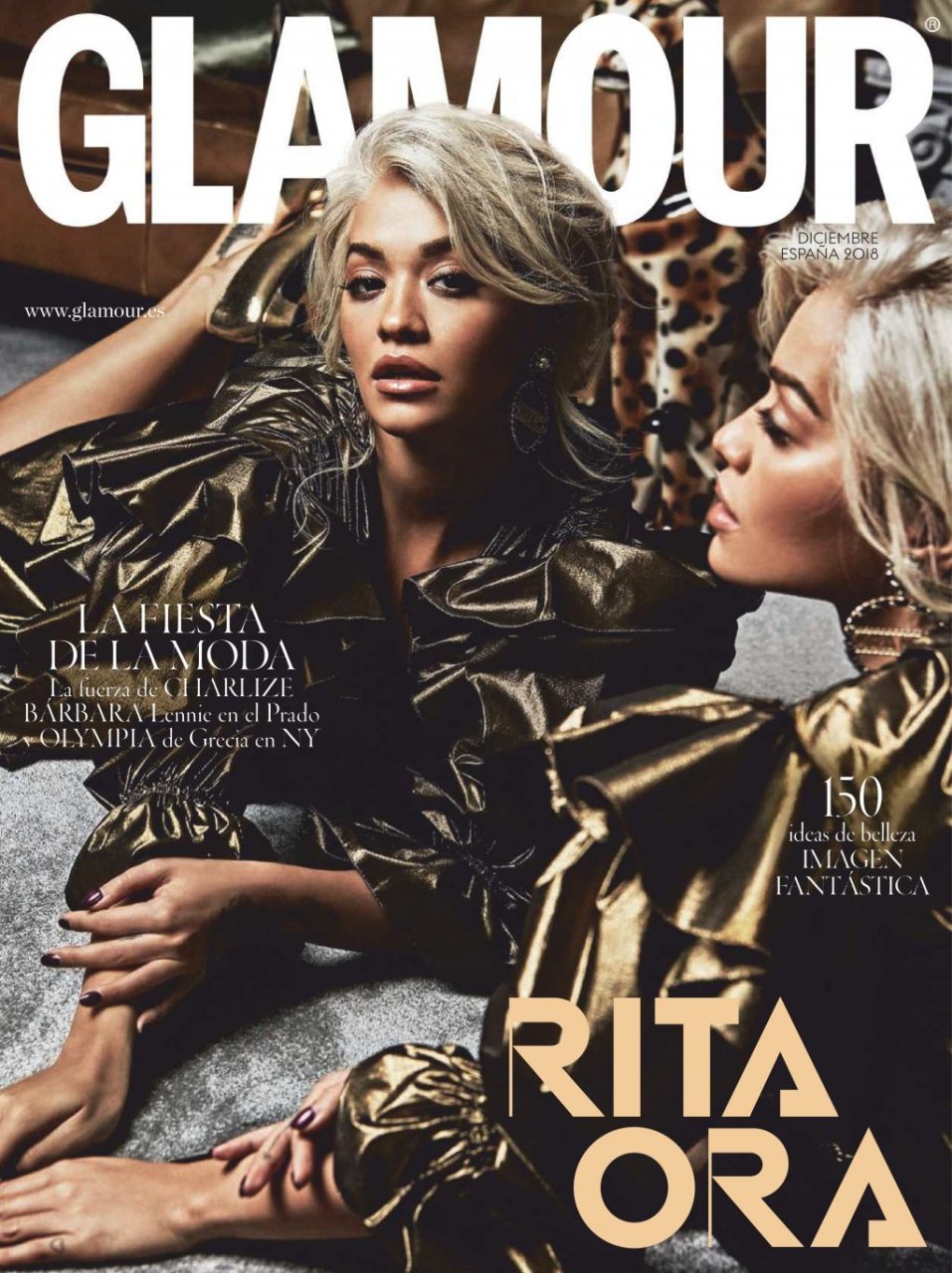 Célèbre chanteuse anglaise, actrice du film “50 Nuances de Grey”, Rita Ora est apparue dans les pages de Glamour Espagne (décembre 2018).