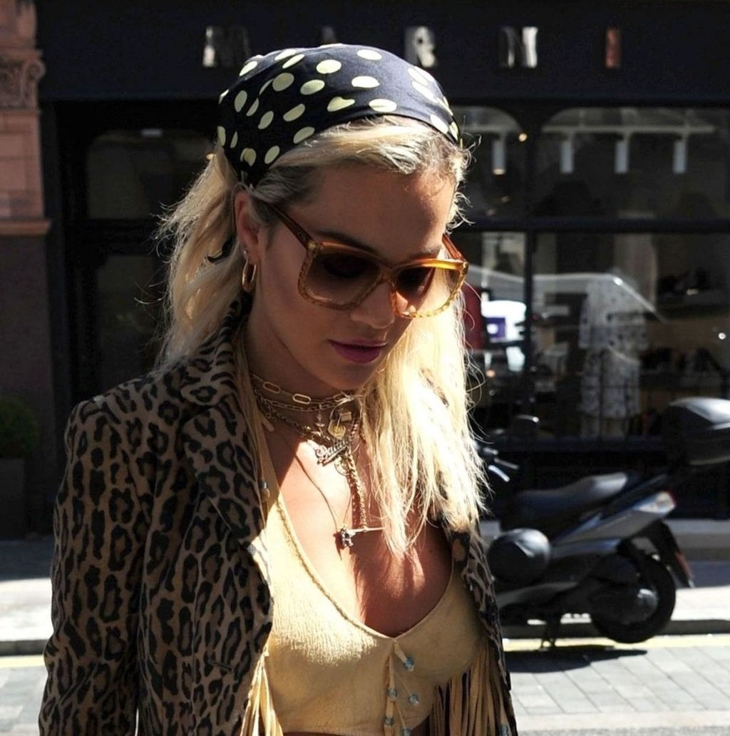 La chanteuse britannique Rita Ora est arrivée au restaurant Scotts à Londres pour manger un morceau, le 07/04/2019. Elle portait son haut de bikini en faisant des courses avec son amie Vas J Morgan.