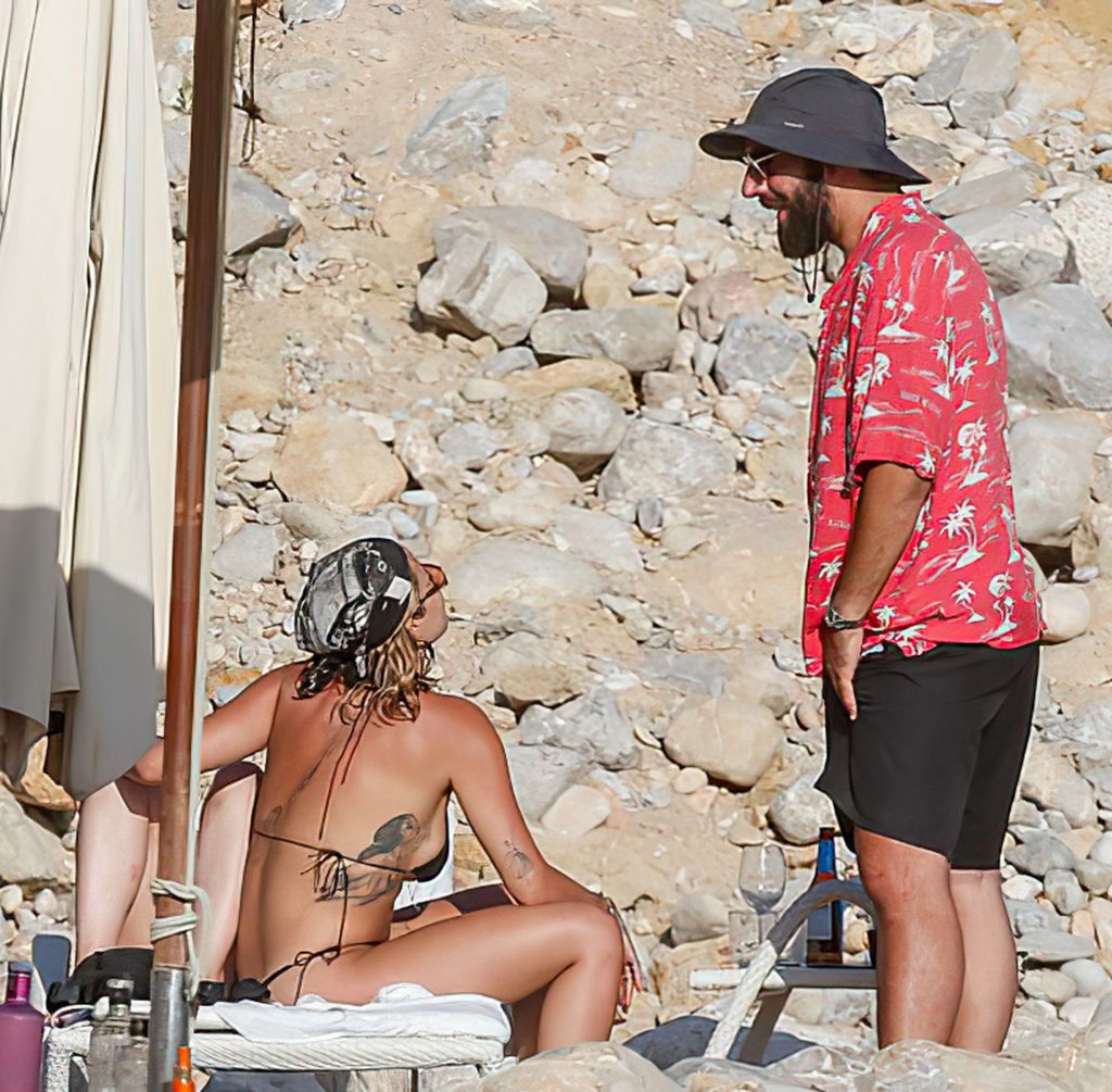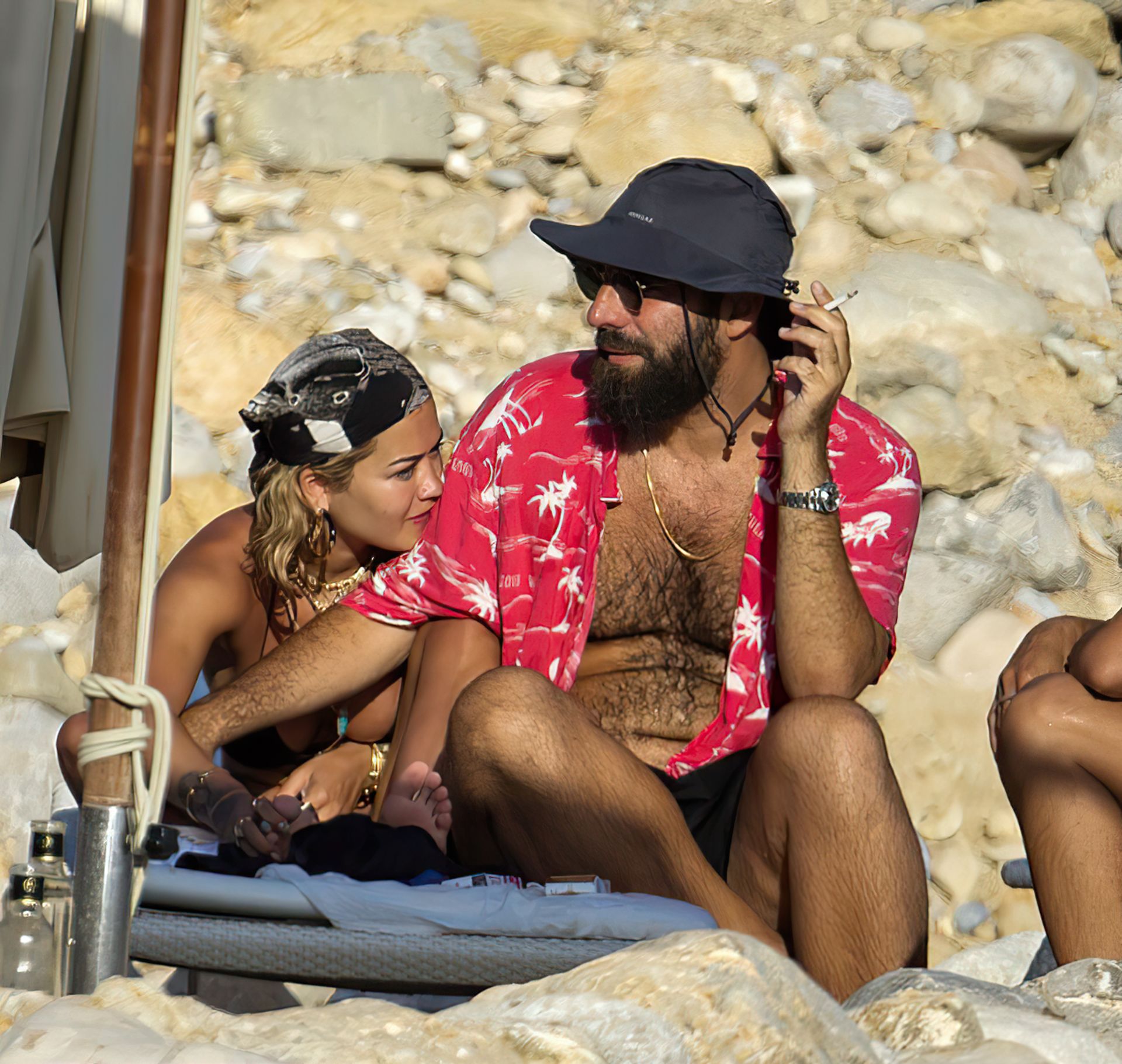 La chanteuse Rita Ora enlève son bikini noir et reste topless pendant ses vacances avec des amis à Formentera, en Espagne, le 30/07/2020. Elle a également couvert ses seins nus lors de la séance photo sur les réseaux sociaux.