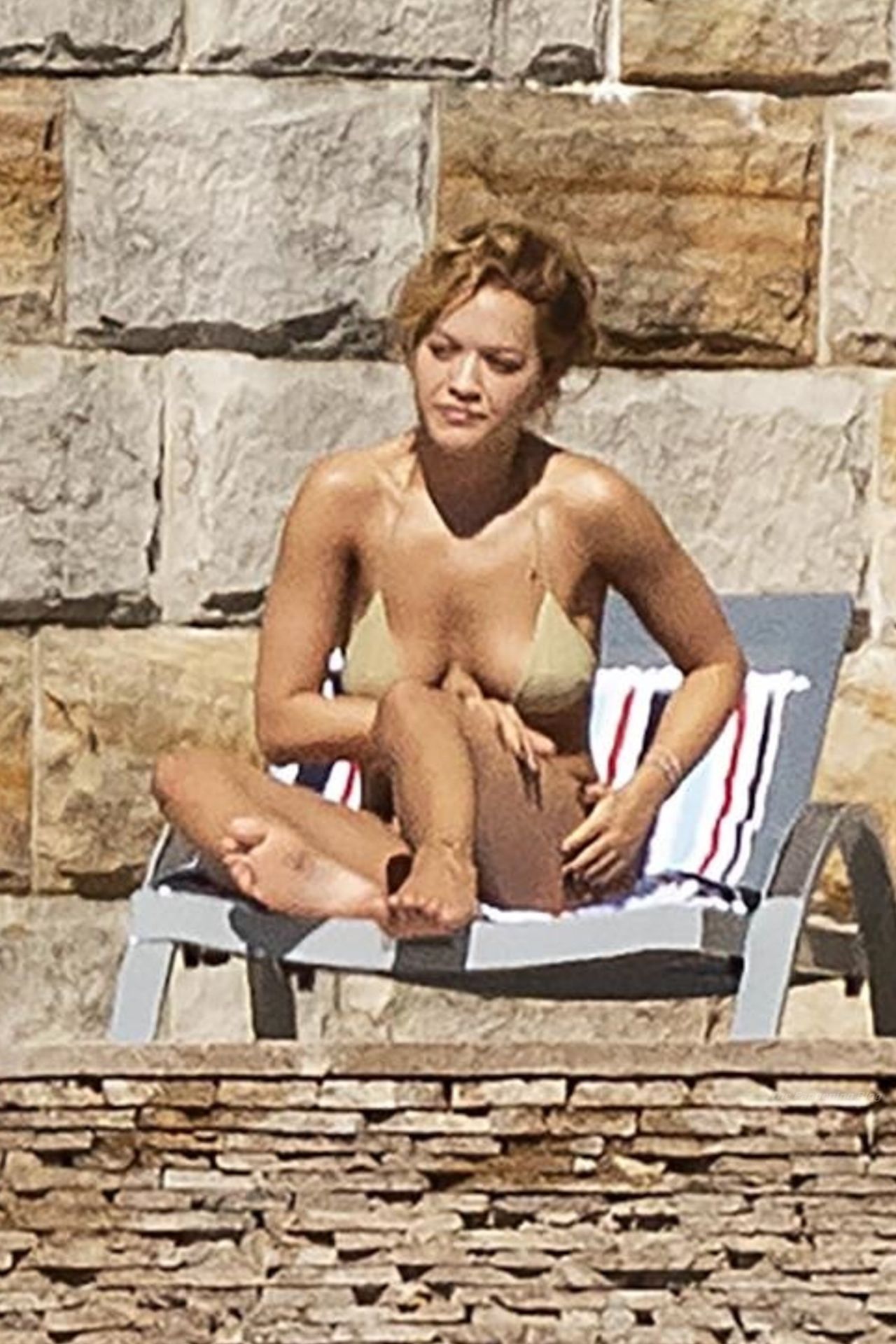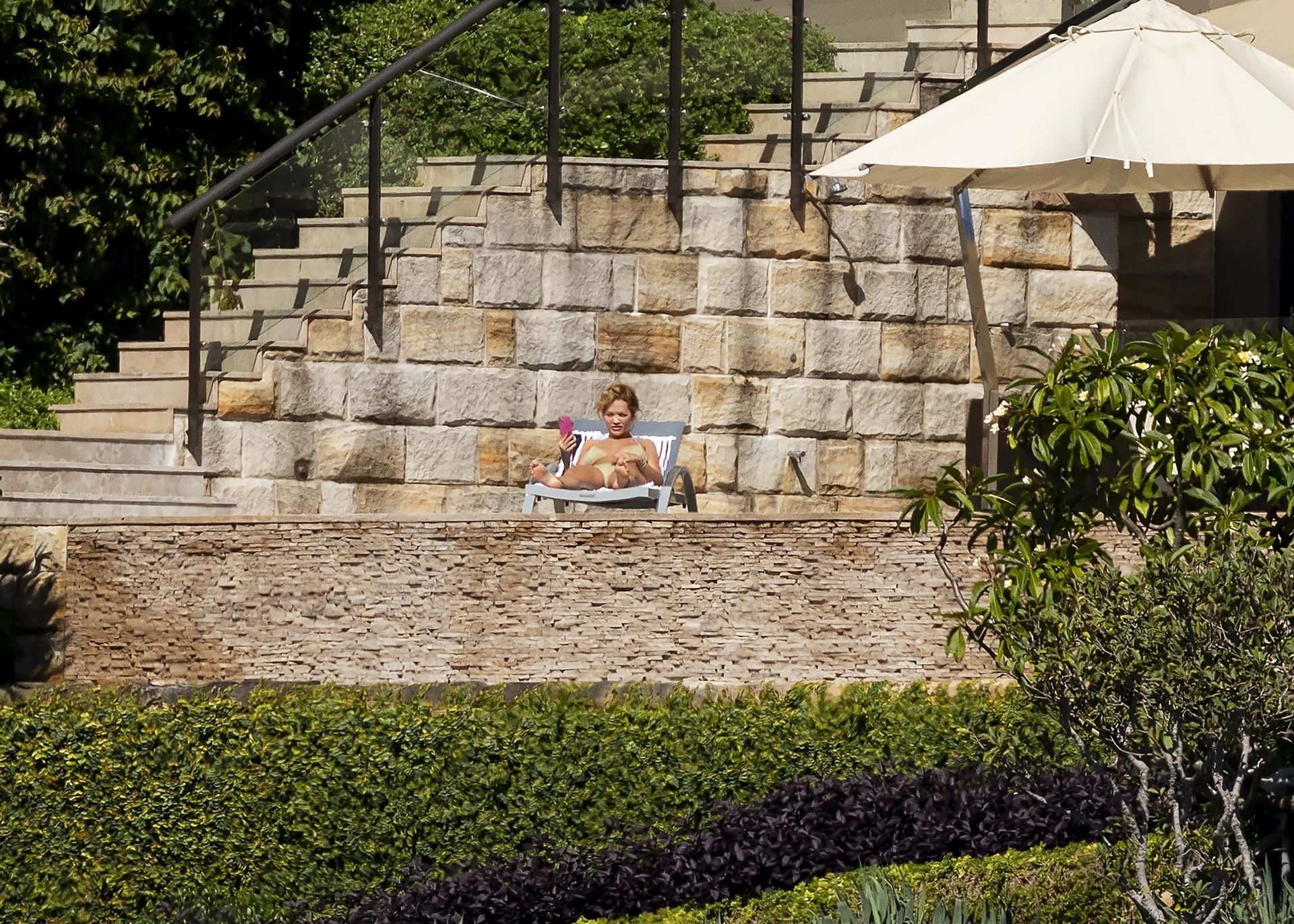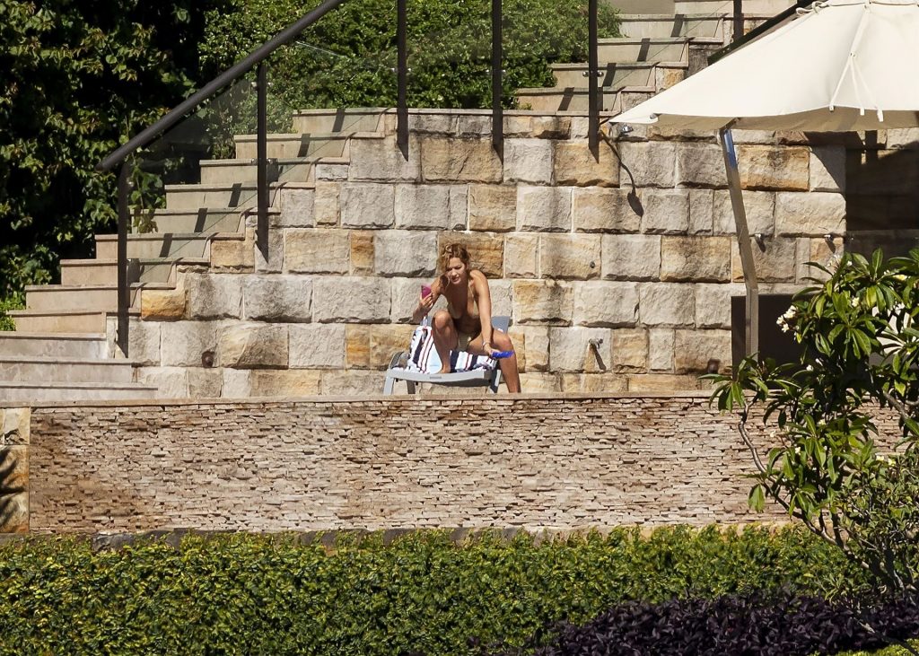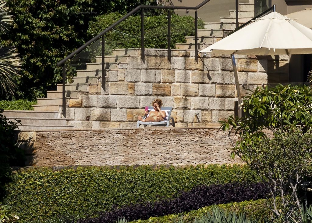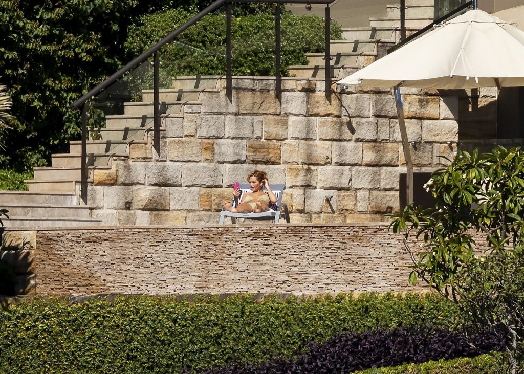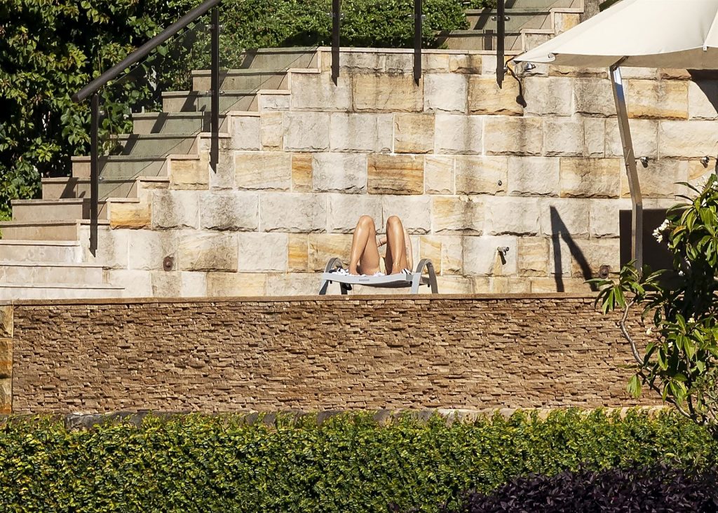 La chanteuse Rita Ora est photographiée en train de prendre un bain de soleil sur le pont de son manoir de Sydney alors qu’elle est ici pour le tournage de The Voice Australia, 31/03/2021.
