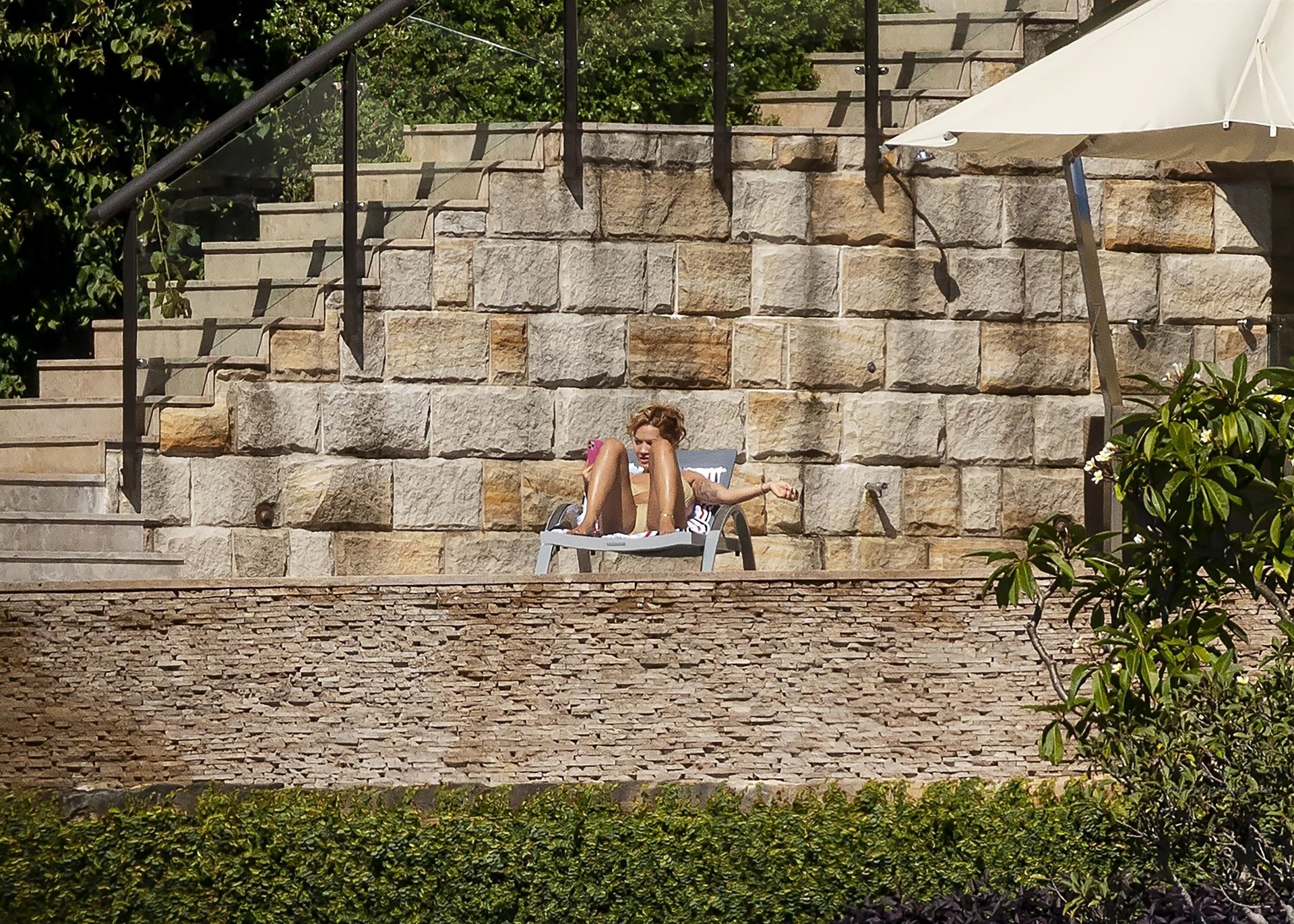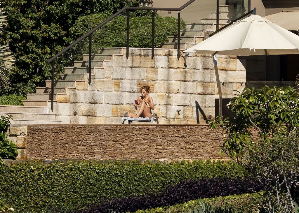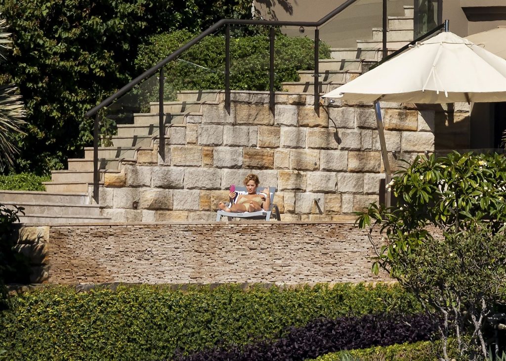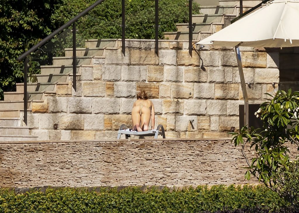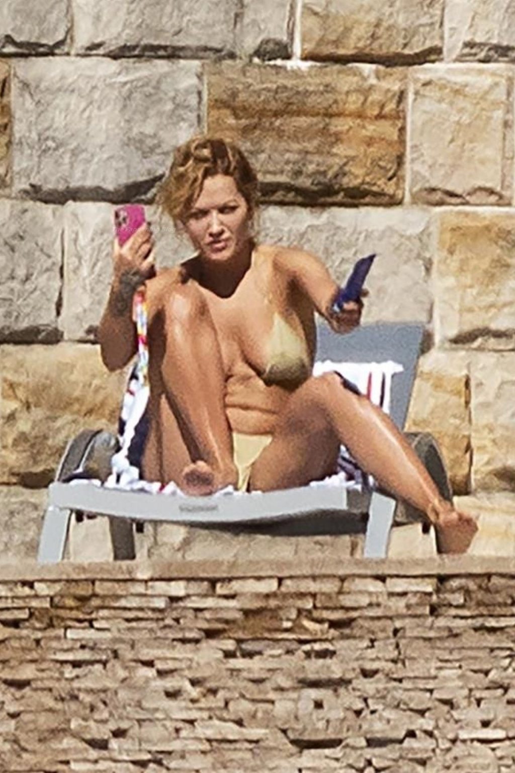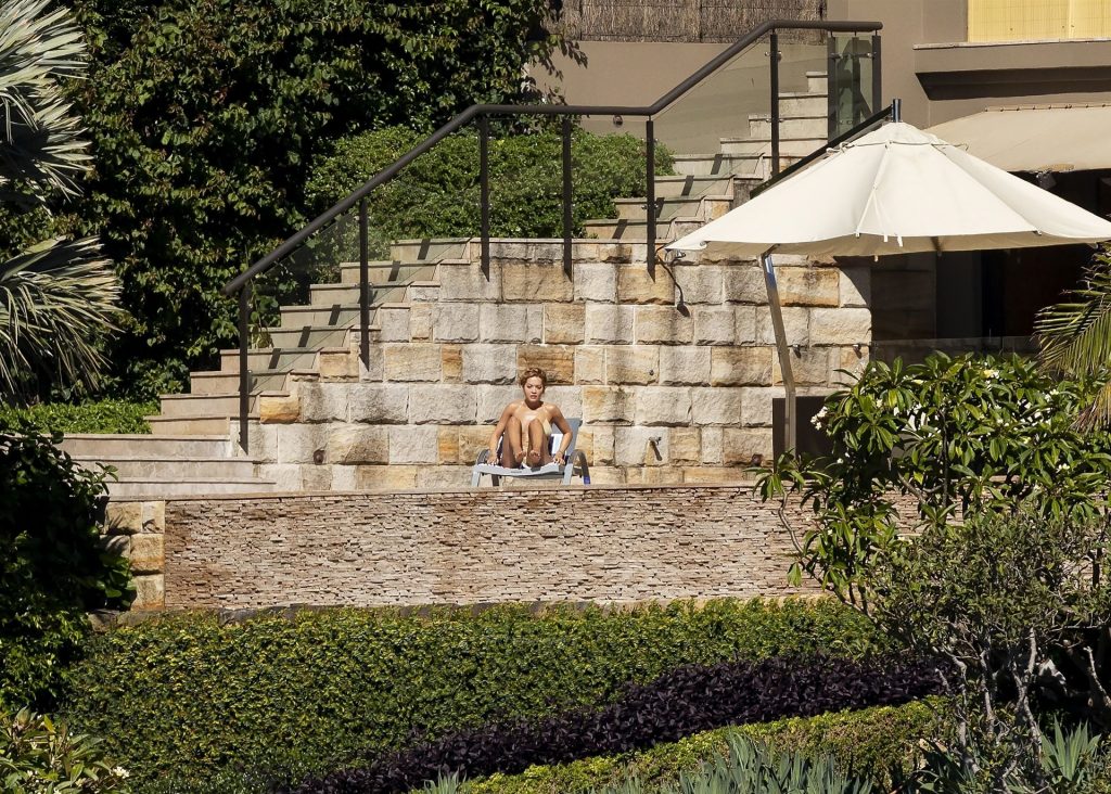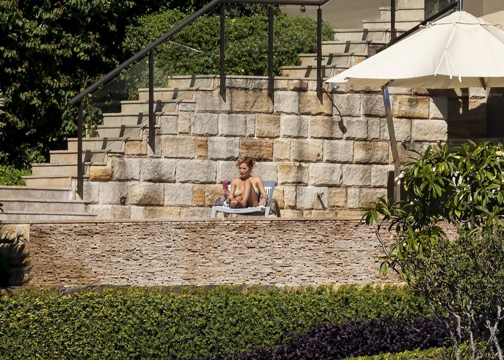 La chanteuse Rita Ora est photographiée en train de prendre un bain de soleil sur le pont de son manoir de Sydney alors qu’elle est ici pour le tournage de The Voice Australia, 31/03/2021.