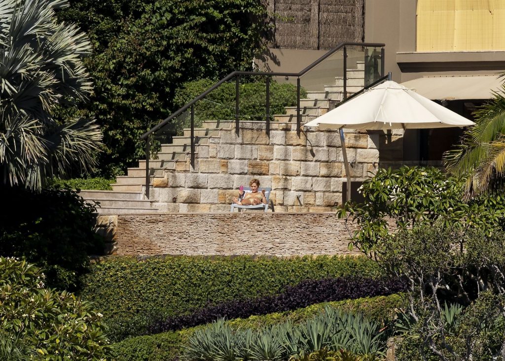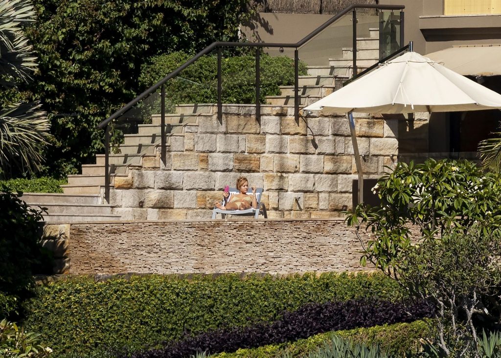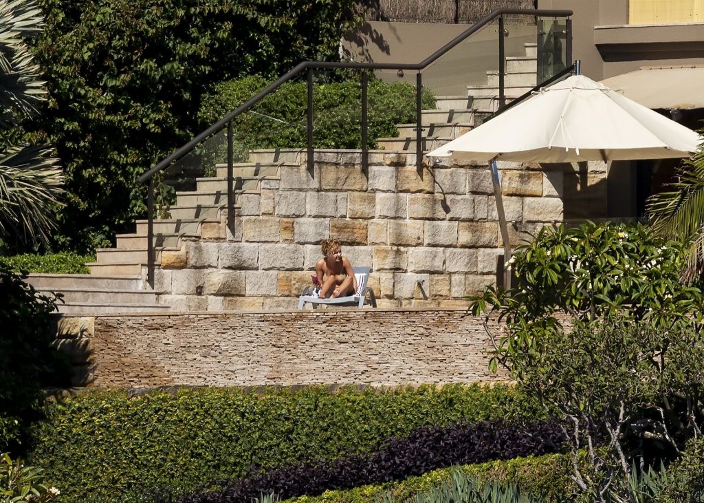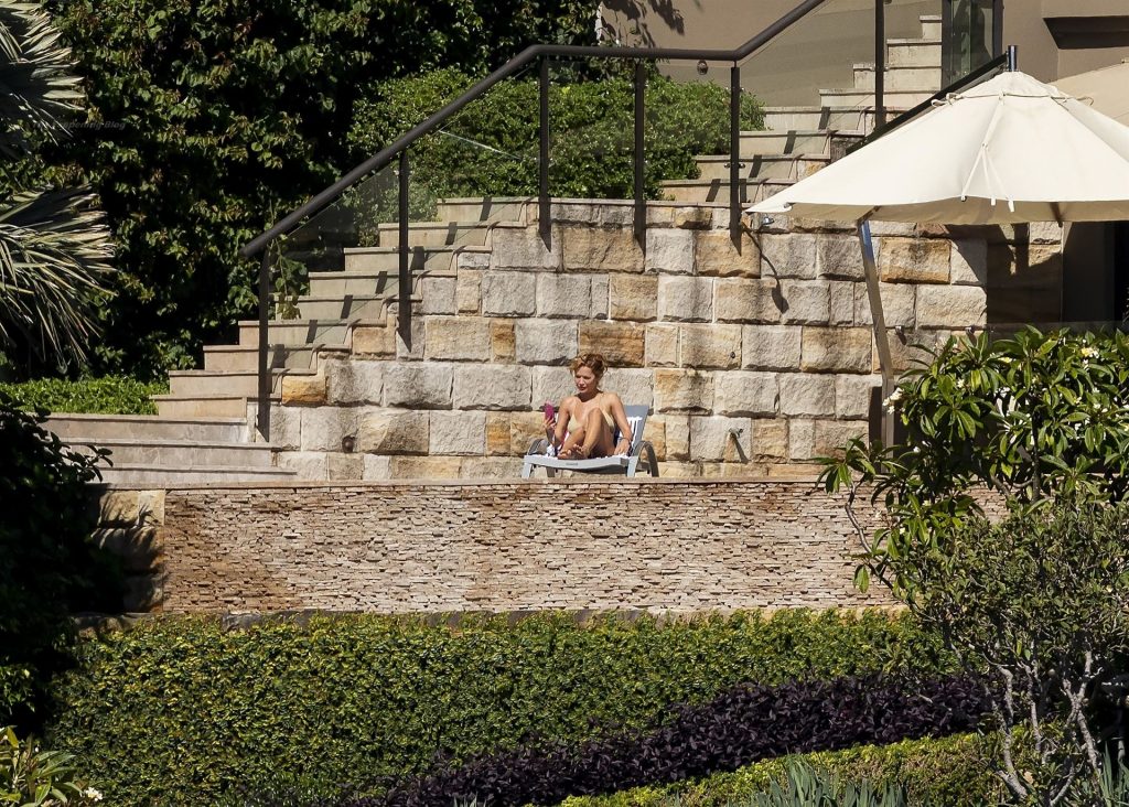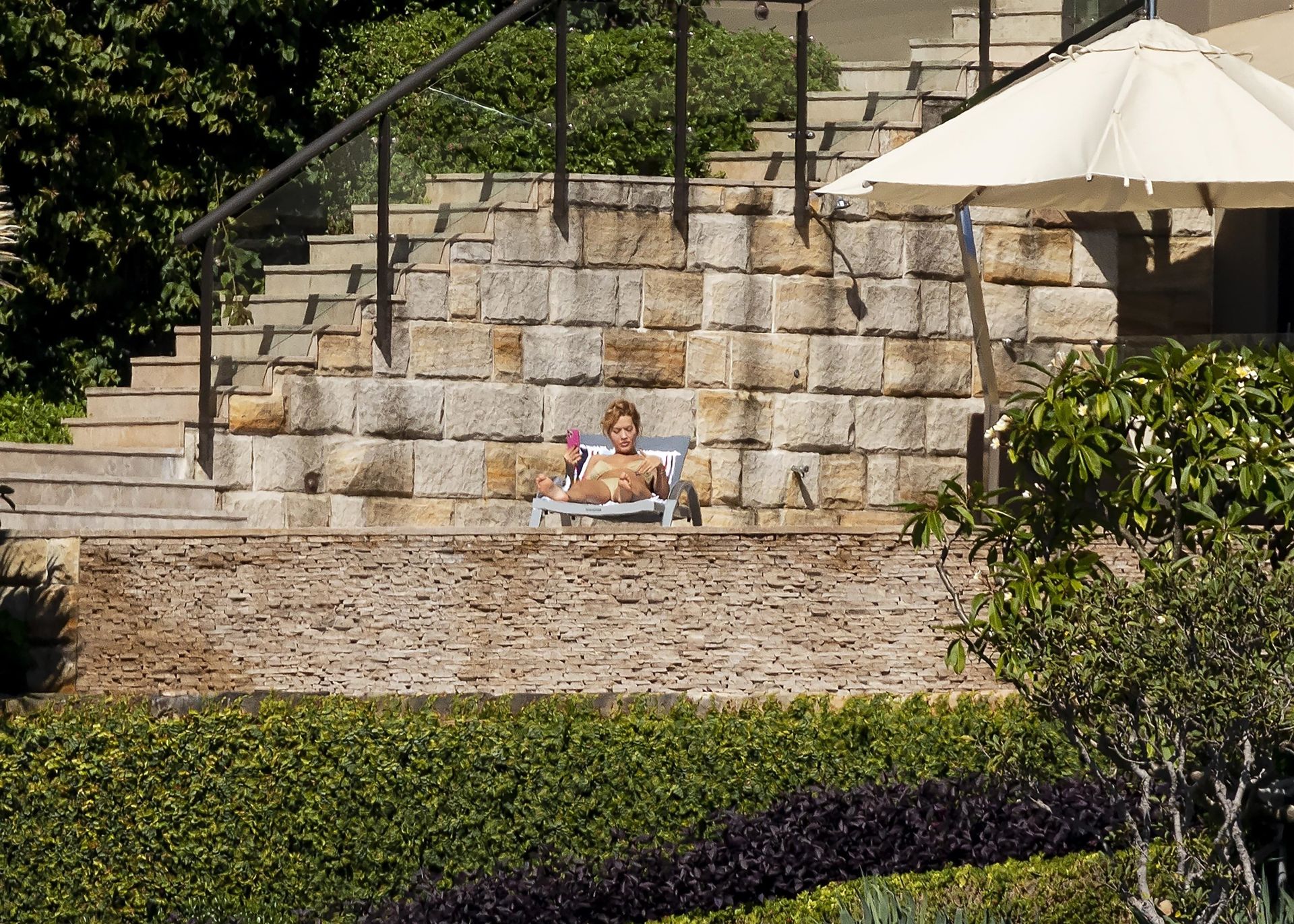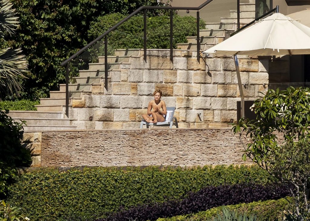 La chanteuse Rita Ora est photographiée en train de prendre un bain de soleil sur le pont de son manoir de Sydney alors qu’elle est ici pour le tournage de The Voice Australia, 31/03/2021.
