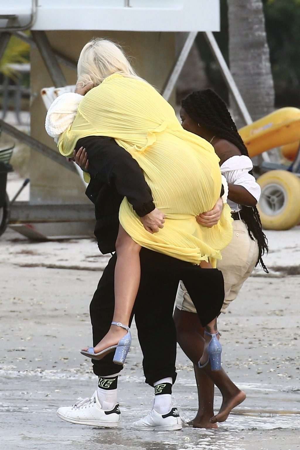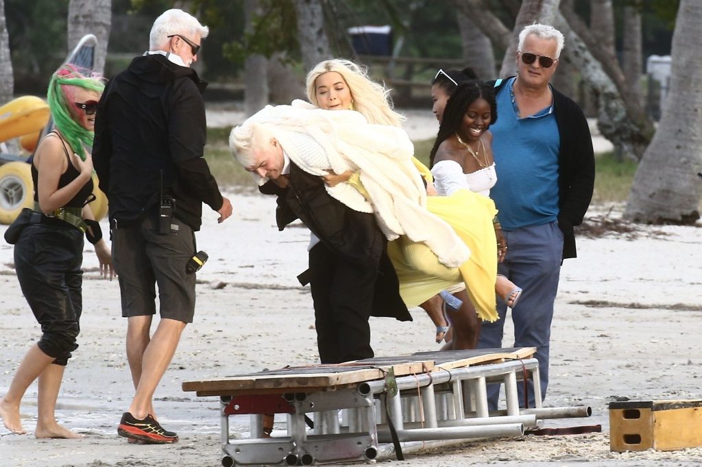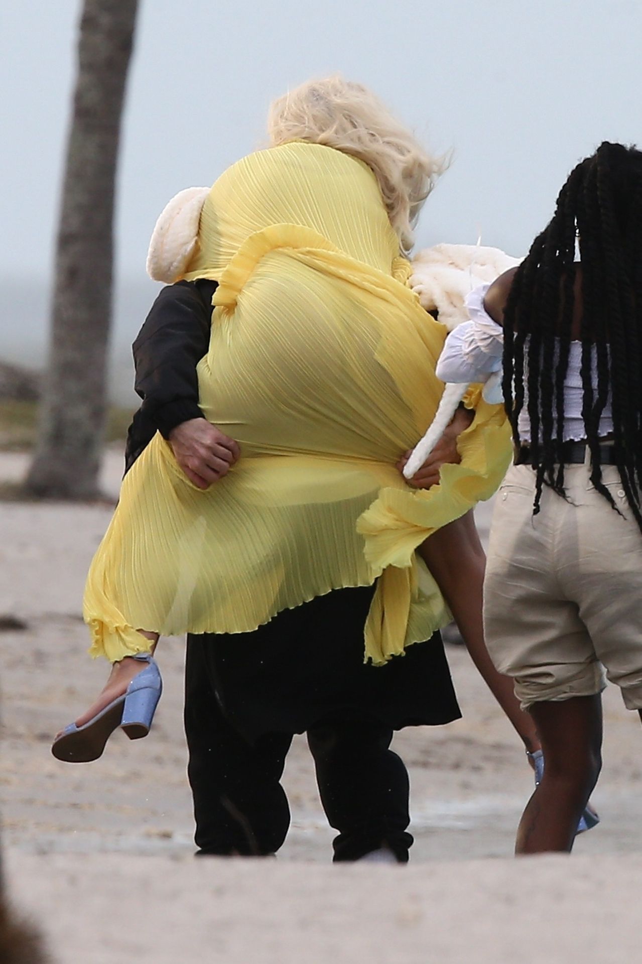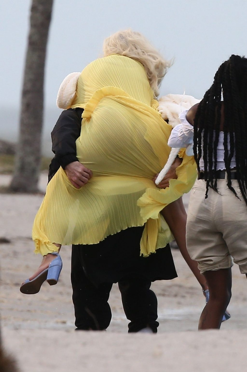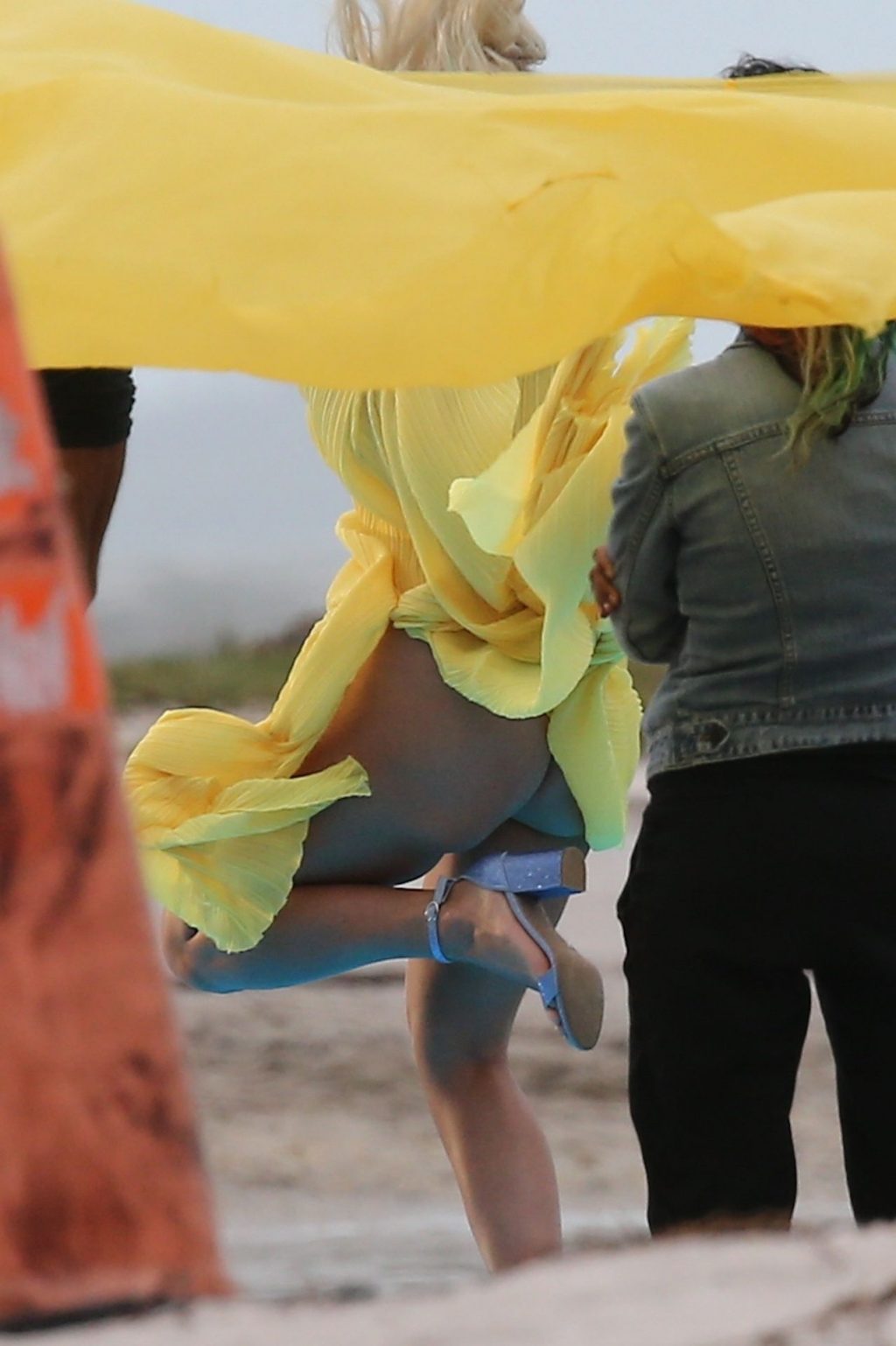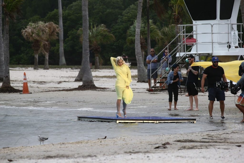 La chanteuse Rita Ora est à Miami pour tourner un clip vidéo et les conditions venteuses ont peut-être révélé plus que ce que la chanteuse avait prévu, 01/10/2020.