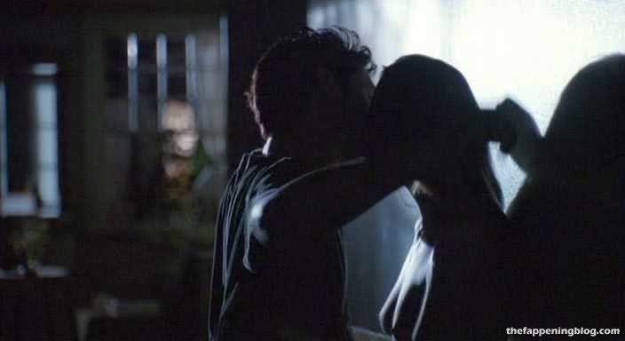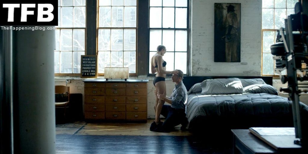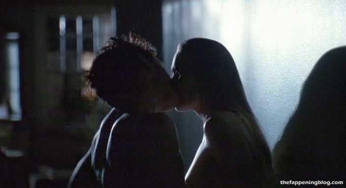 Robin Wright is leaning back against a wall as a guy unbuttons her shirt and gives us a close-up look at her breasts, which he kisses. The guy then stands up and she wraps her legs around him as they begin to have sex standing.