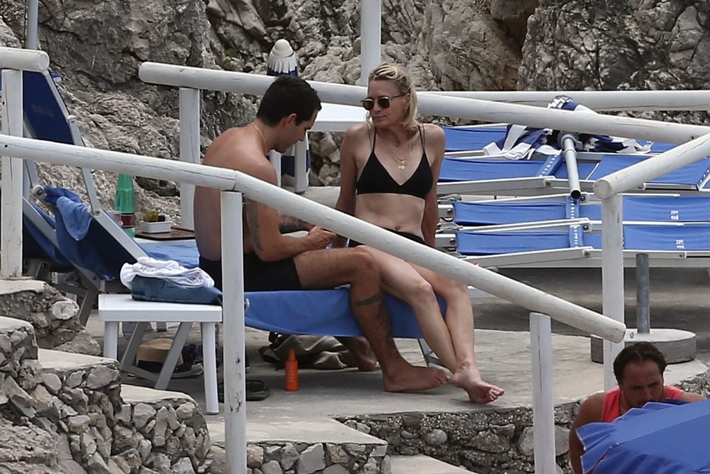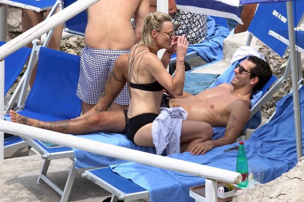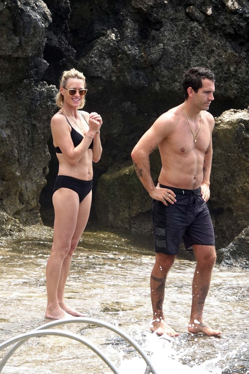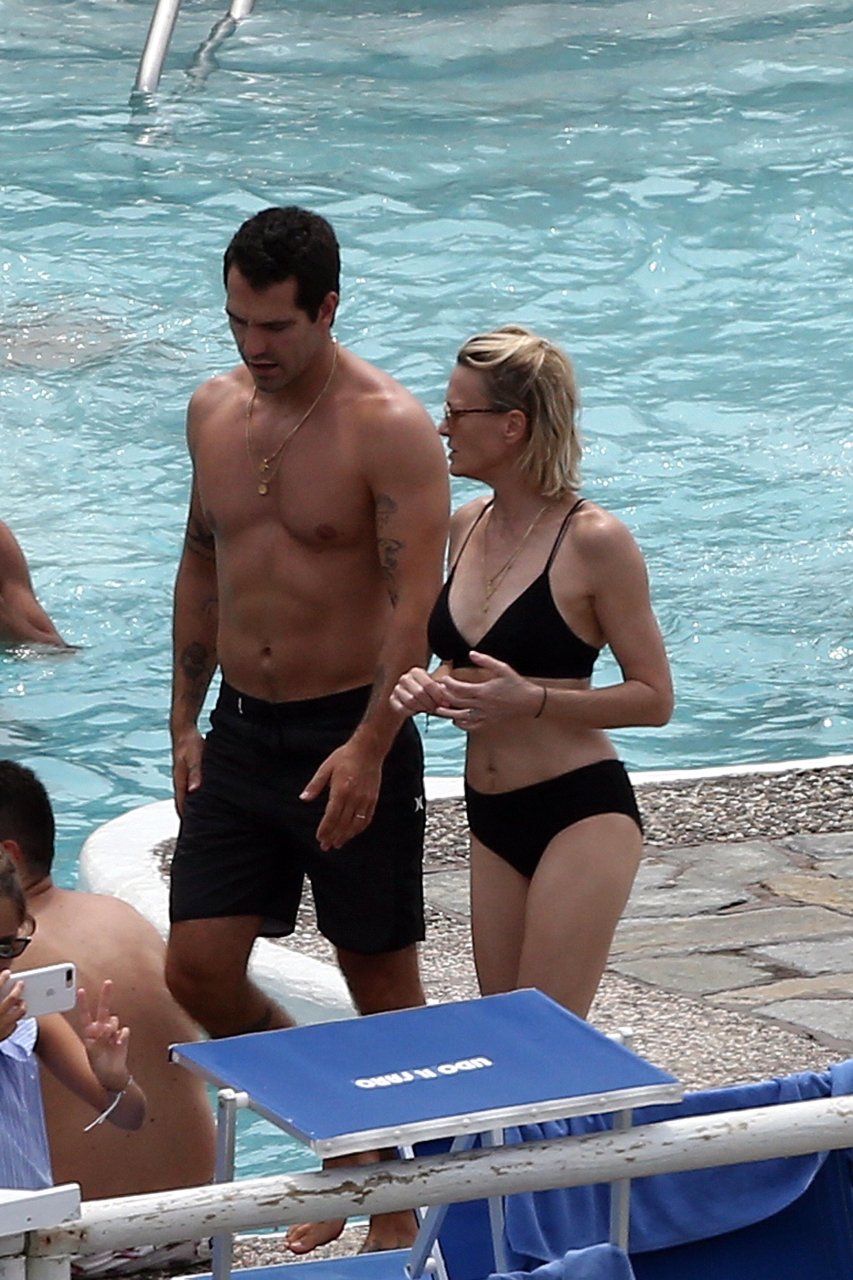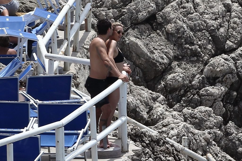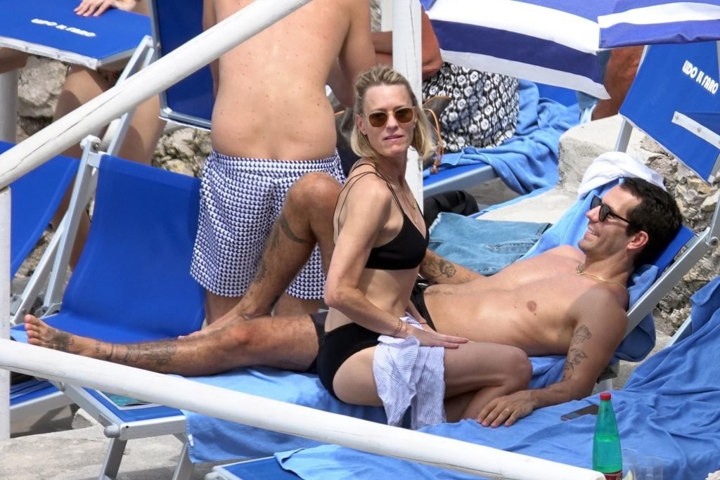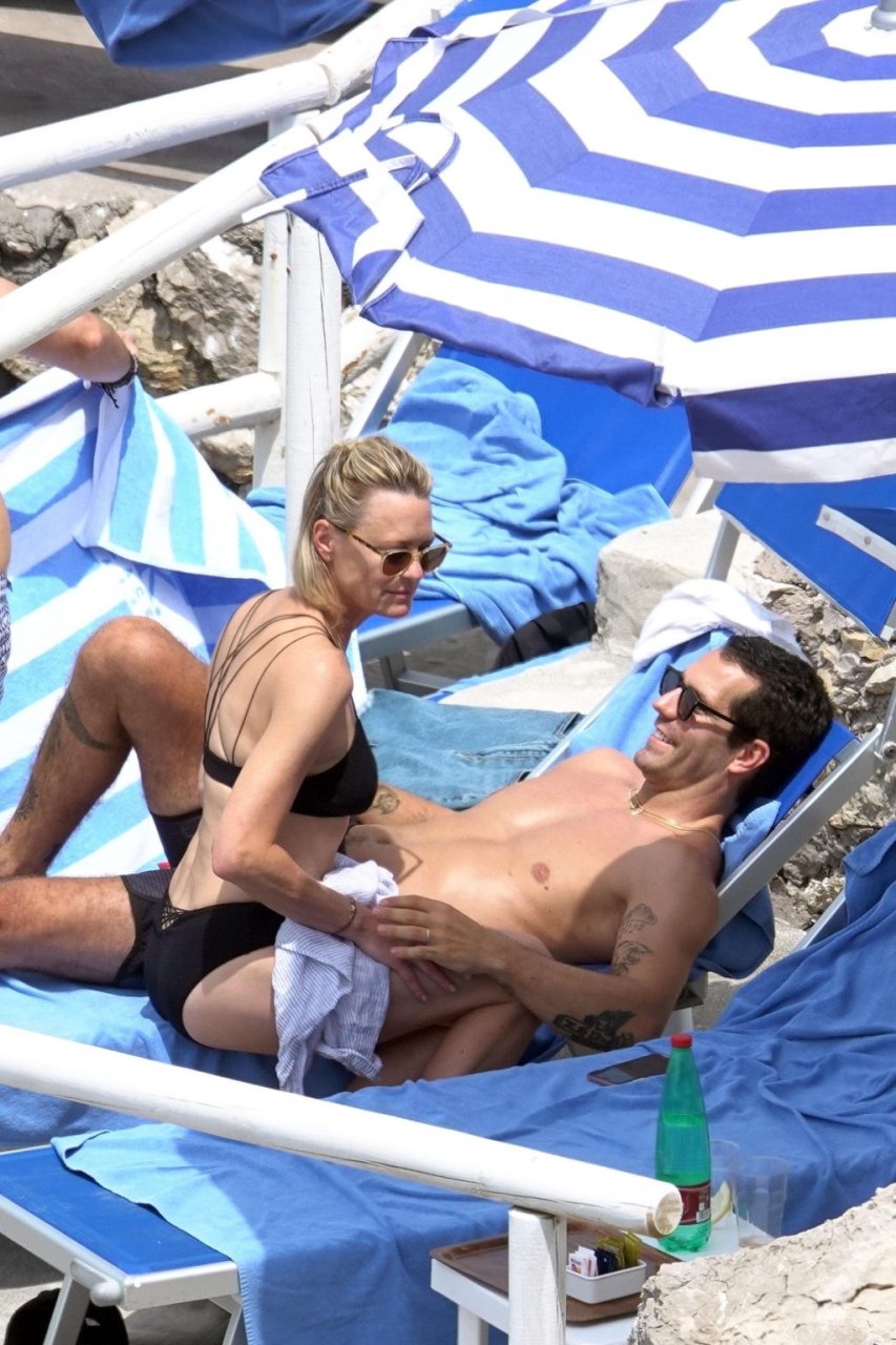 Robin Wright et le cadre de Saint Laurent Clément Giraudet profitent ensemble de vacances romantiques. Le duo est vu exhibant leurs corps en maillot de bain alors qu’ils profitent de la zone de baignade de leur hôtel, allant même jusqu’à se montrer affectueux avec des câlins et des baisers, 22/07/2018.