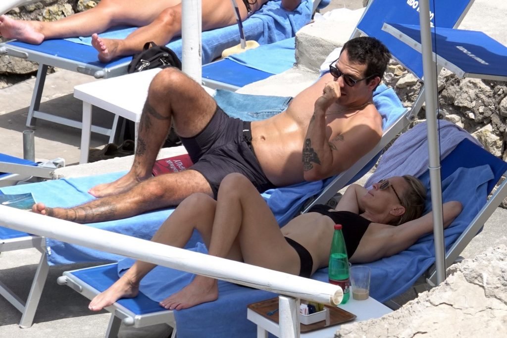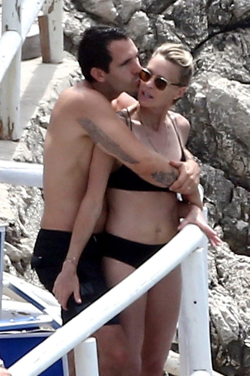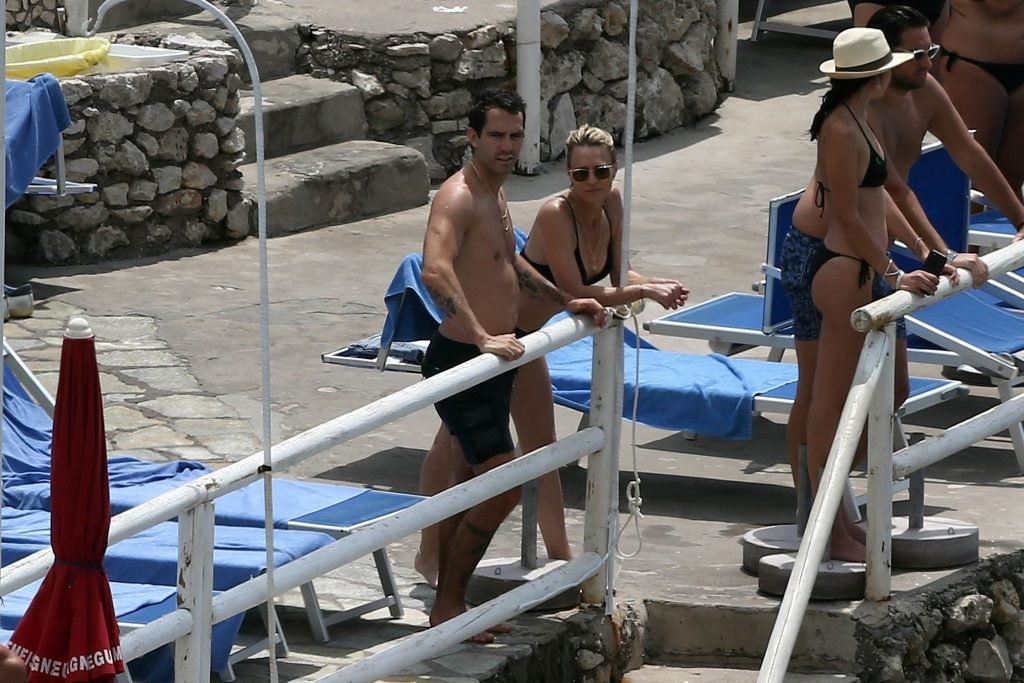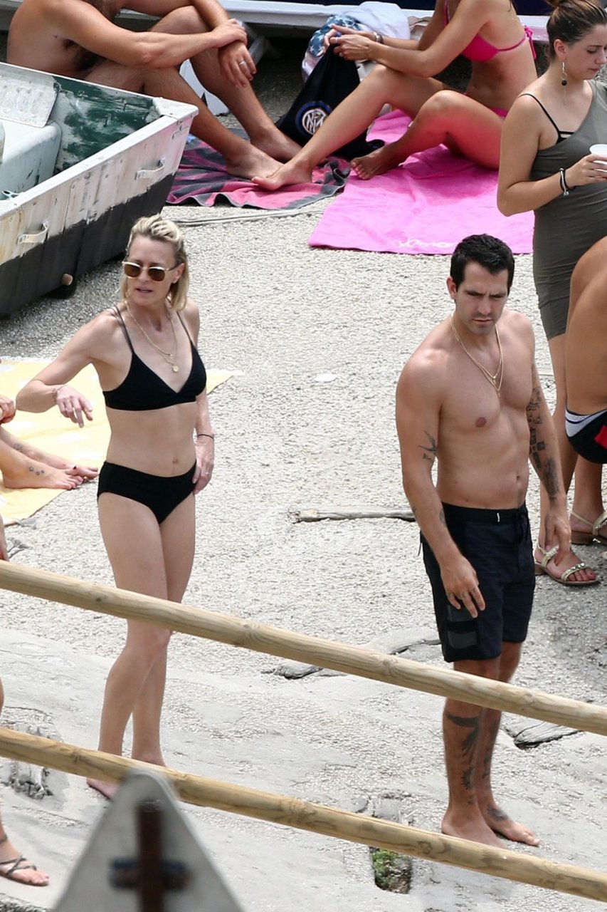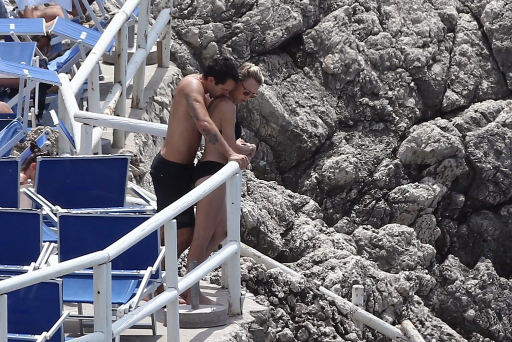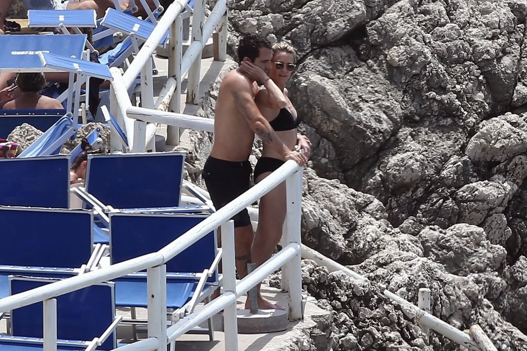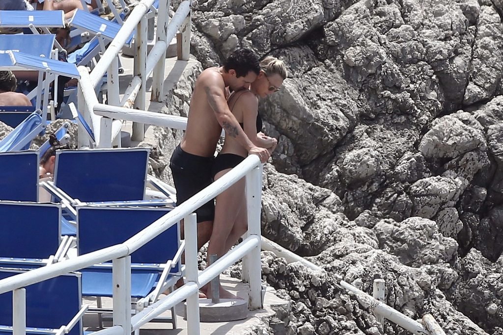 Robin Wright et le cadre de Saint Laurent Clément Giraudet profitent ensemble de vacances romantiques. Le duo est vu exhibant leurs corps en maillot de bain alors qu’ils profitent de la zone de baignade de leur hôtel, allant même jusqu’à se montrer affectueux avec des câlins et des baisers, 22/07/2018.