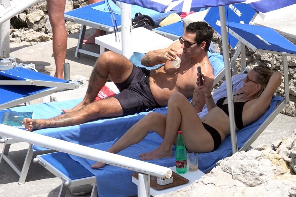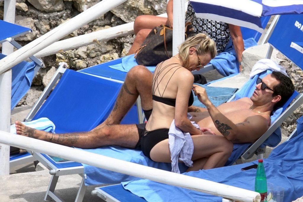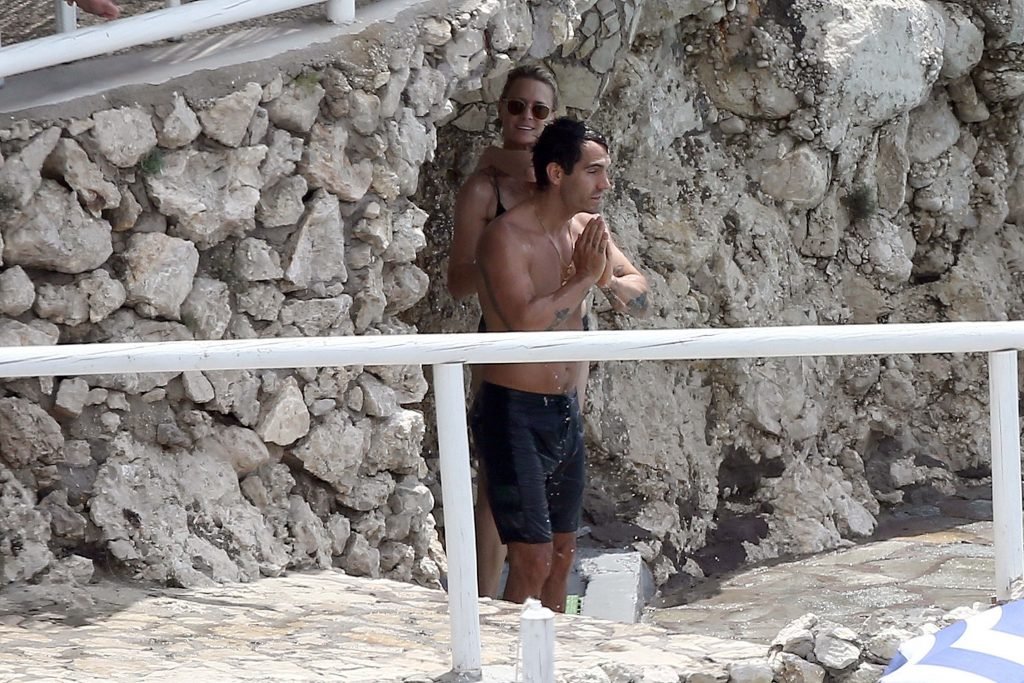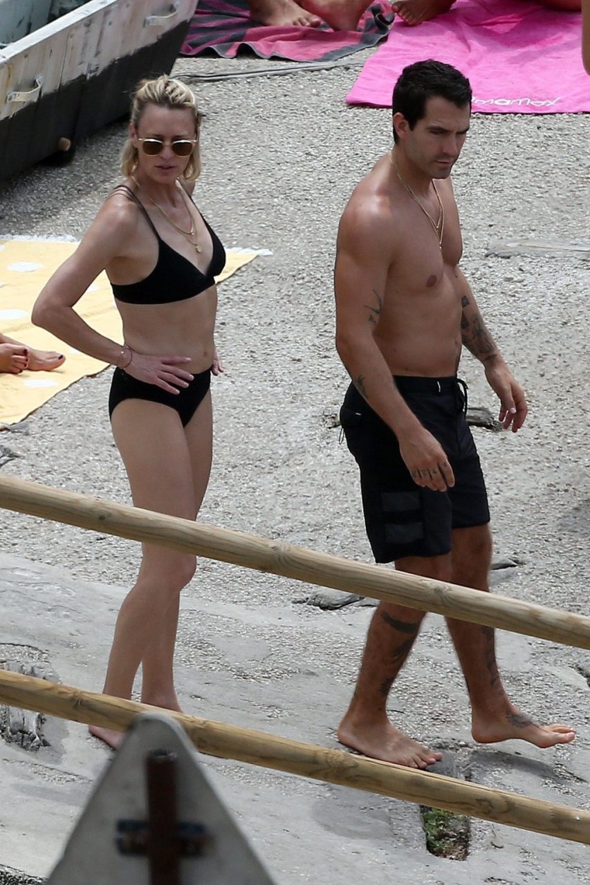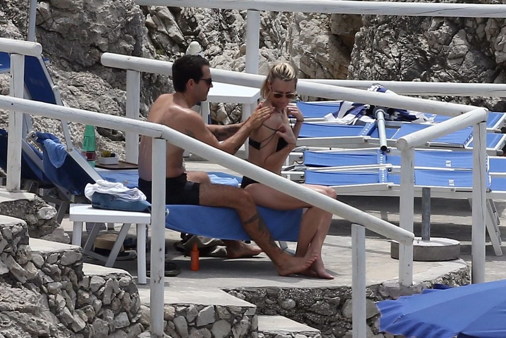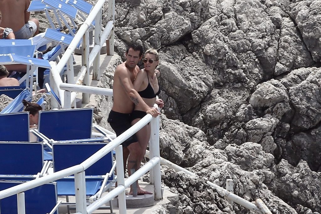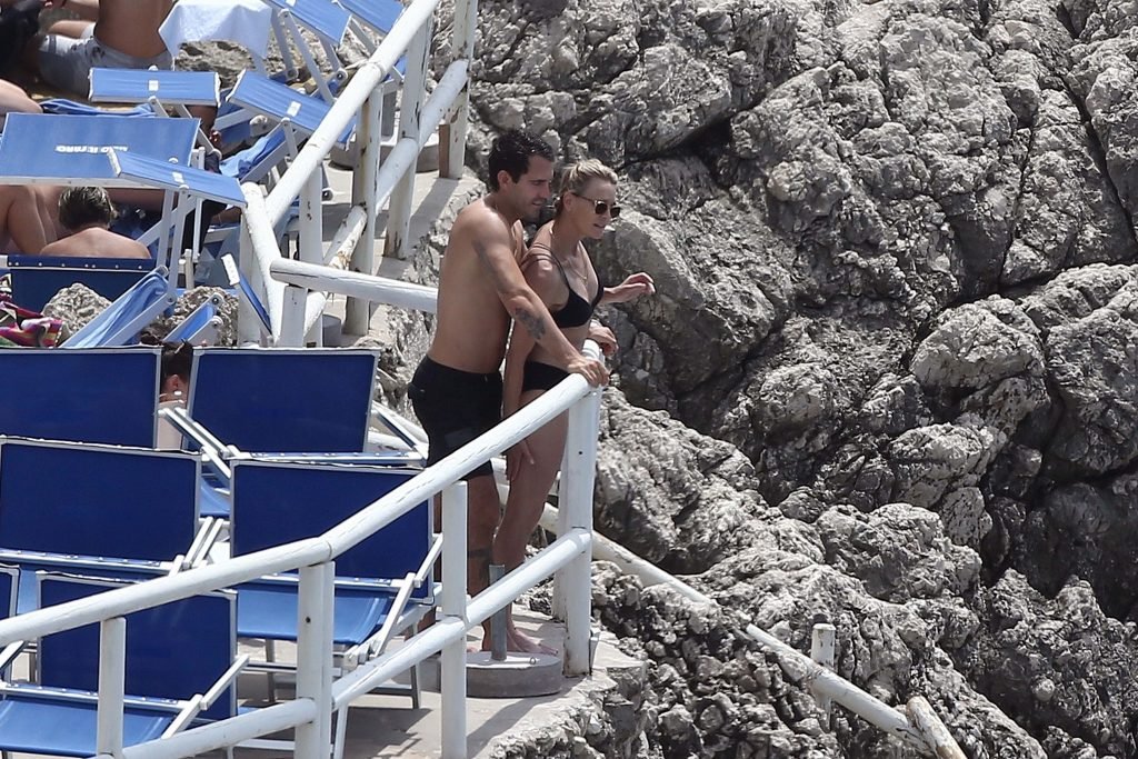 Robin Wright et le cadre de Saint Laurent Clément Giraudet profitent ensemble de vacances romantiques. Le duo est vu exhibant leurs corps en maillot de bain alors qu’ils profitent de la zone de baignade de leur hôtel, allant même jusqu’à se montrer affectueux avec des câlins et des baisers, 22/07/2018.