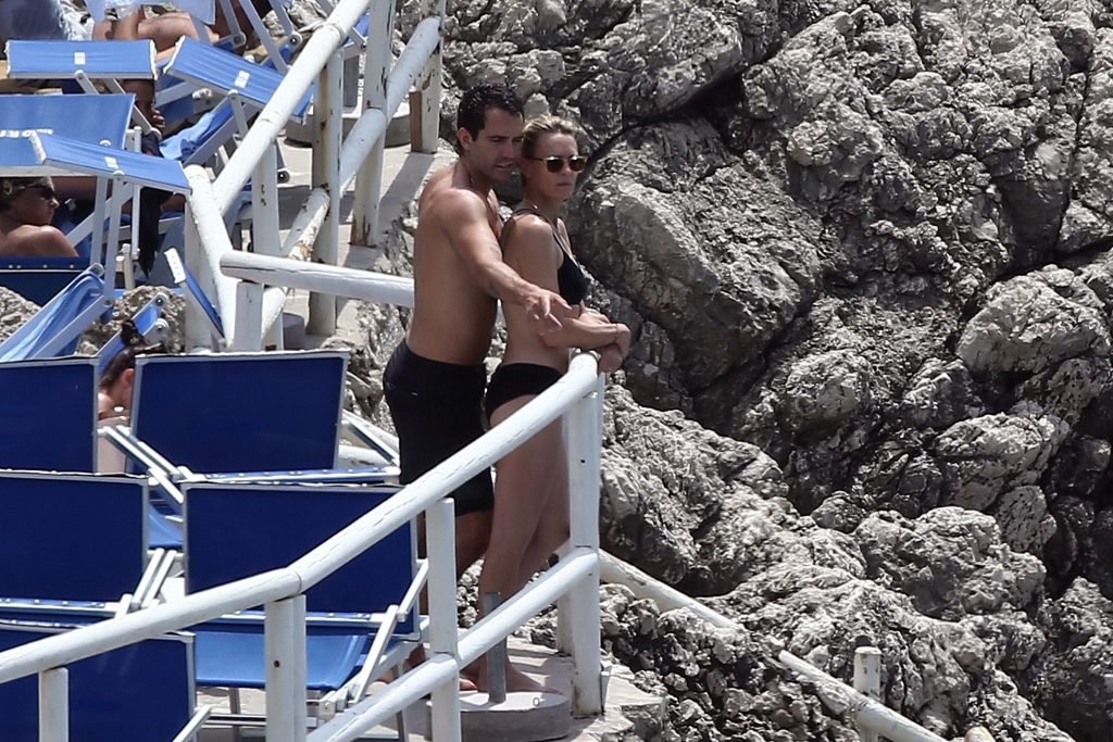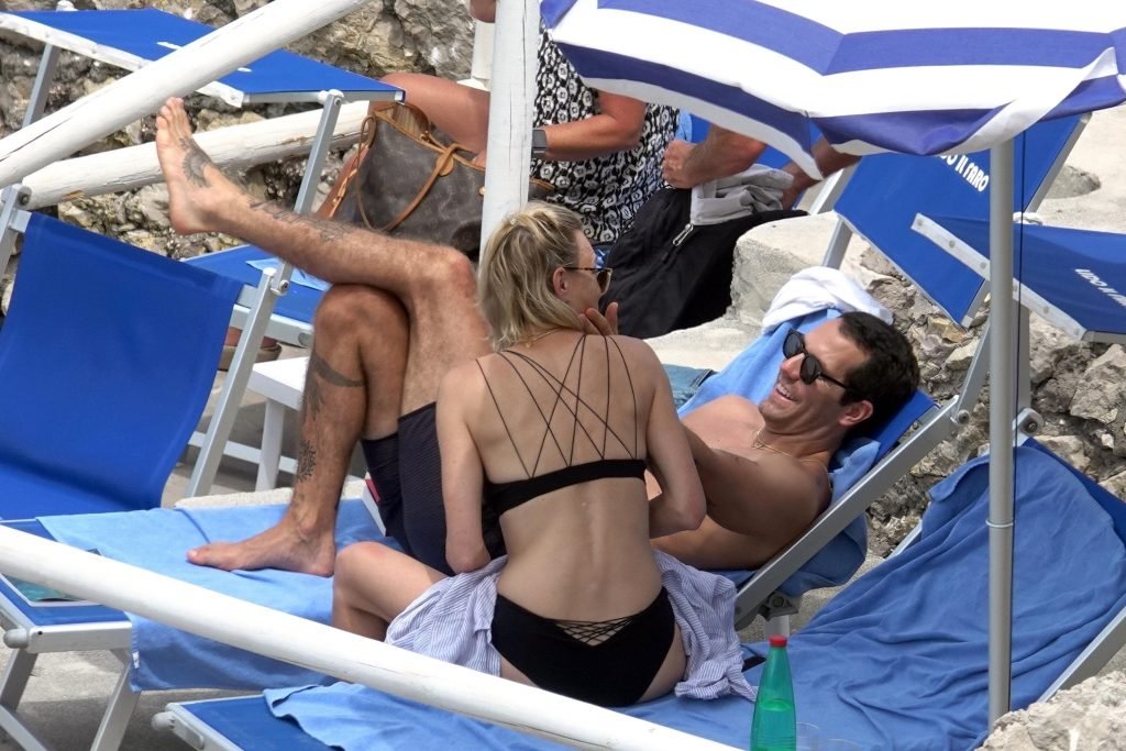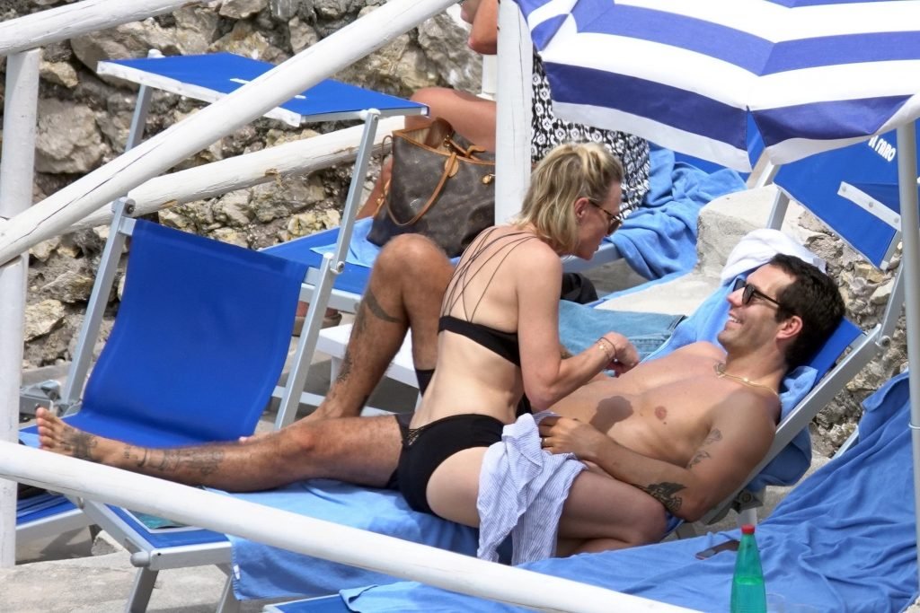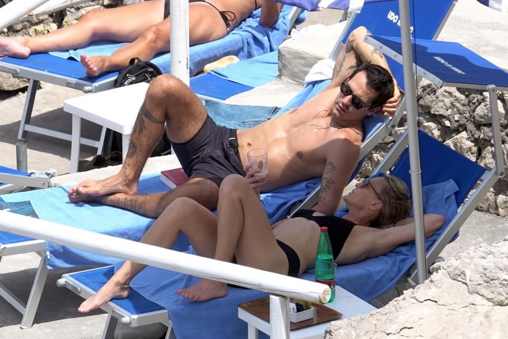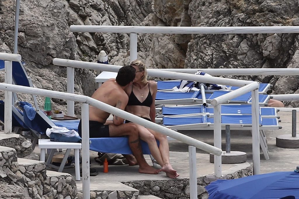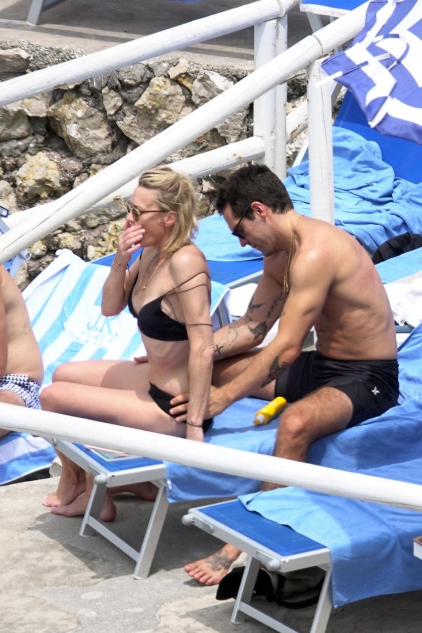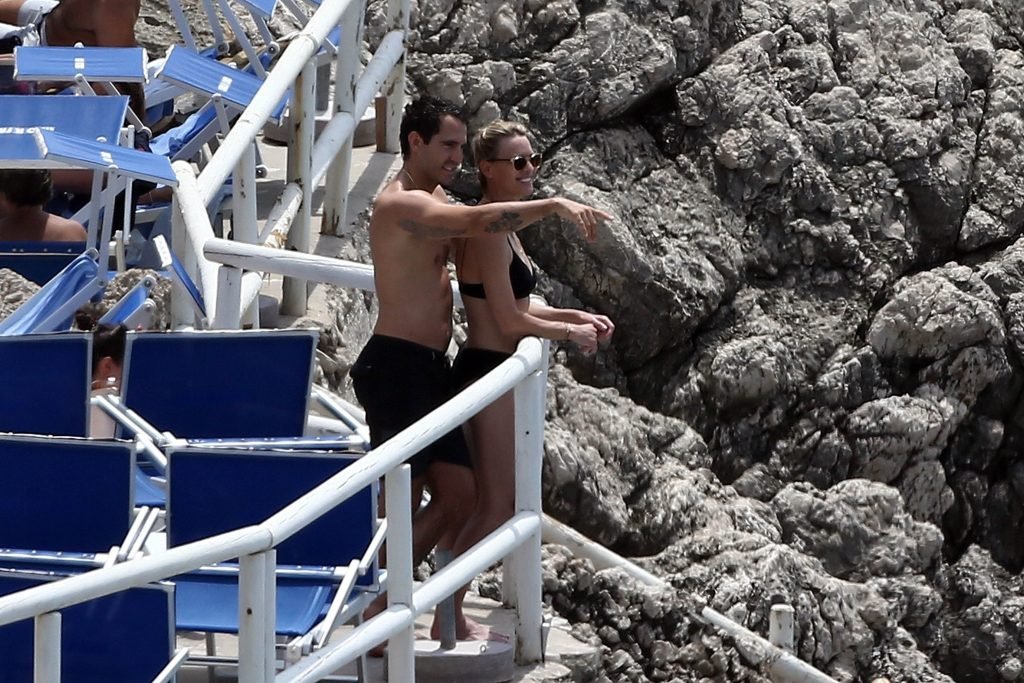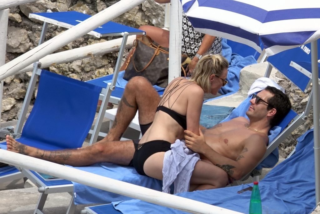 Robin Wright et le cadre de Saint Laurent Clément Giraudet profitent ensemble de vacances romantiques. Le duo est vu exhibant leurs corps en maillot de bain alors qu’ils profitent de la zone de baignade de leur hôtel, allant même jusqu’à se montrer affectueux avec des câlins et des baisers, 22/07/2018.